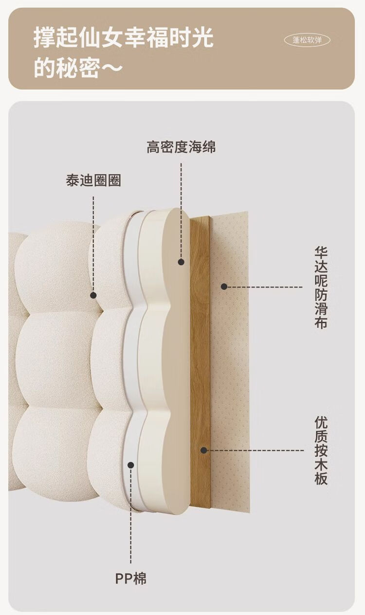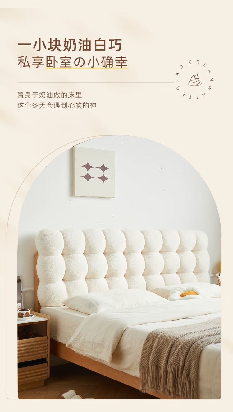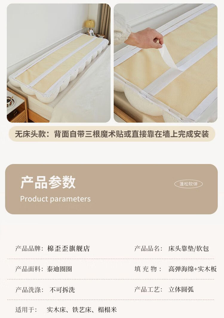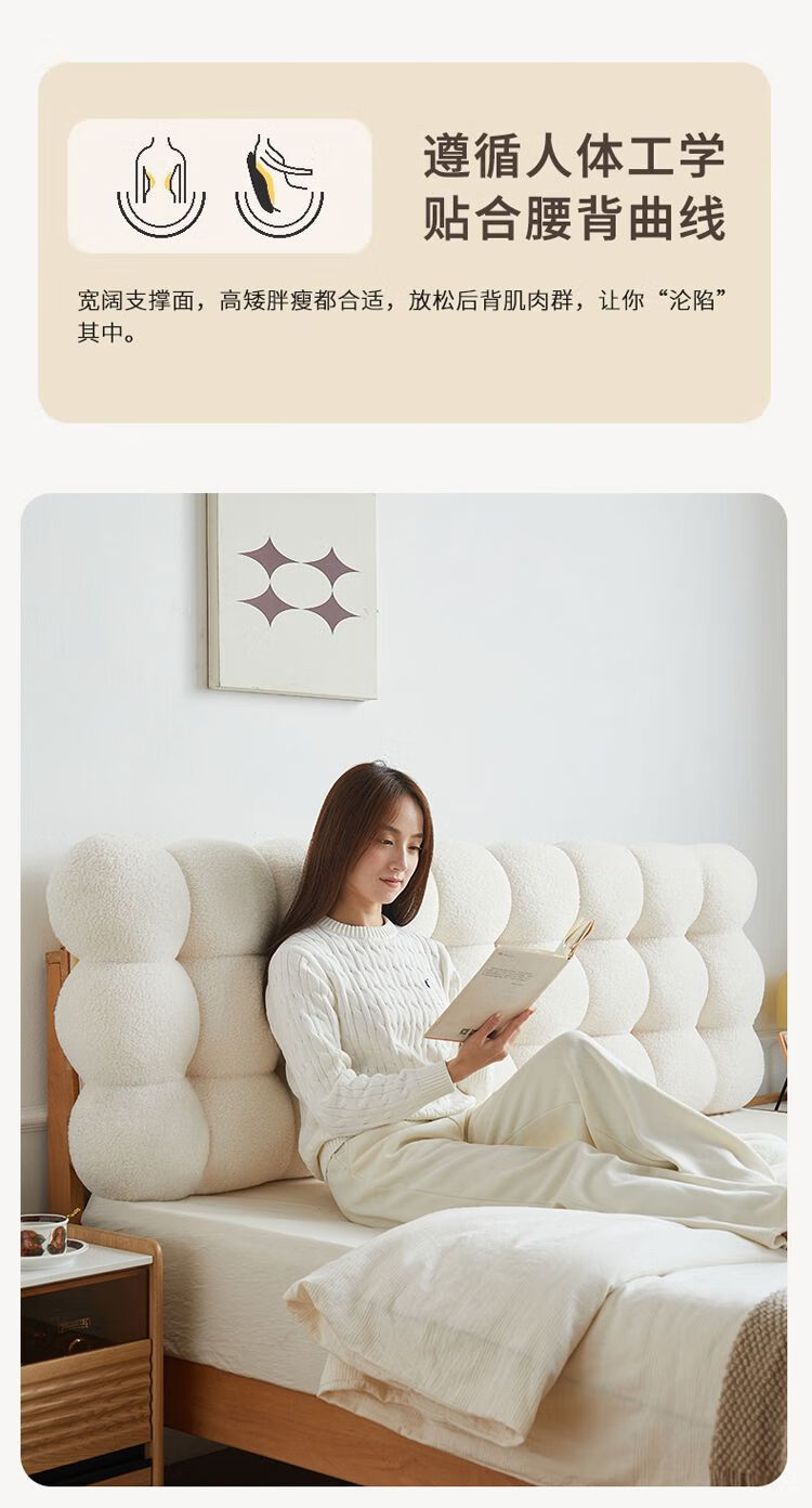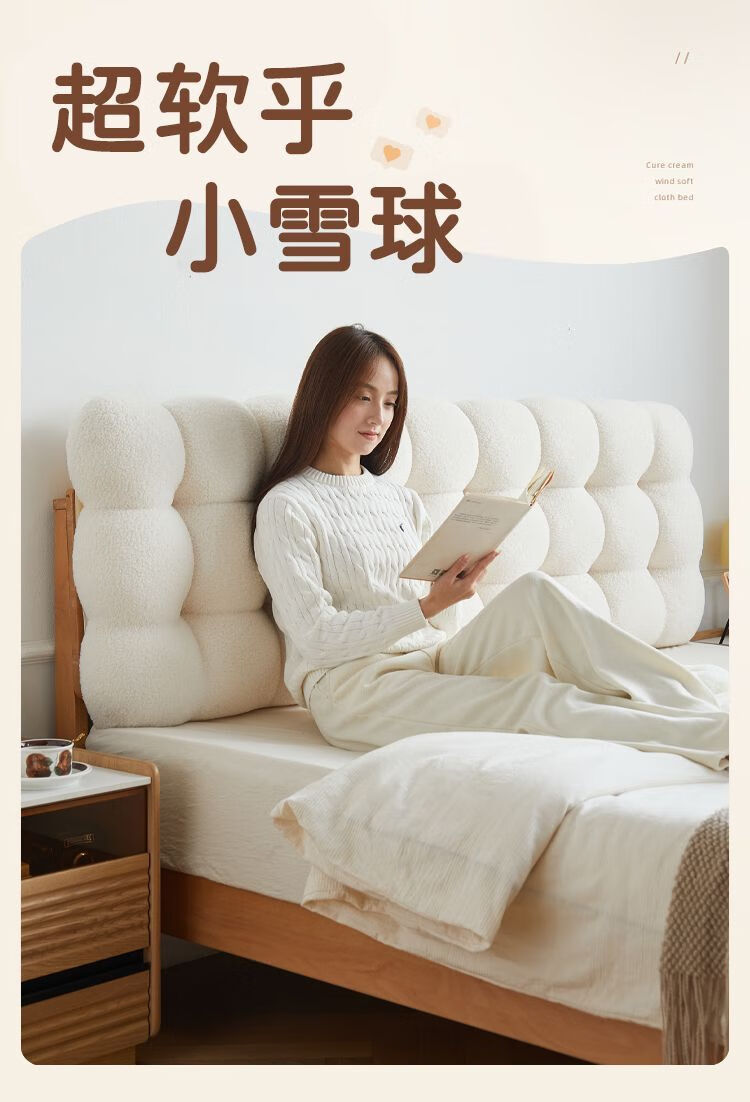 欣慕雅小雪球床头软包靠背垫榻榻米无床头靠垫奶油风2025新款大靠枕定制 奶白色*有床头使用 长90*高60*厚10CM(小雪球款)