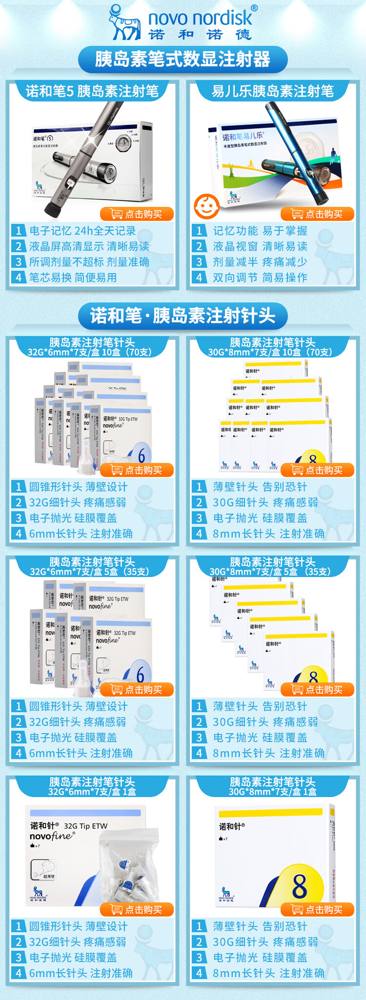 诺和诺德进口一次性使用胰岛素针头 糖尿病通用针头 30G(0.30x8mm) 70支