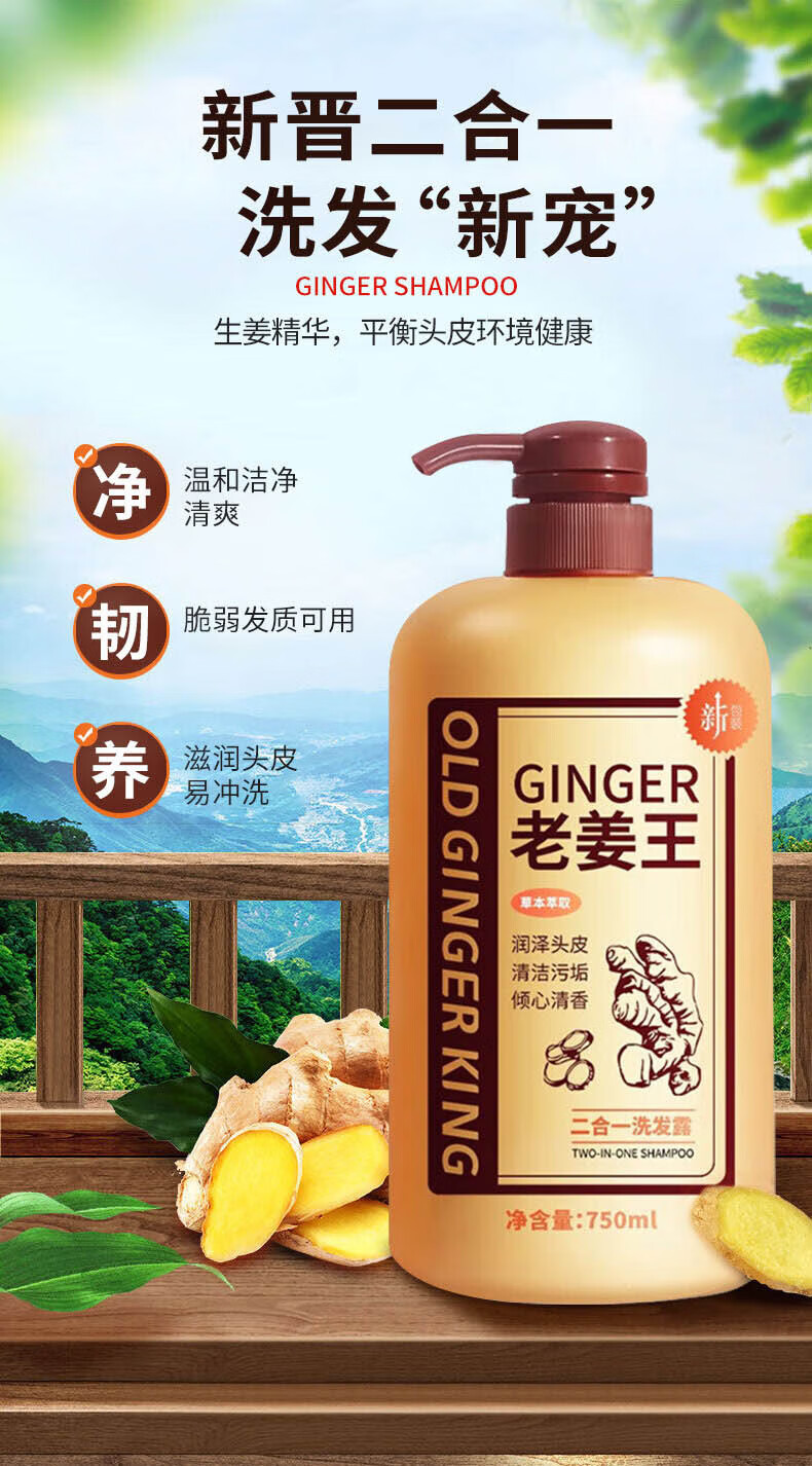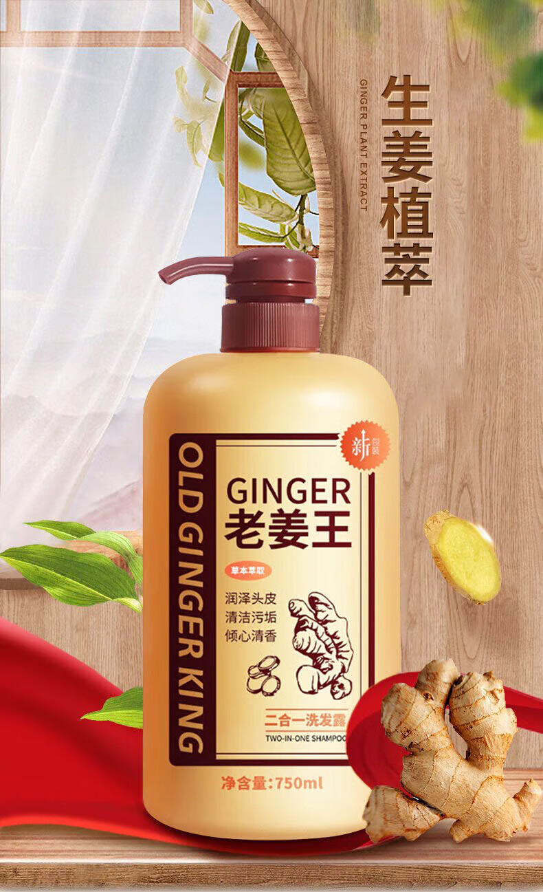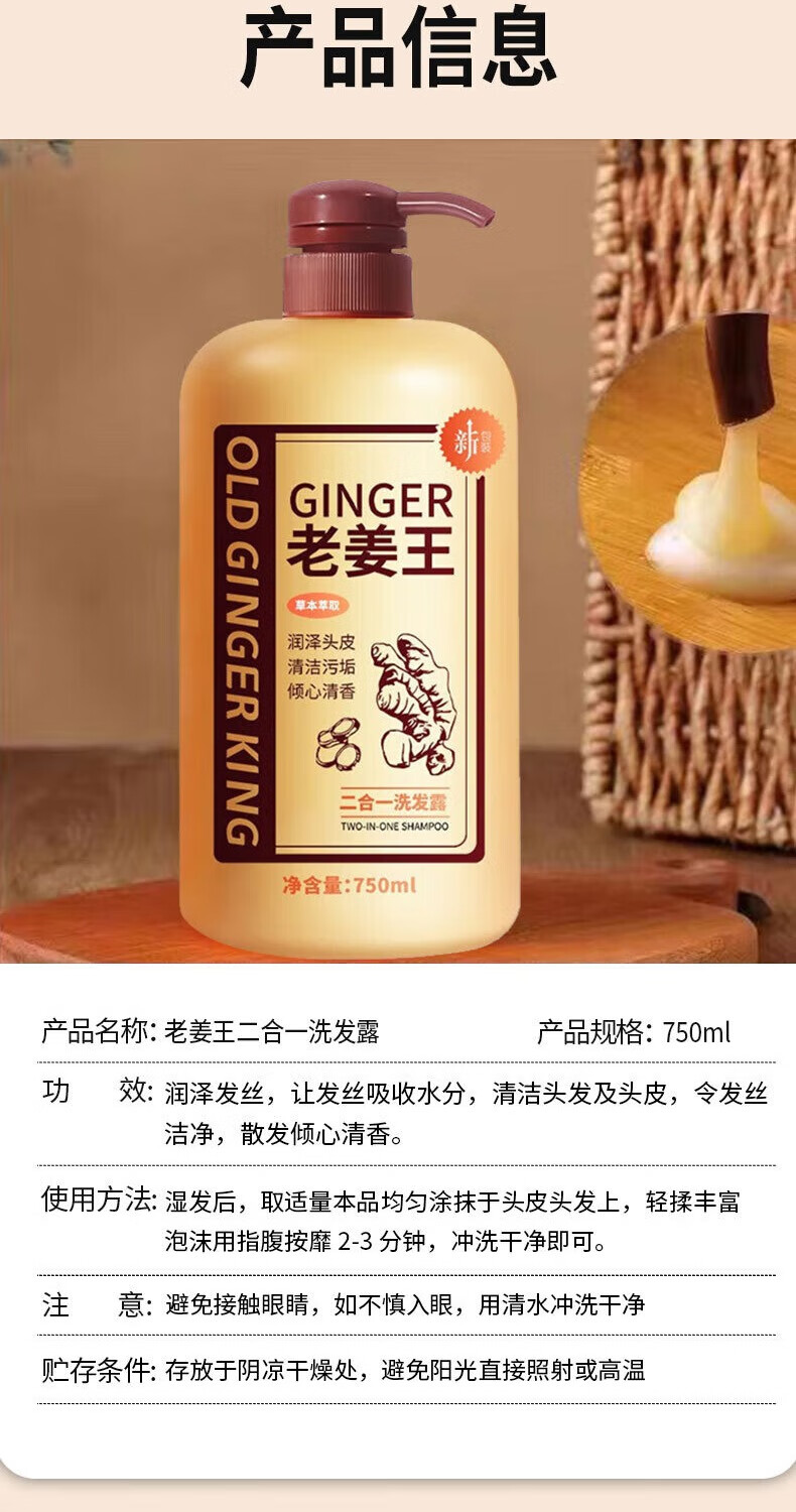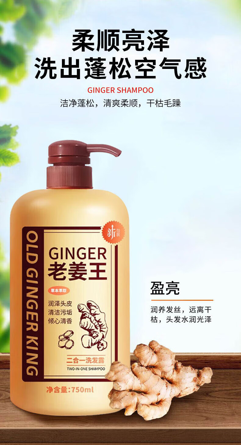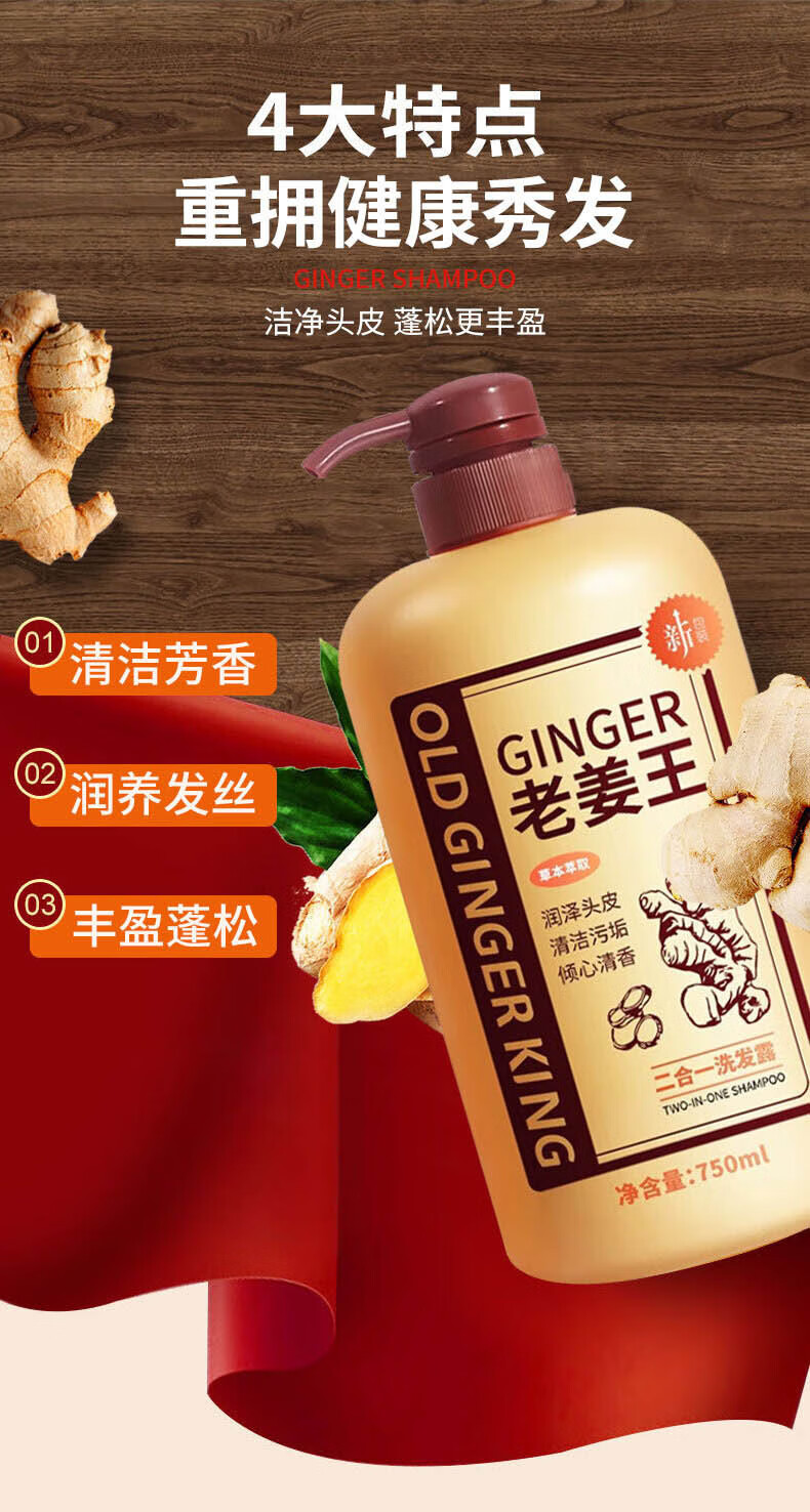 Limeisi国货老姜王生姜洗发水发根健发柔顺清洁蓬松强韧洗发露乳750ml 750ml*1瓶 老姜王洗发水