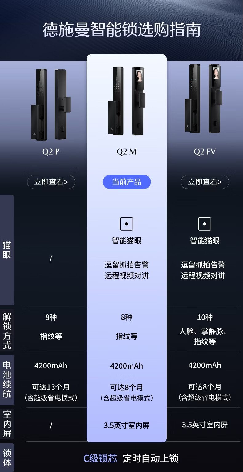 德施曼(DESMAN)智能门锁可视猫眼大屏全自动GPT指纹识别小嘀 Q2M【一价全包】
