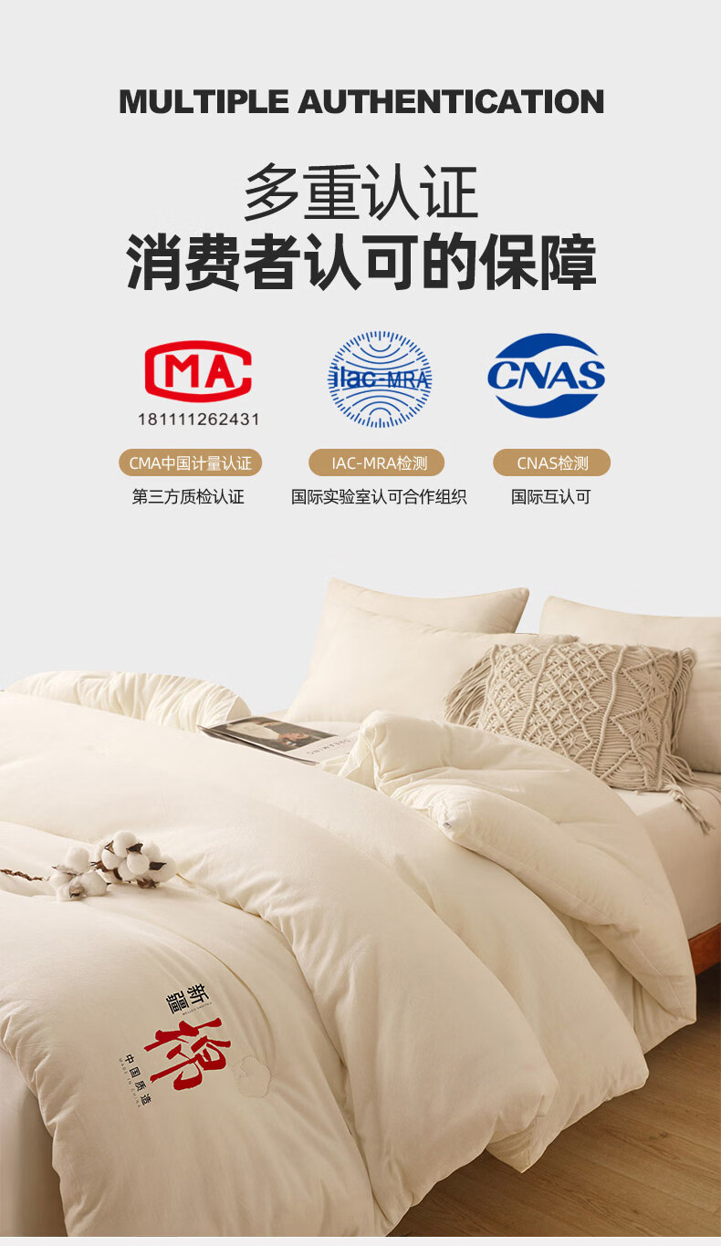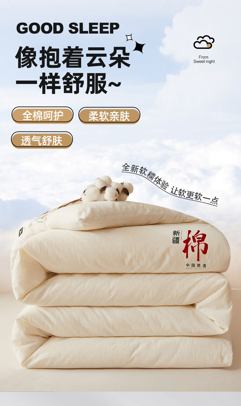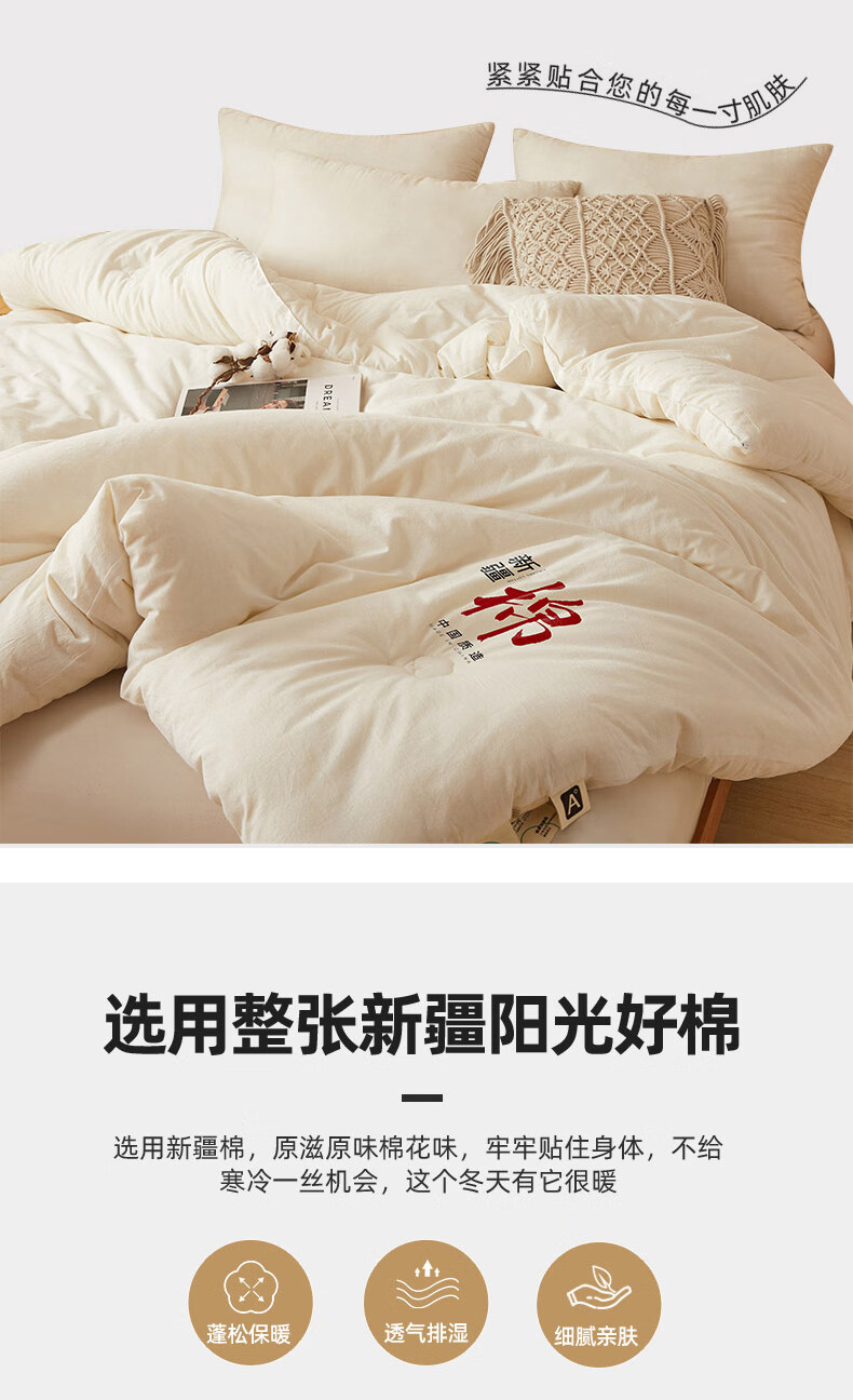 无印良品正宗新疆棉花被子1.8米x2米棉被春秋被3-4斤被芯单双人家用被褥子 月光白【甄选新疆当季大朵新棉花 蓄热锁温】 180*220cm春秋被【约4斤】