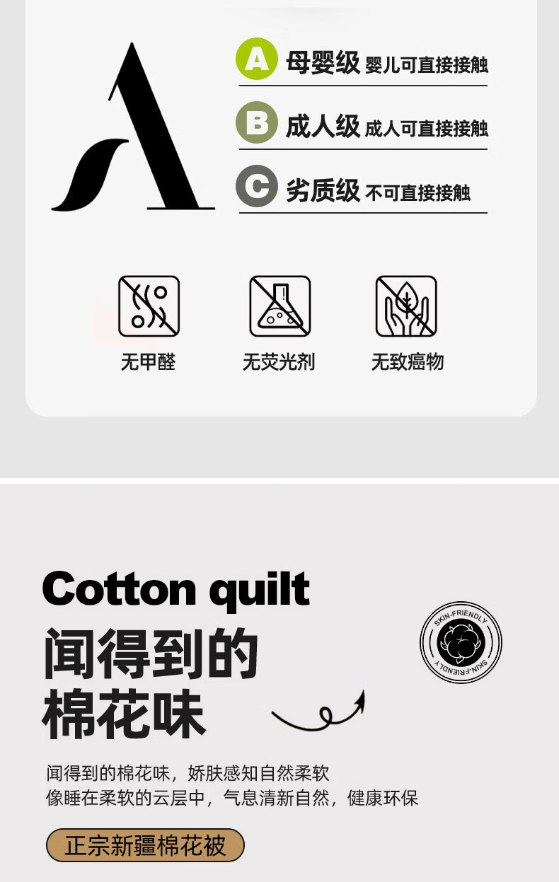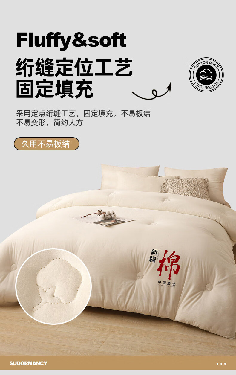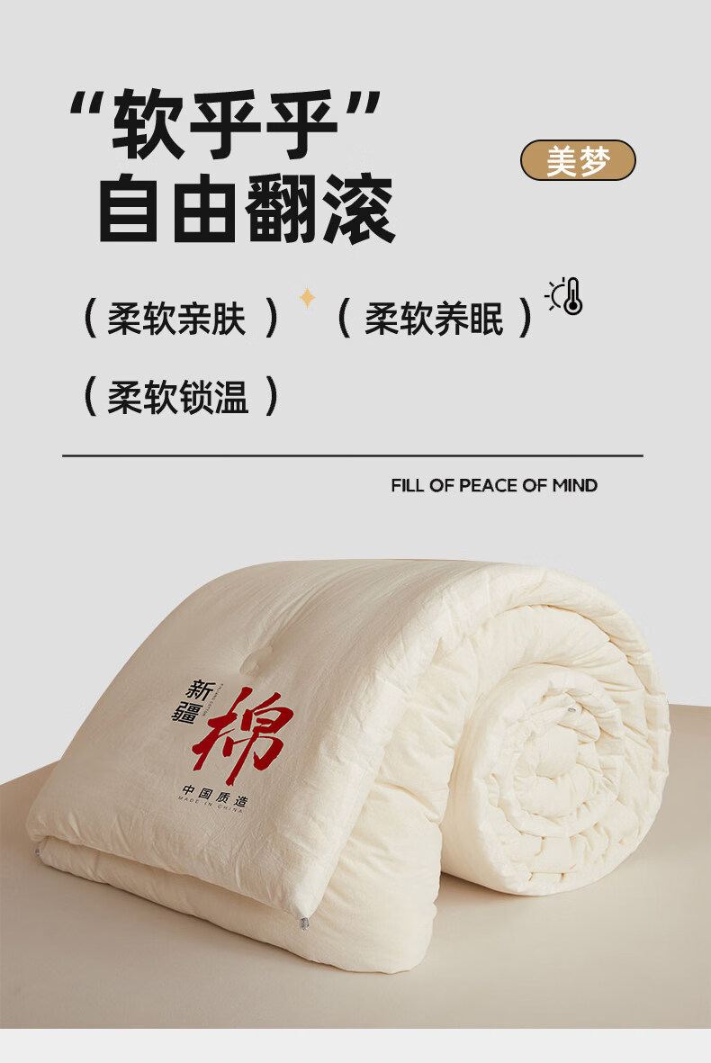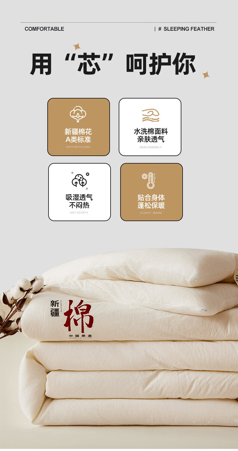 无印良品正宗新疆棉花被子1.8米x2米棉被春秋被3-4斤被芯单双人家用被褥子 月光白【甄选新疆当季大朵新棉花 蓄热锁温】 180*220cm春秋被【约4斤】