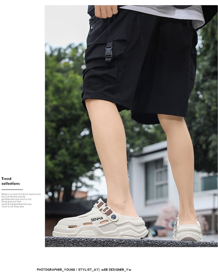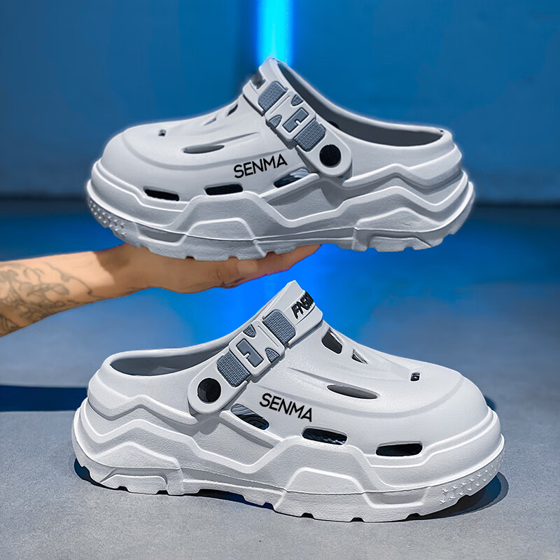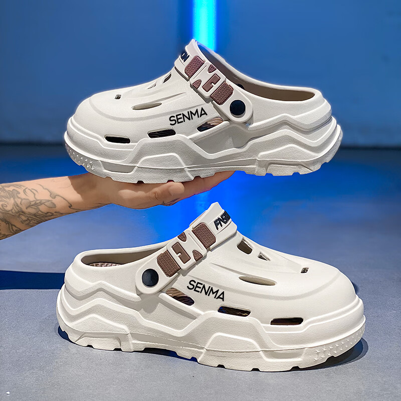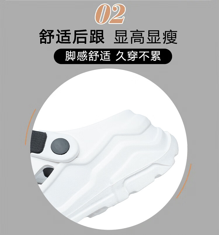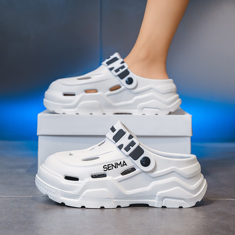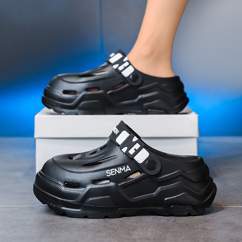 森馬洞洞鞋男夏季外穿防滑厚底包头拖鞋男士运动增高大码户外沙滩凉鞋 白黑【基础款】 38-39 【现货秒发】