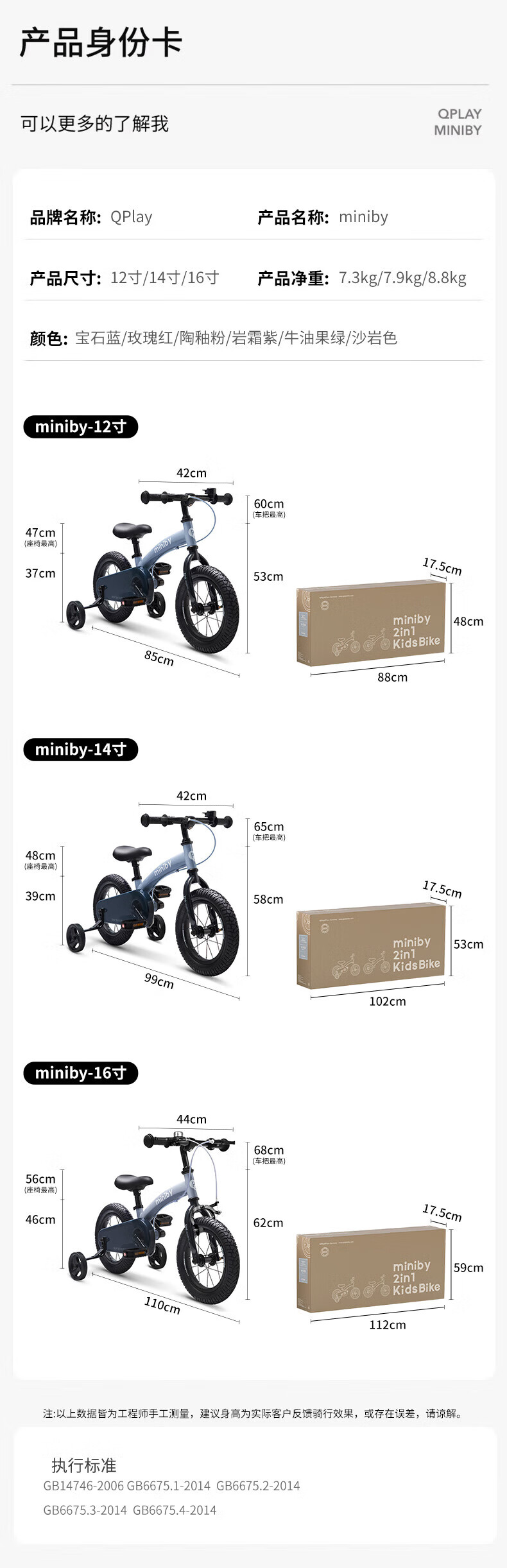 QPlay儿童自行车3-6-8岁平衡车二合一周岁礼物14寸单车miniby宝石蓝
