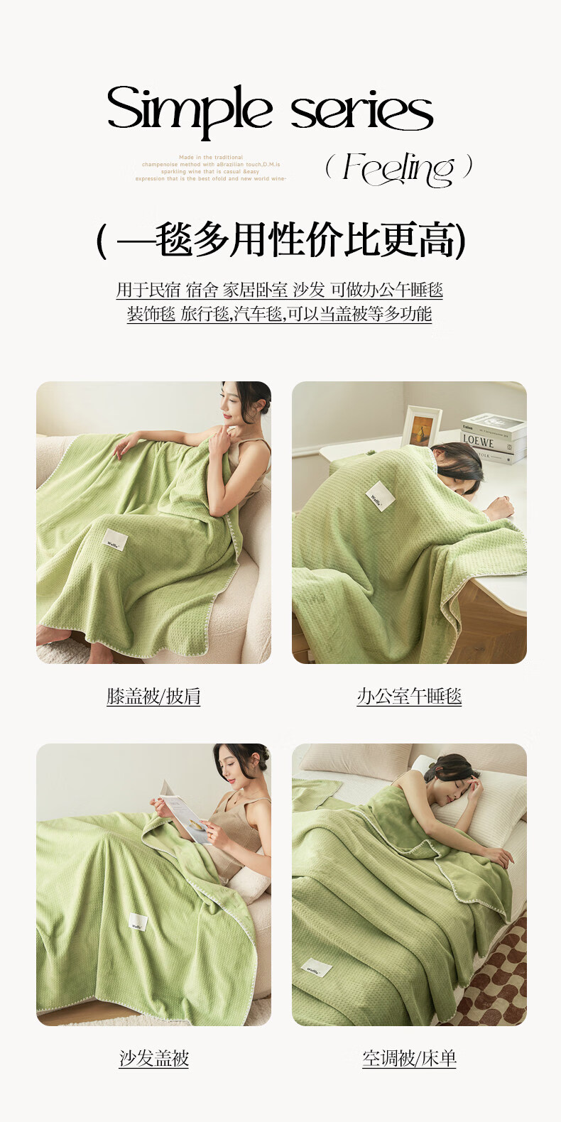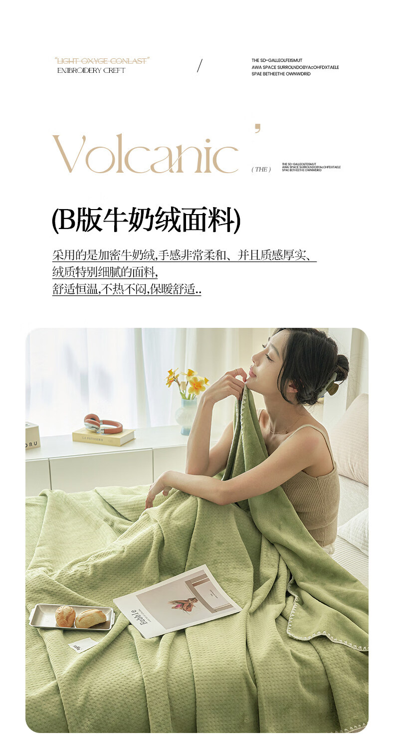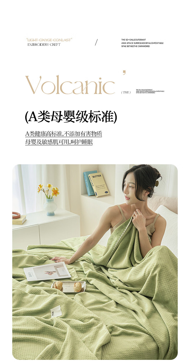 猫人(MiiOW)A类毯子空调毯办公室午睡小毯子毛毯家用沙发毯盖毯四季通用铺床 薄荷曼波绿【贝壳绣边工艺-柔软撸猫感四季盖毯】 儿童毯-70*100cm【A类母婴级华夫格面料】