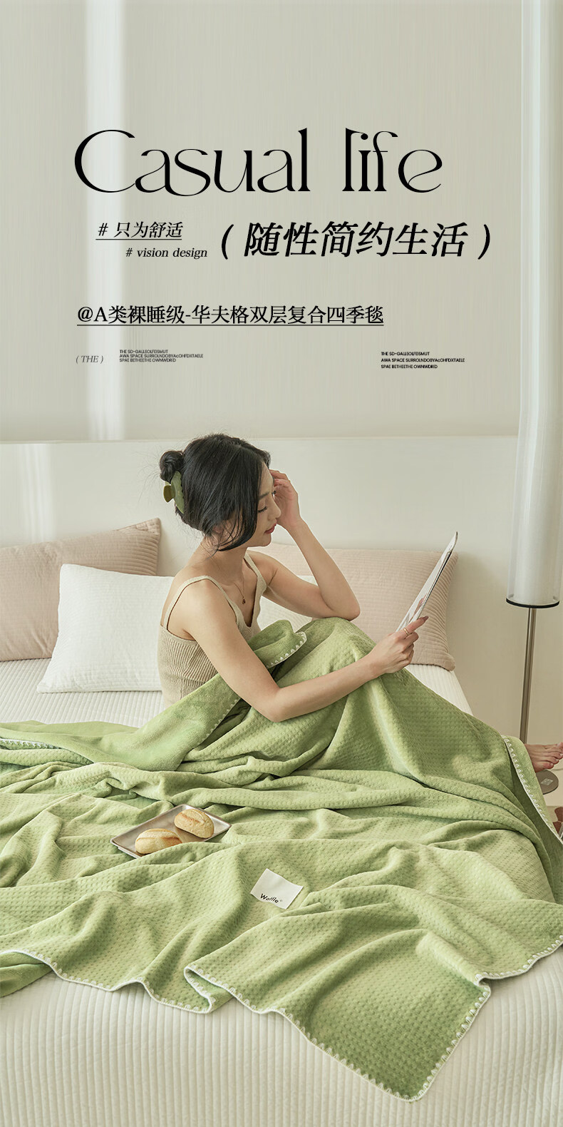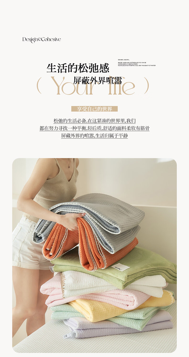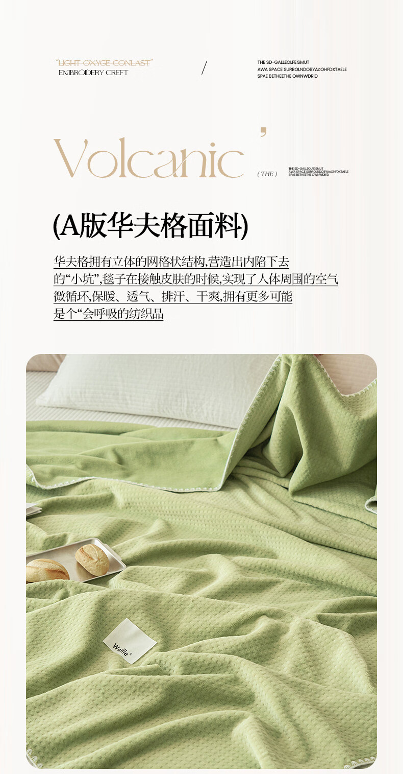 苏萱2026新款全棉纯棉华夫格夏被四件套夏季夏凉被空调被可机洗单双人 简森兰 单人夏被-150*200cm