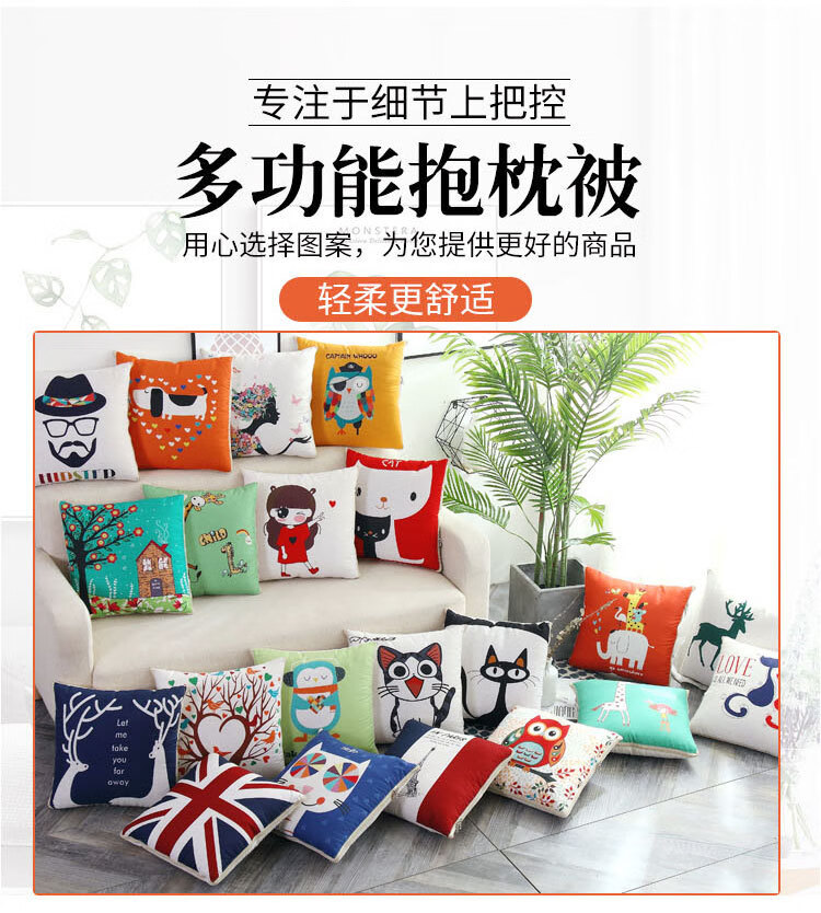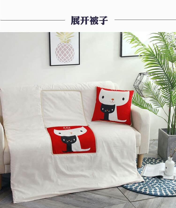 GISAEV车载抱枕被子两用沙发办公室多功能头枕腰靠抱枕被折叠空调被靠枕 抱枕 眼镜猫 1个 1个 40X40展开100*150