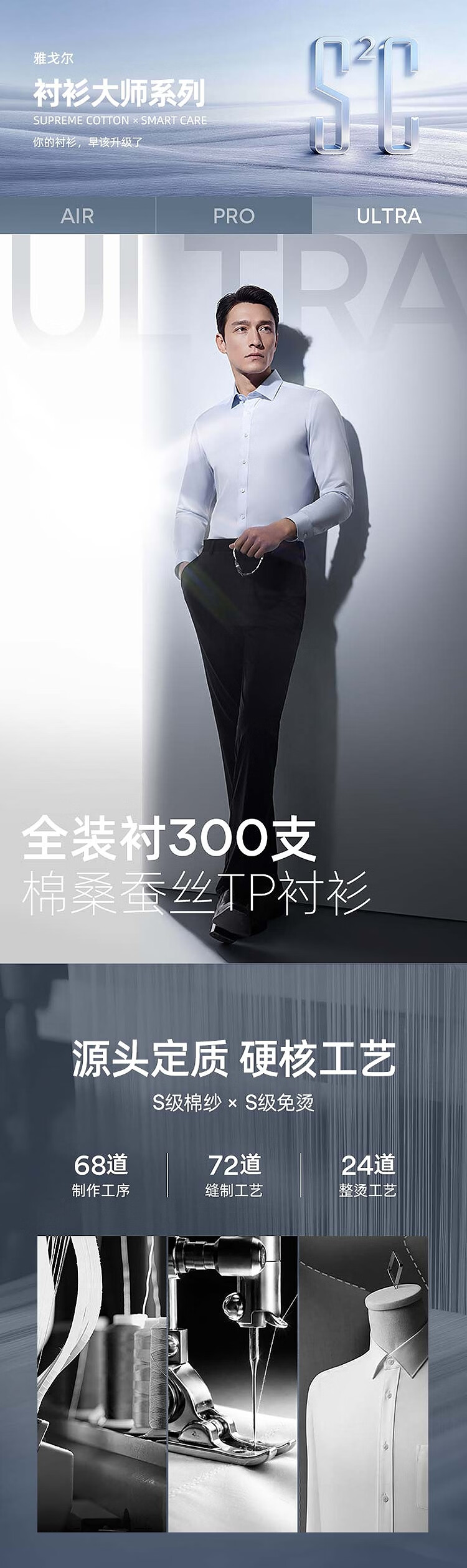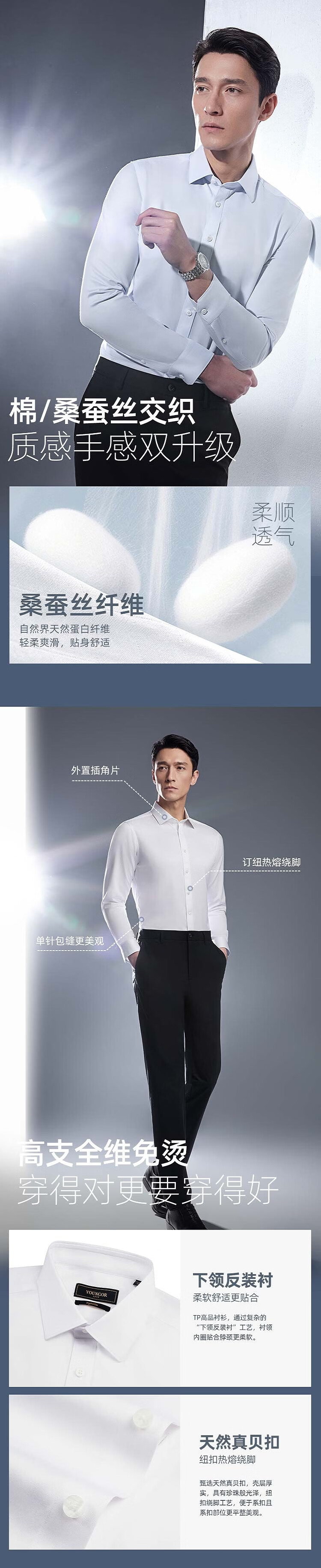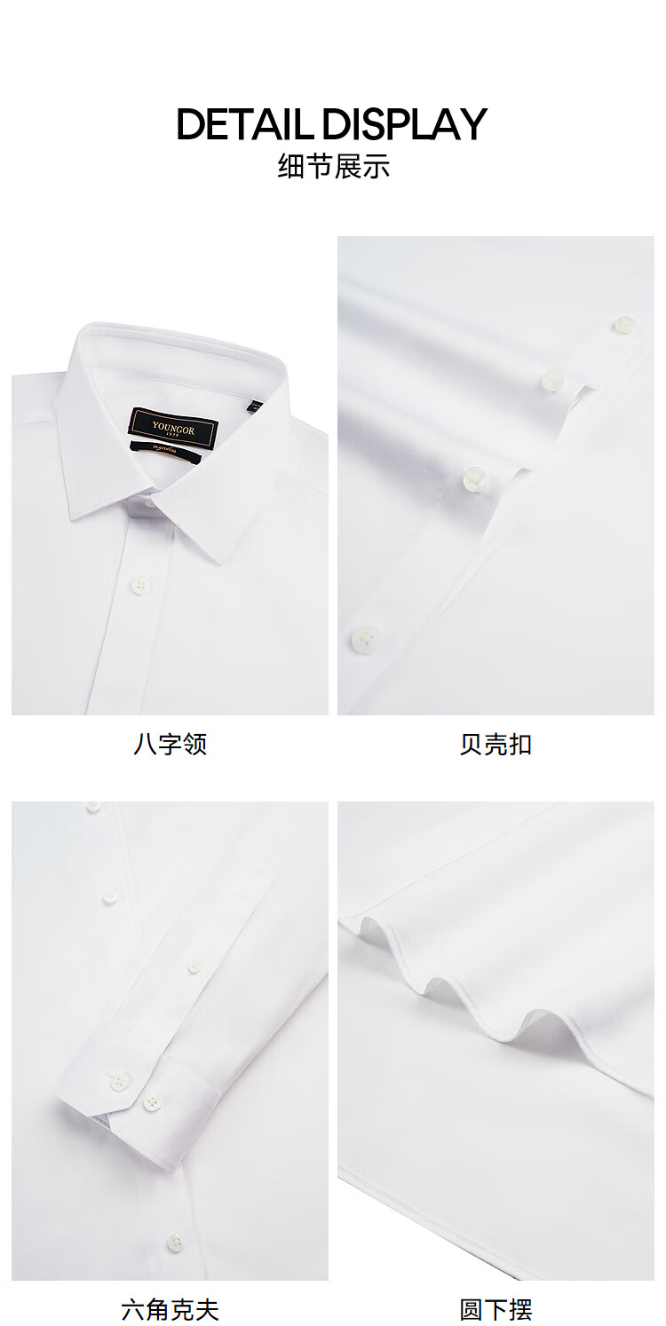 雅戈尔(YOUNGOR)【300支+桑蚕丝】2026春季新品商务免烫高端衣服男士长袖衬衫 漂白VLTP114787BBY 41 (175/96Y)