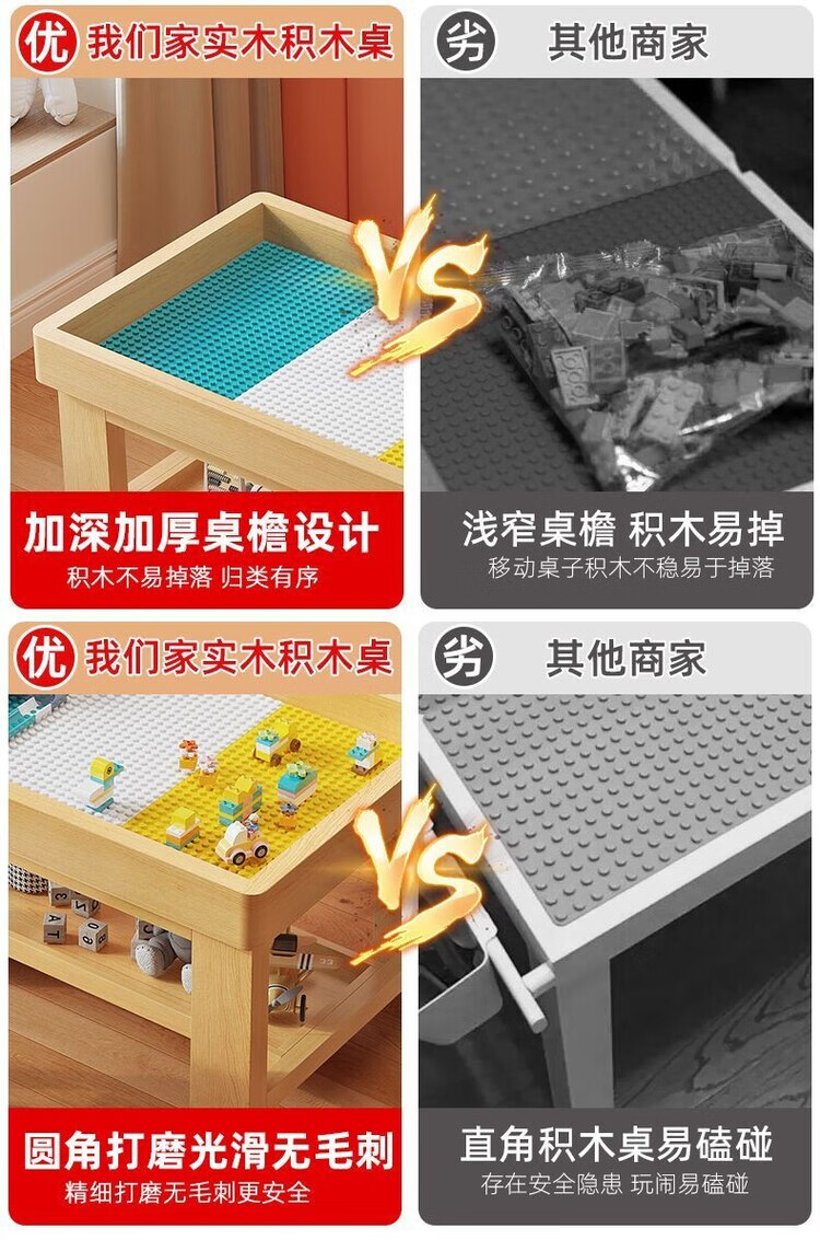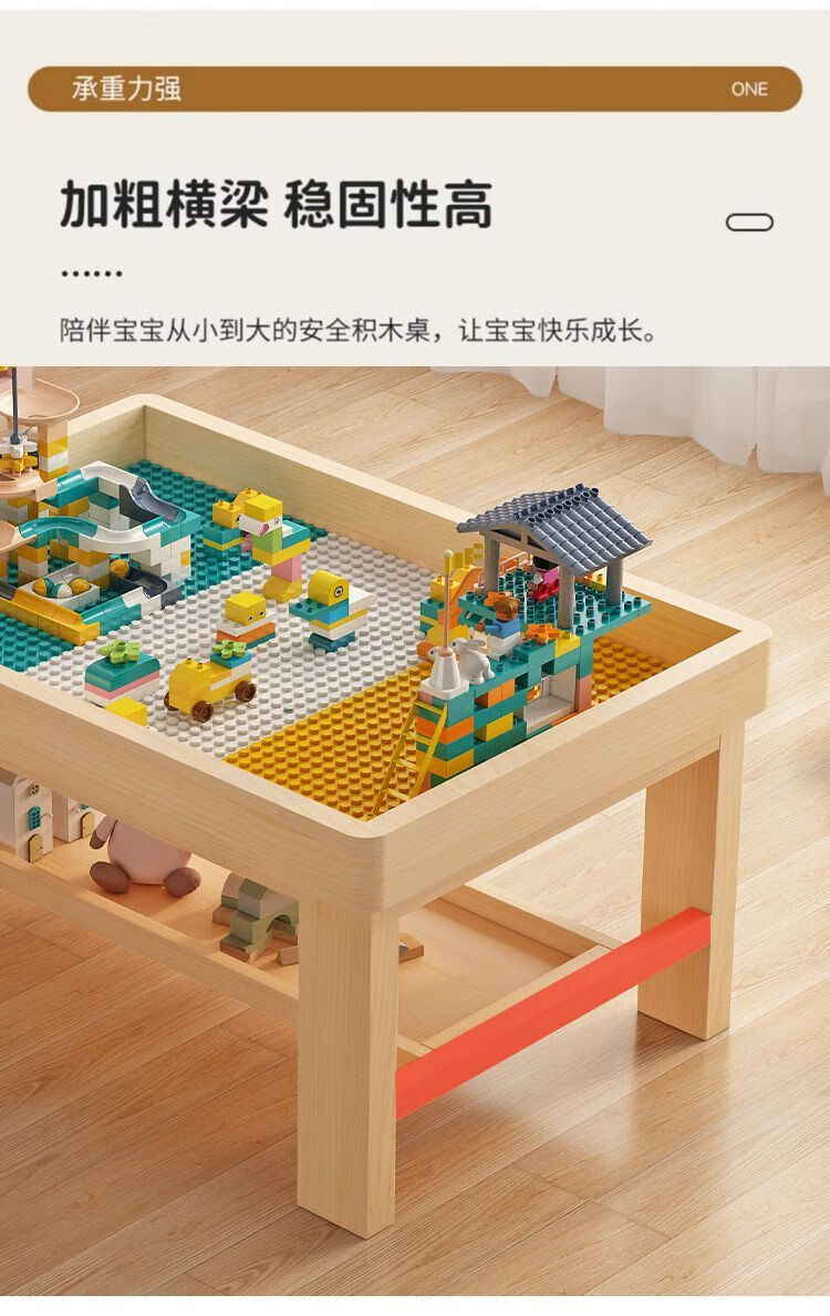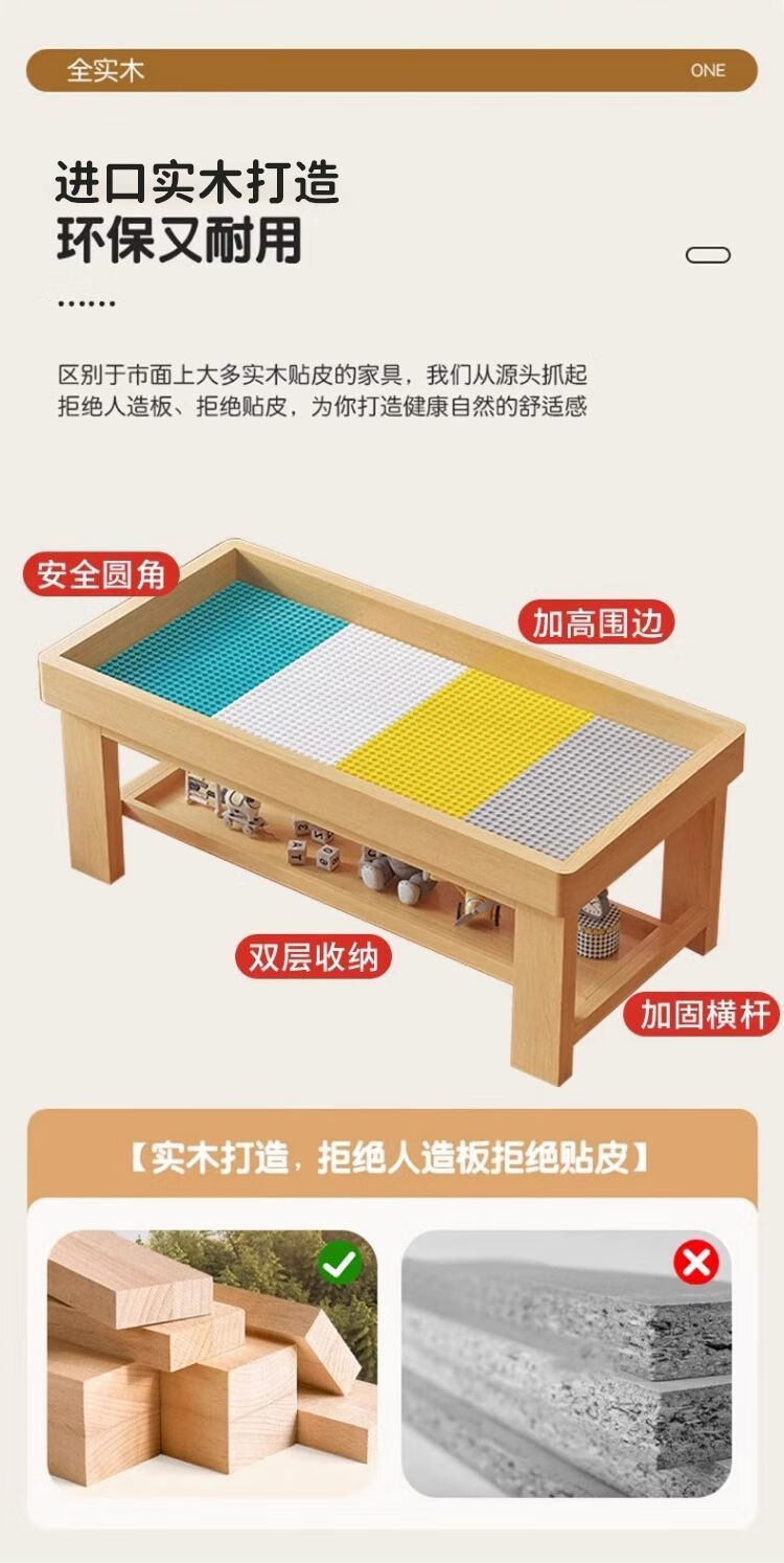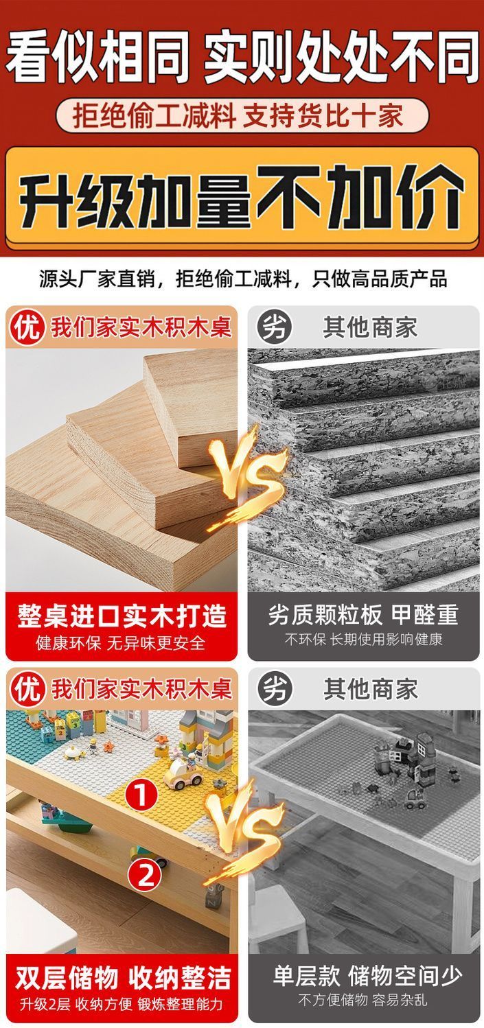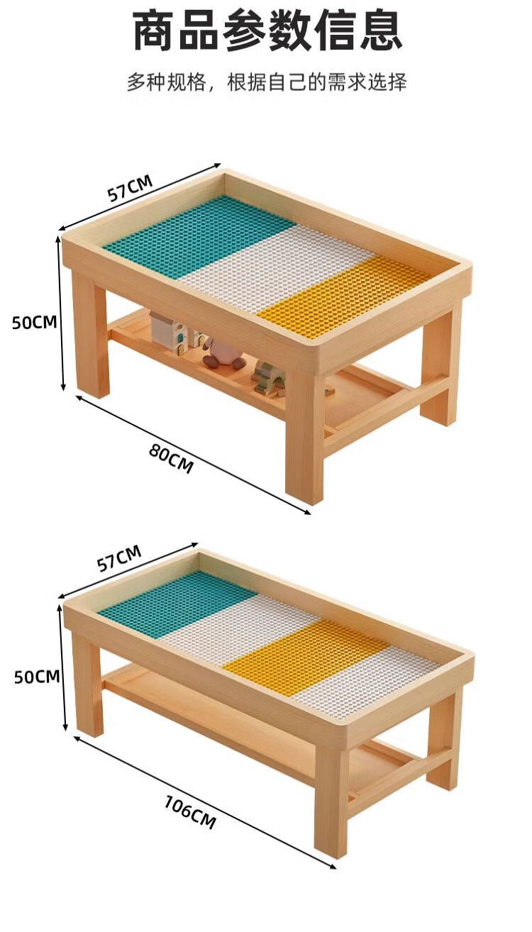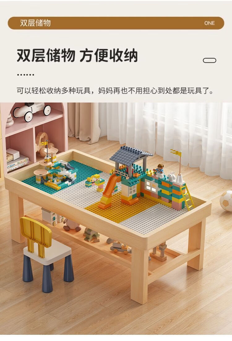 弘星隆实木积木桌儿童多功能男女孩桌子大颗粒积木拼装益智玩具桌学习桌 80实木双层积木卓【双层置物桌】