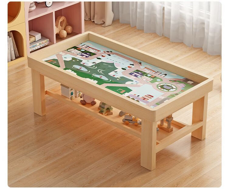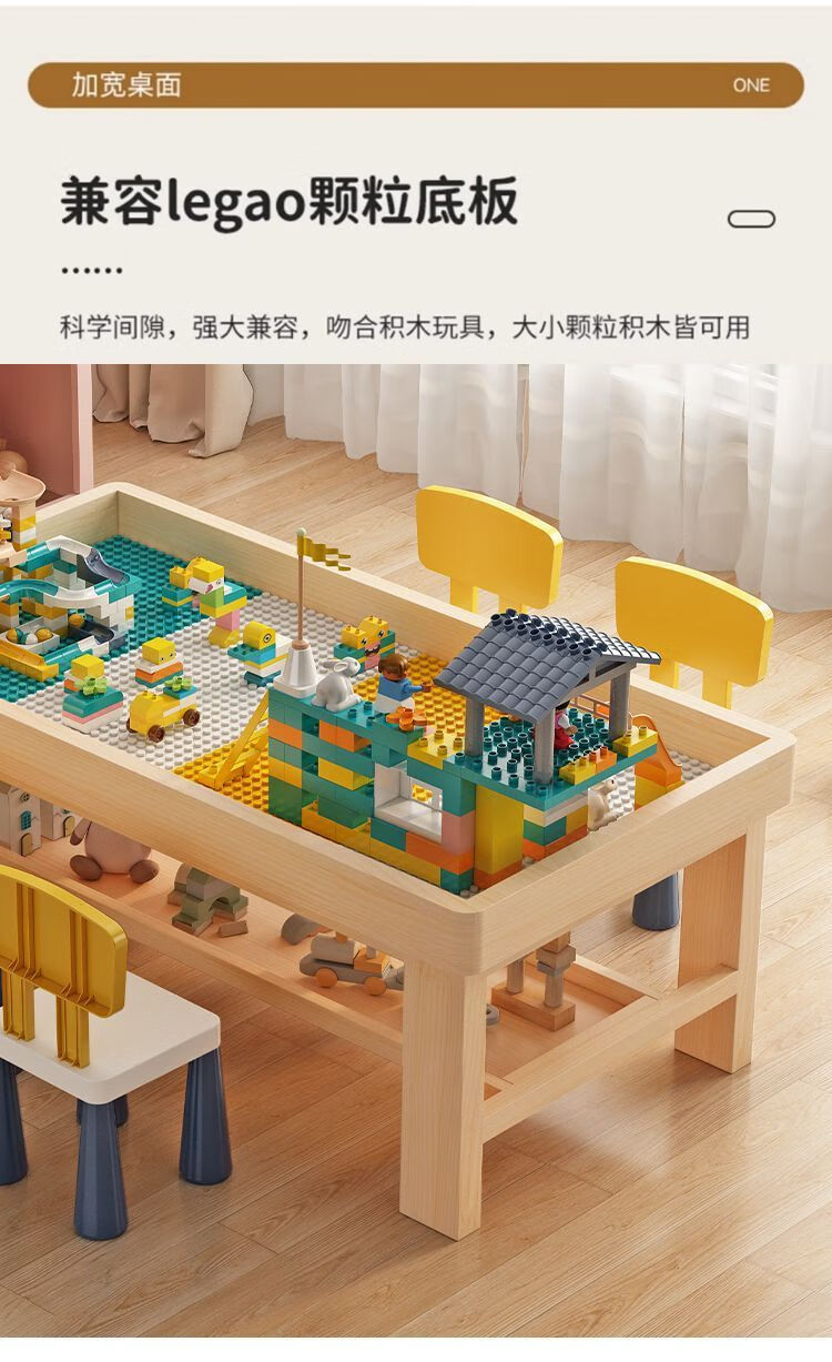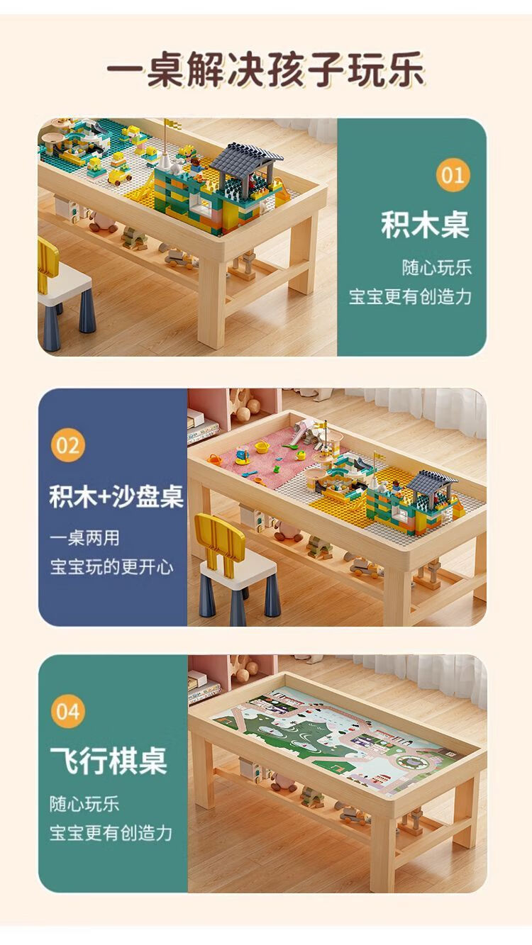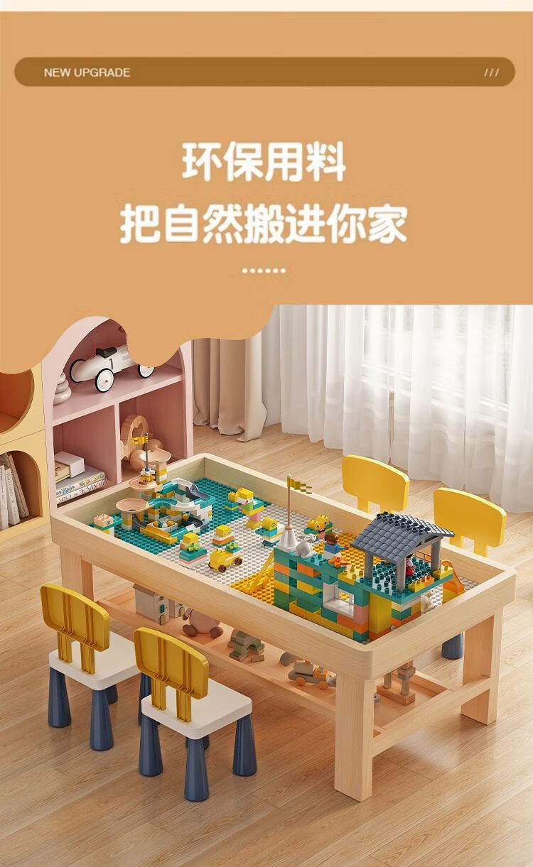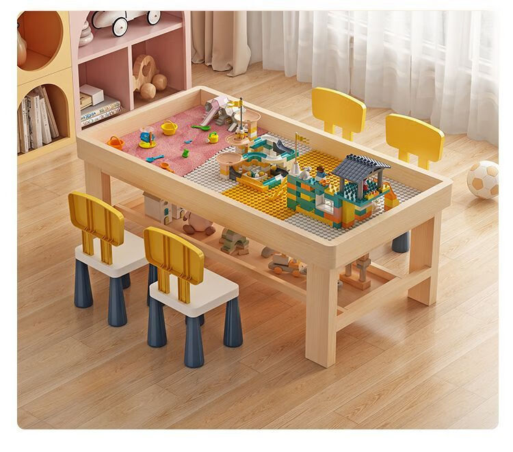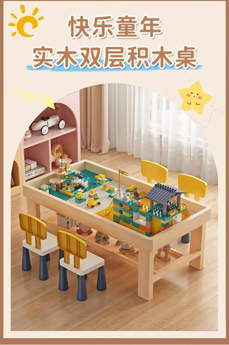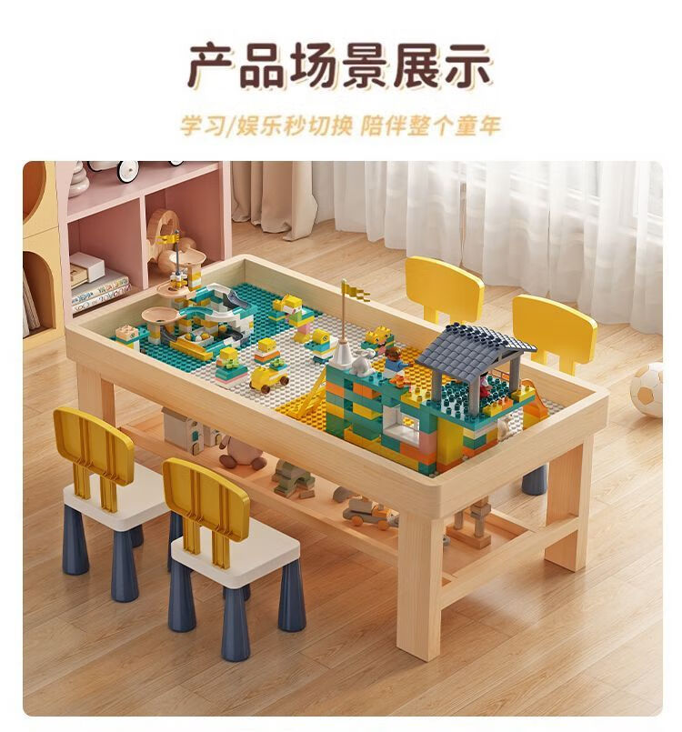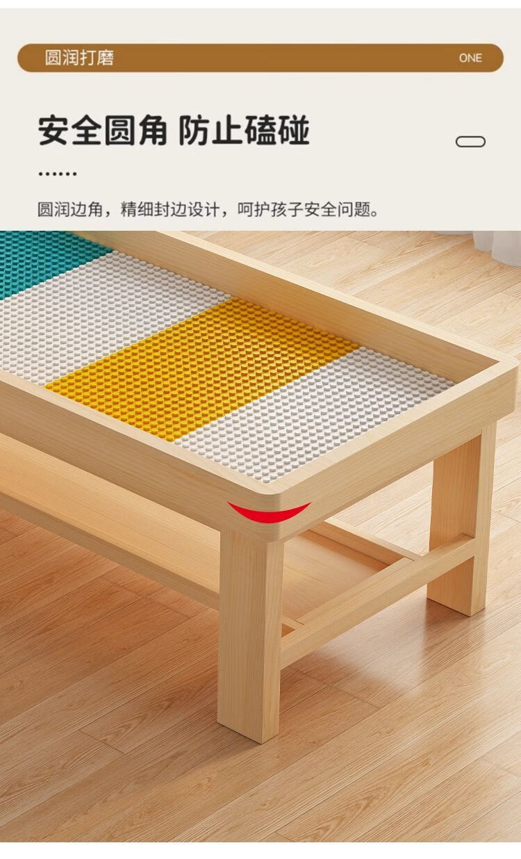 弘星隆实木积木桌儿童多功能男女孩桌子大颗粒积木拼装益智玩具桌学习桌 80实木双层积木卓【双层置物桌】