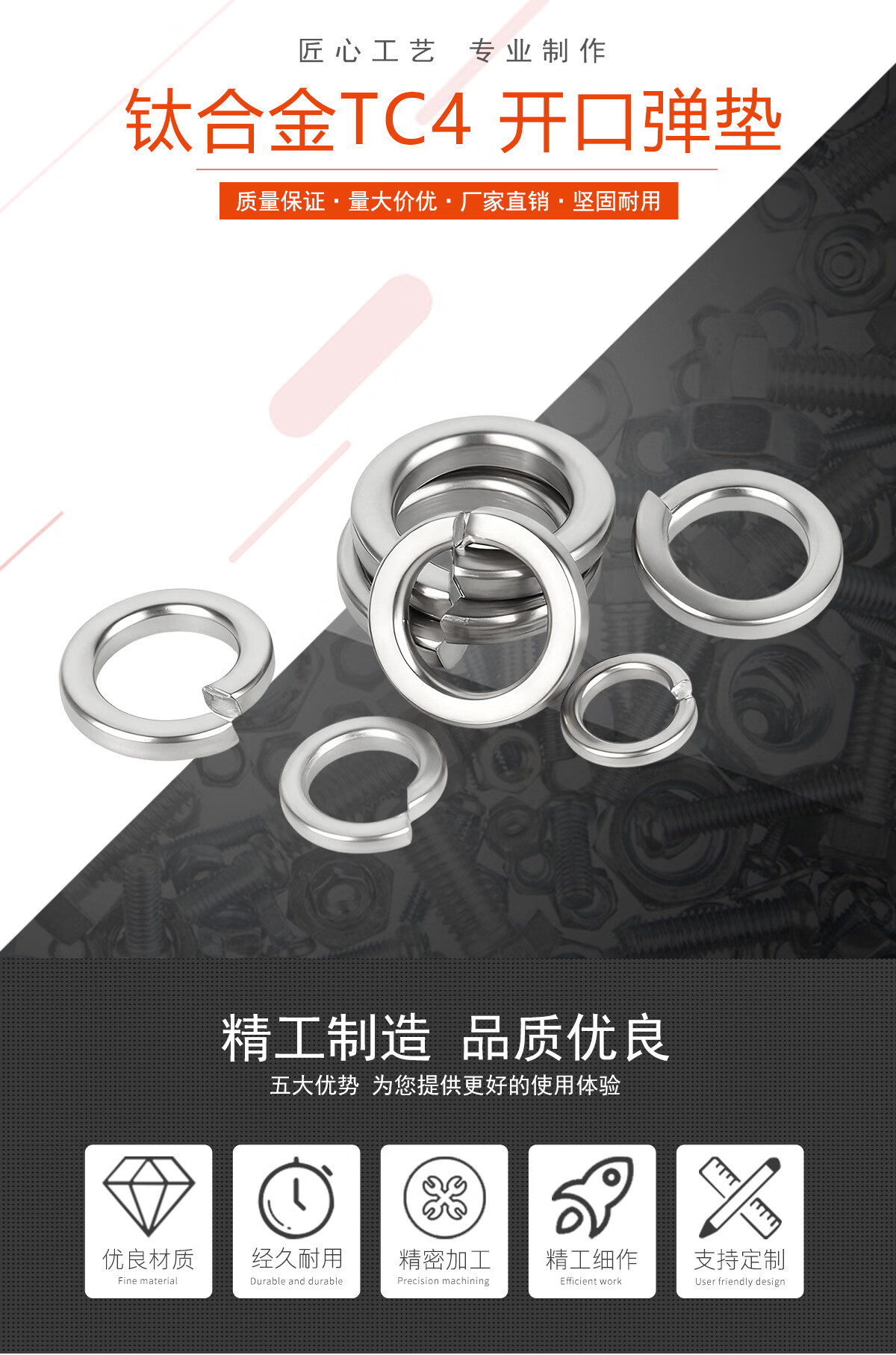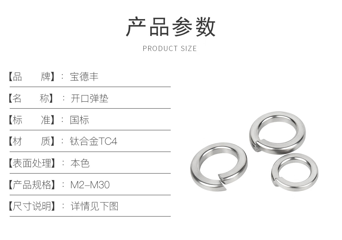 宝德丰TC4钛弹性垫圈钛合金弹簧开口垫圈GB93弹垫M2M3M4M5M6M8M10M12M14 M2[10只]