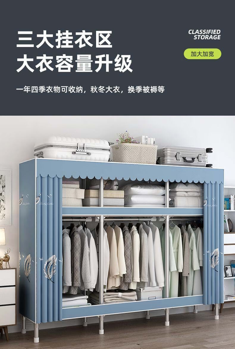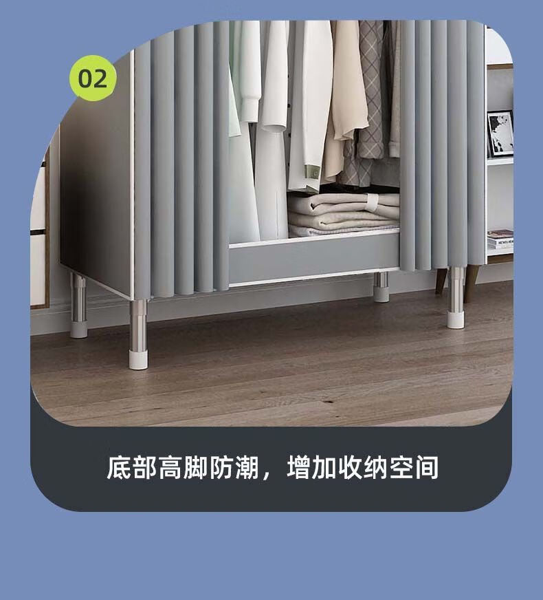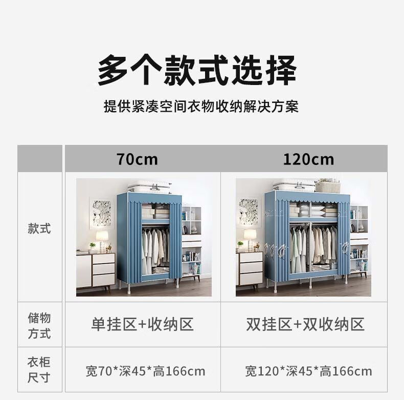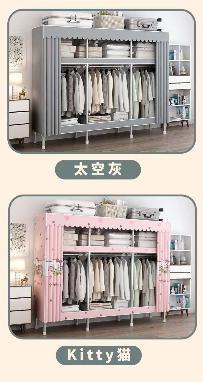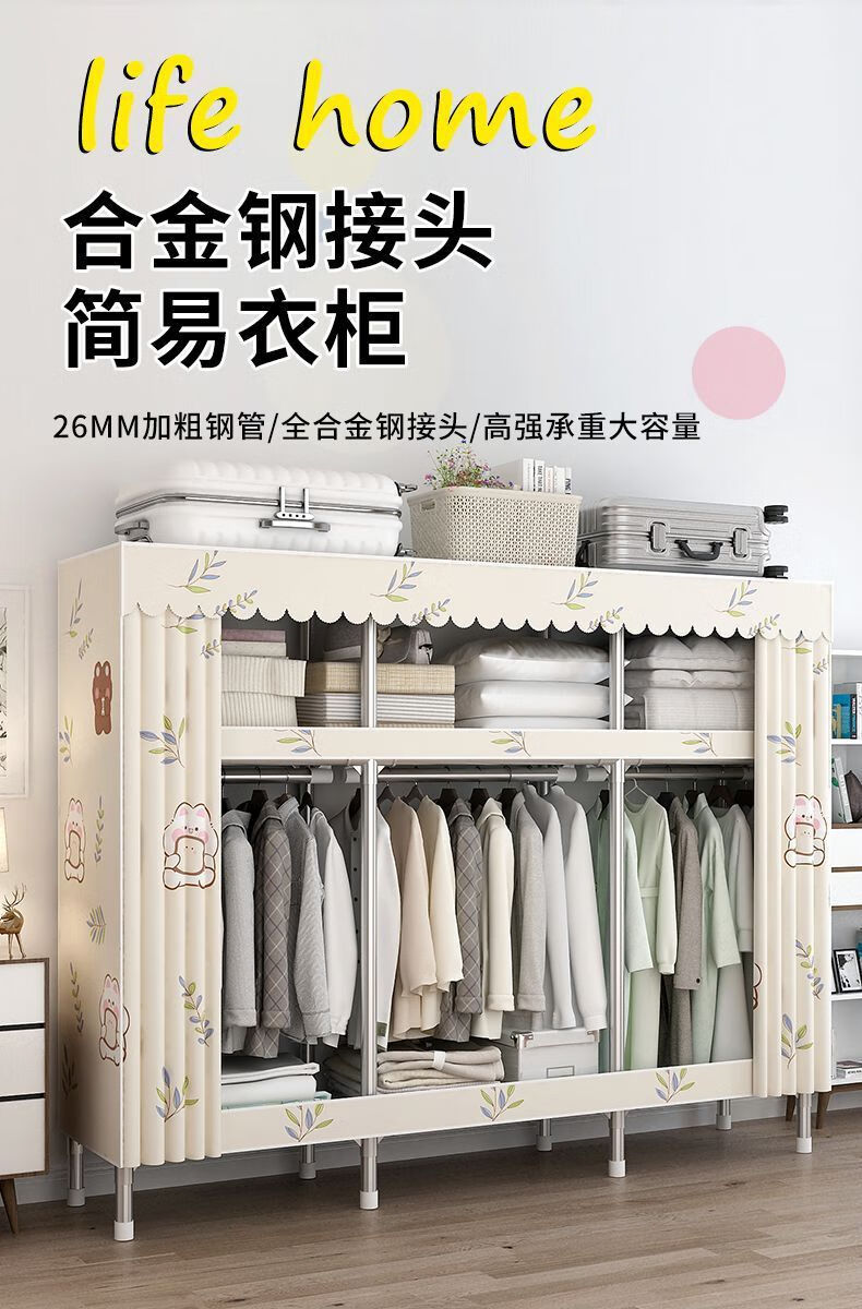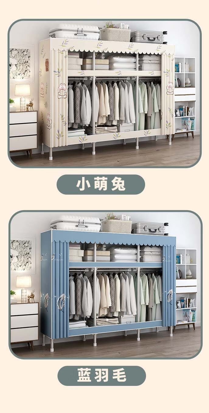 迈途森简易衣柜布衣柜家用卧室全钢架出租房用26mm钢管加粗加厚结实耐用 小萌兔 长70cm【小户型收纳】