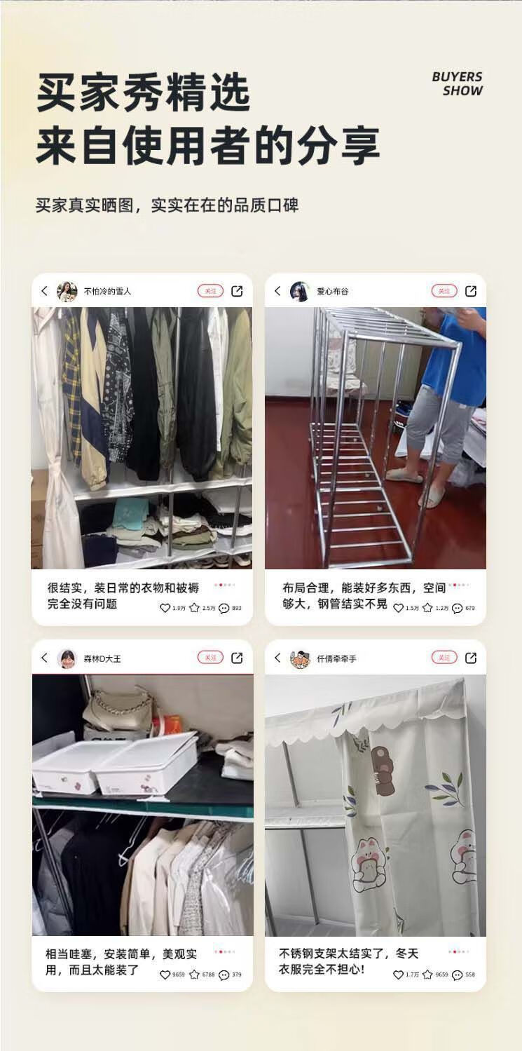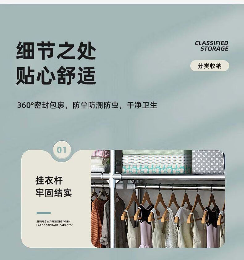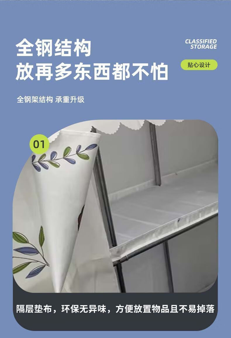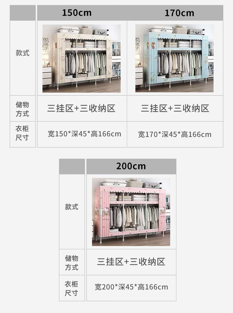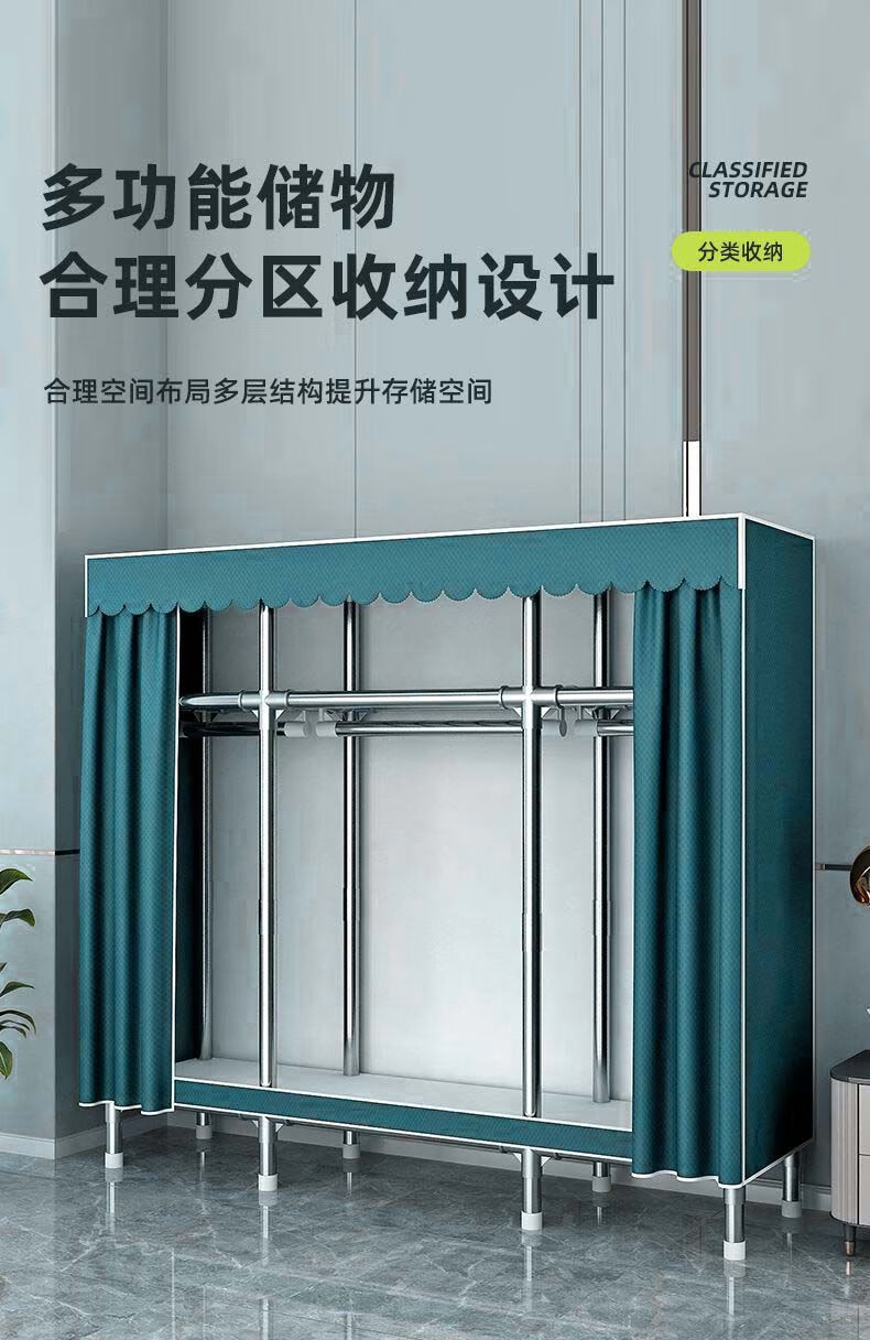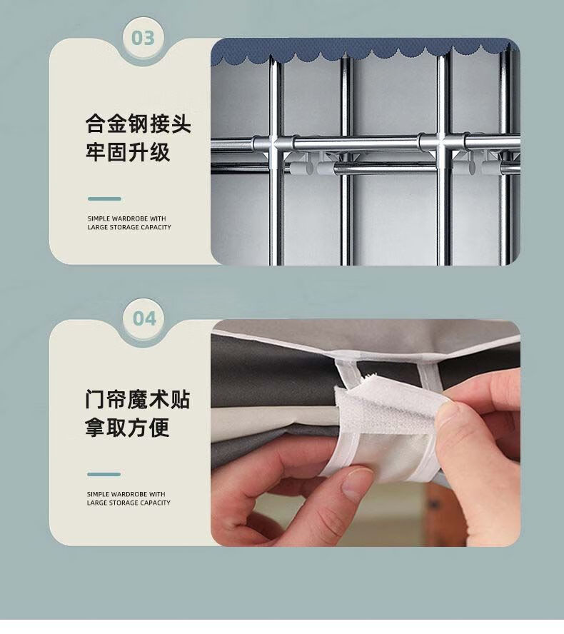 迈途森简易衣柜布衣柜家用卧室全钢架出租房用26mm钢管加粗加厚结实耐用 小萌兔 长70cm【小户型收纳】