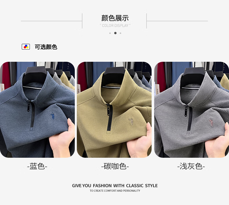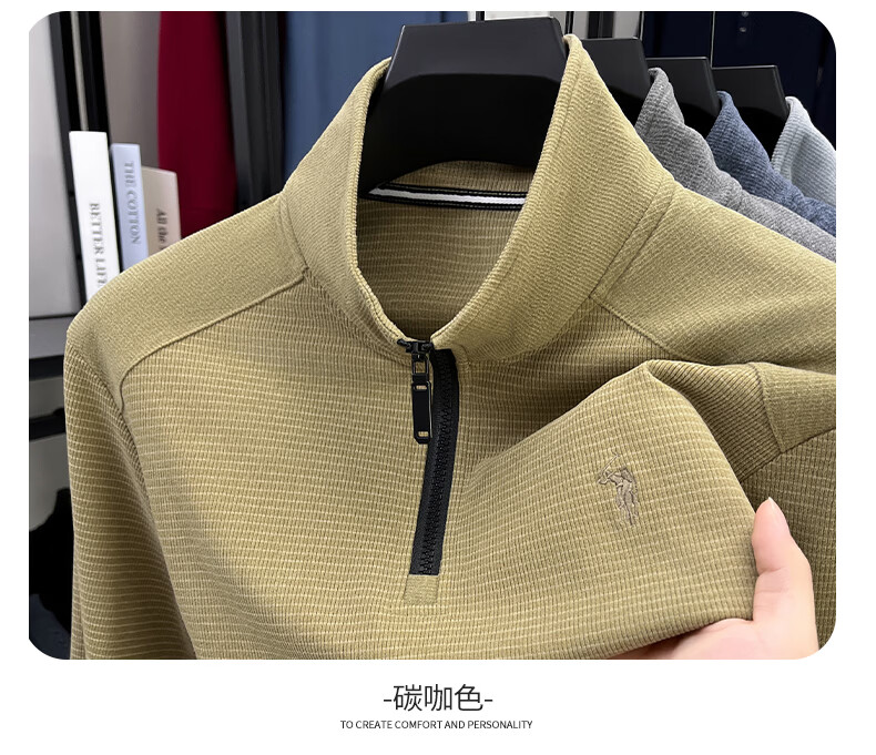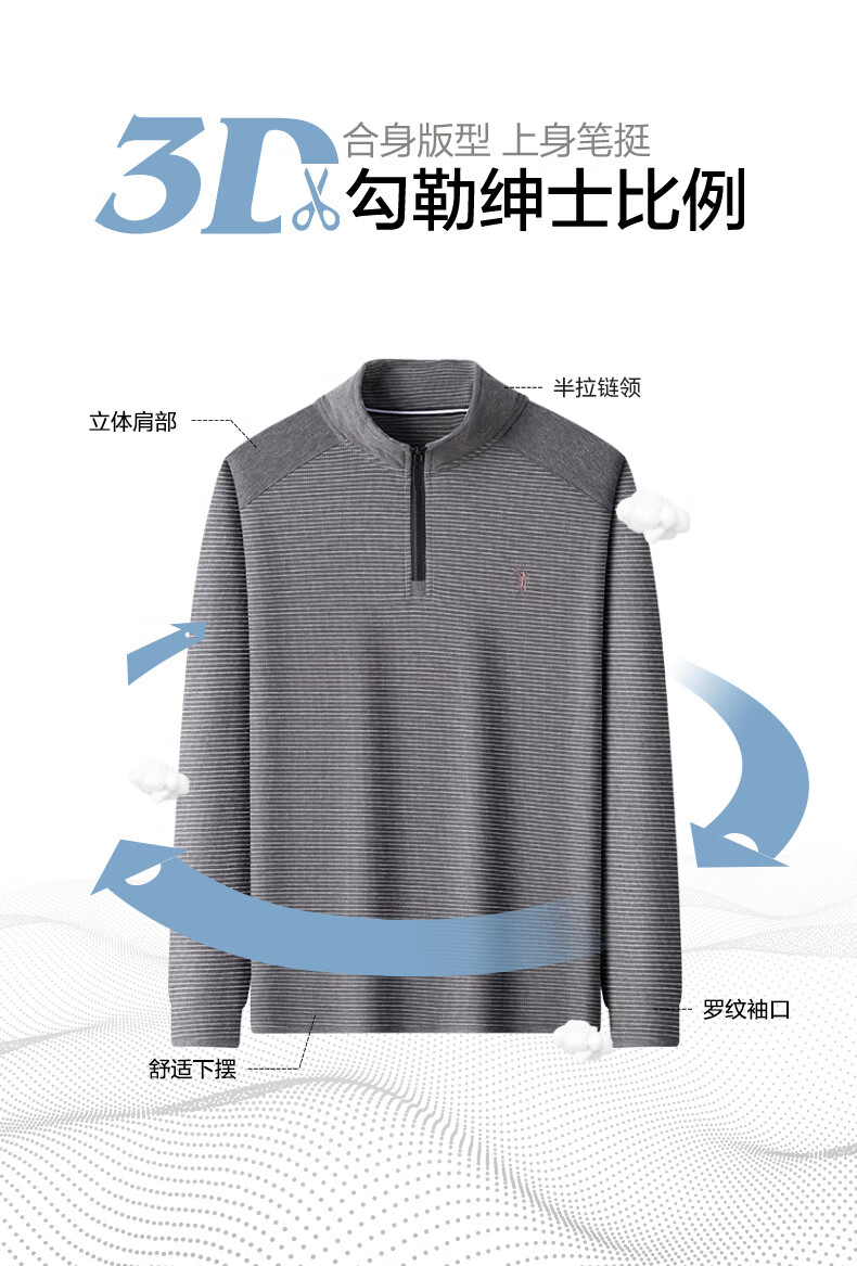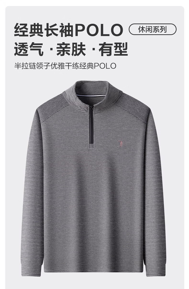 SHANSHAN杉杉【莱赛尔】长袖T恤男士半拉链立领弹力打底Polo商务休闲上衣 蓝色 M /170