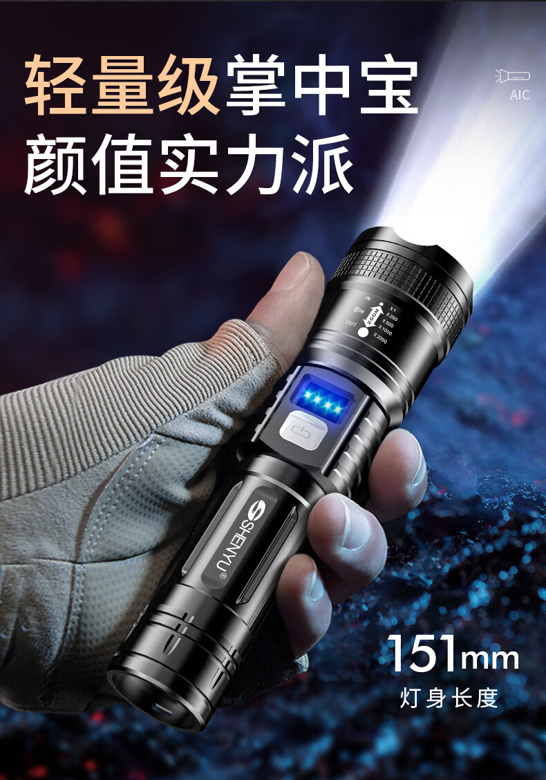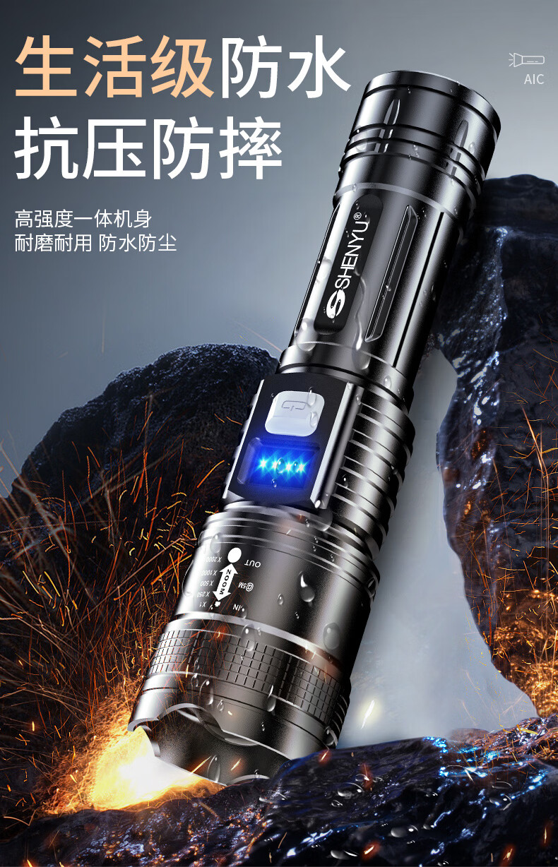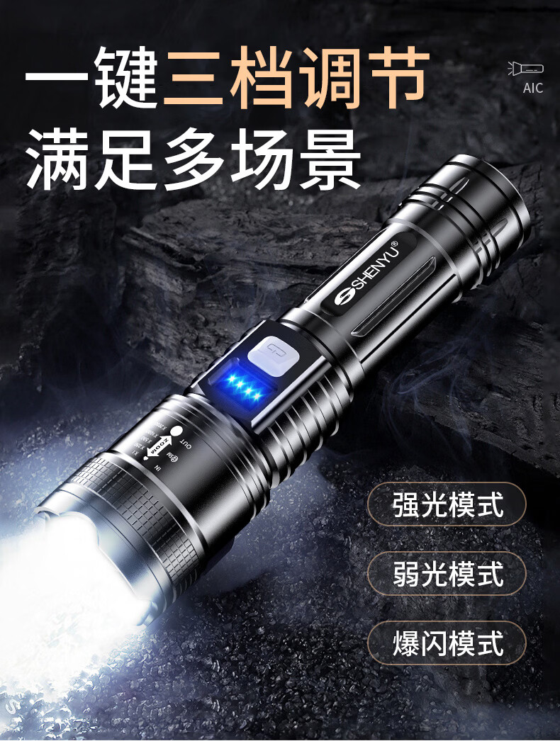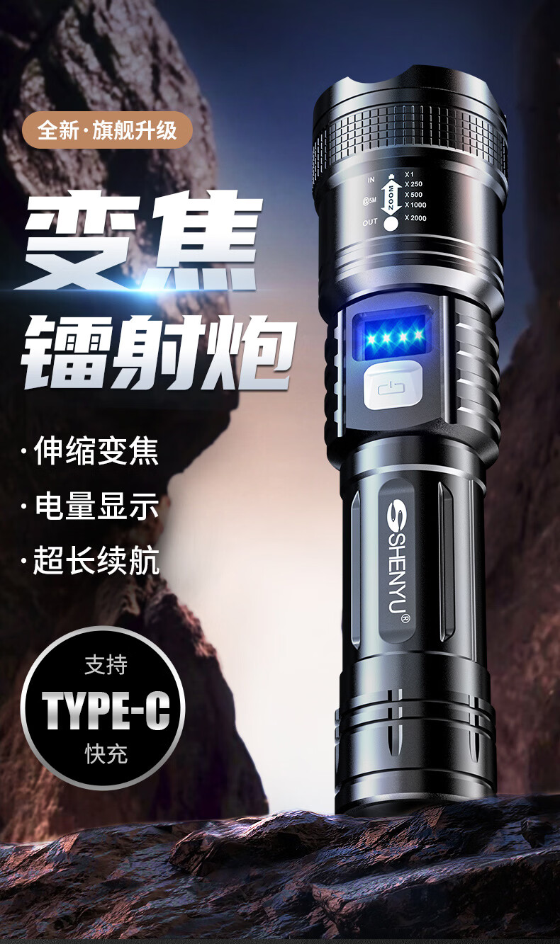 SHENYU手电筒强光超亮充电超长续航家用户外应急便携大容量耐用伸缩变焦 【强光超亮】持久续航