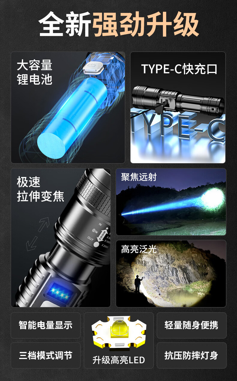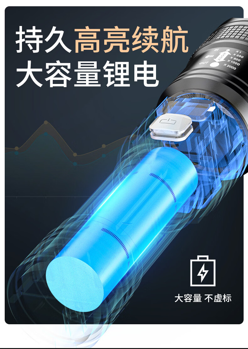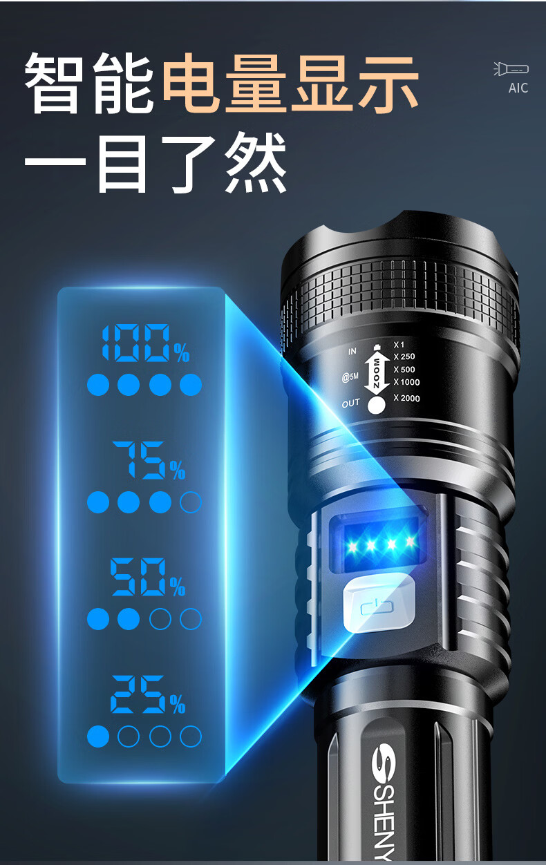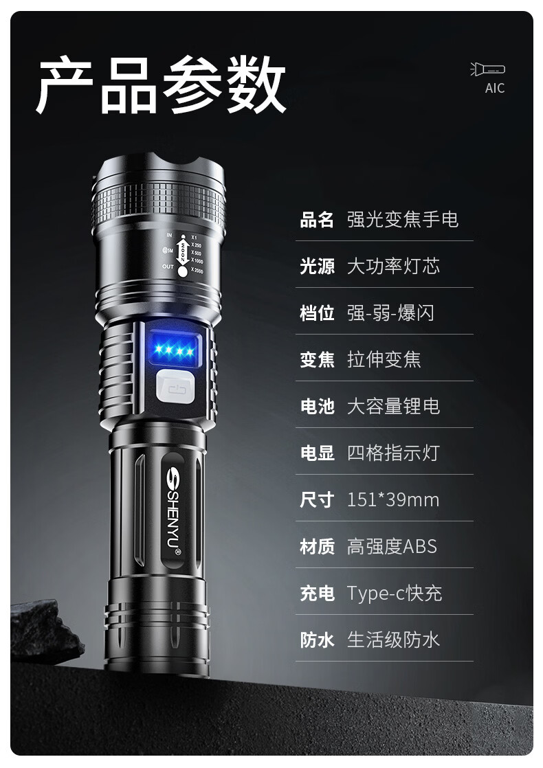 SHENYU手电筒强光超亮充电超长续航家用户外应急便携大容量耐用伸缩变焦 【强光超亮】持久续航