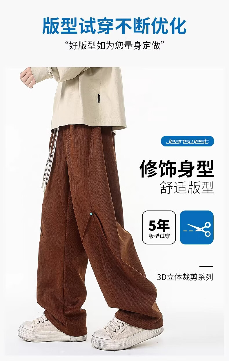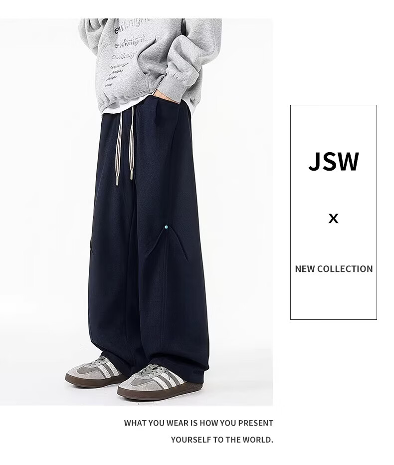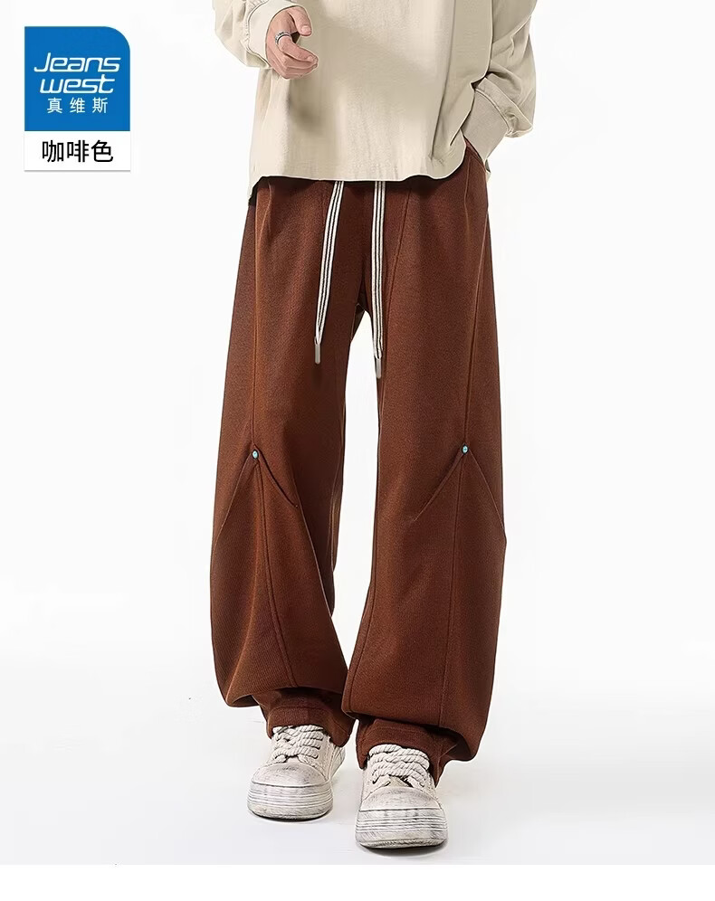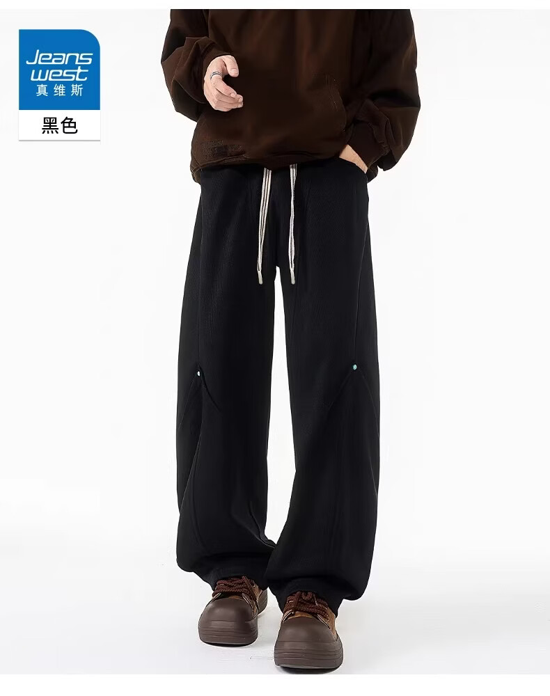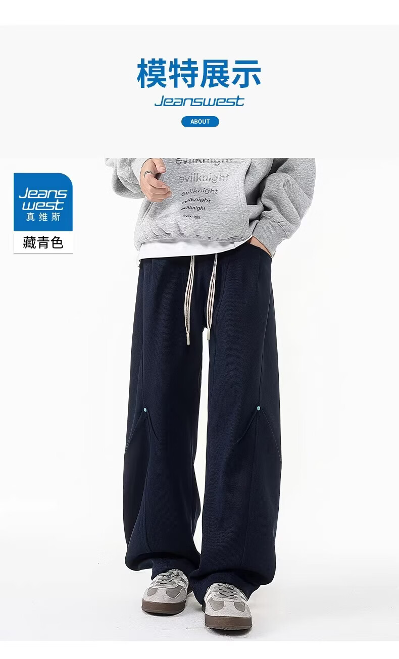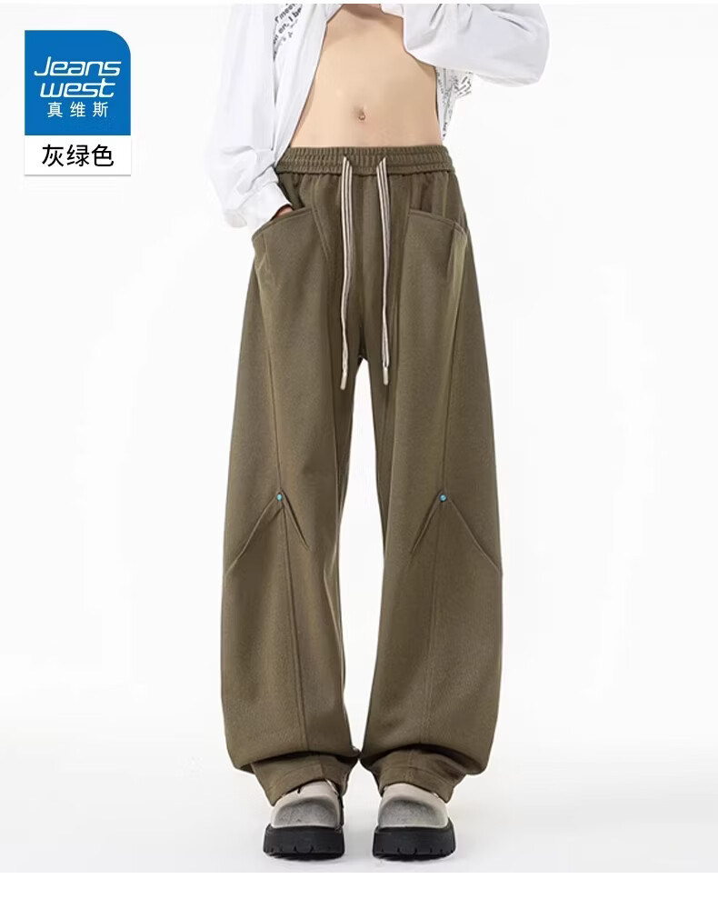 真维斯(Jeanswest)直筒宽松休闲裤男2026春季新款青春活力风立体装饰阔腿长裤 灰绿色 【美式复古】 L 【建议100-120斤】