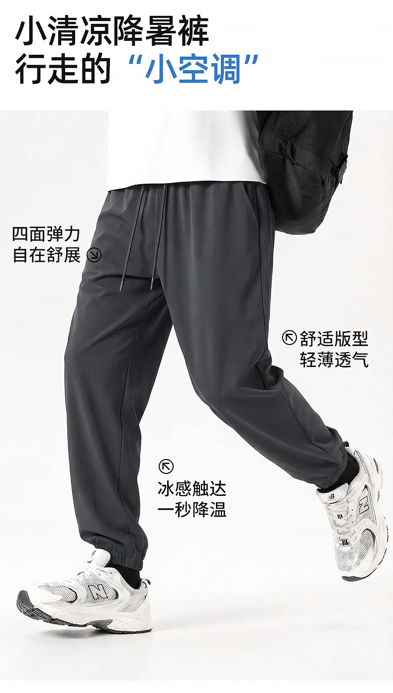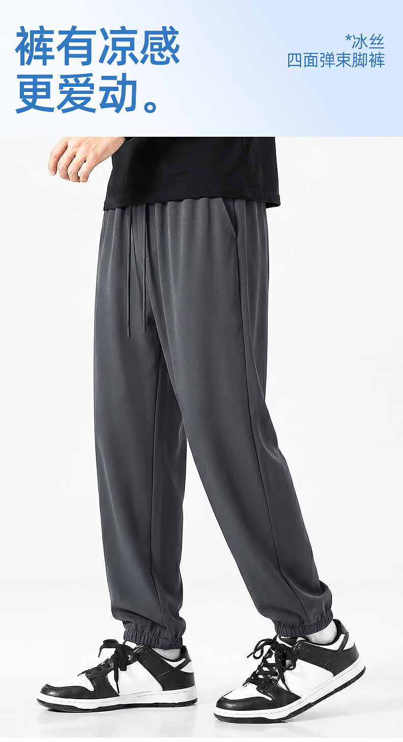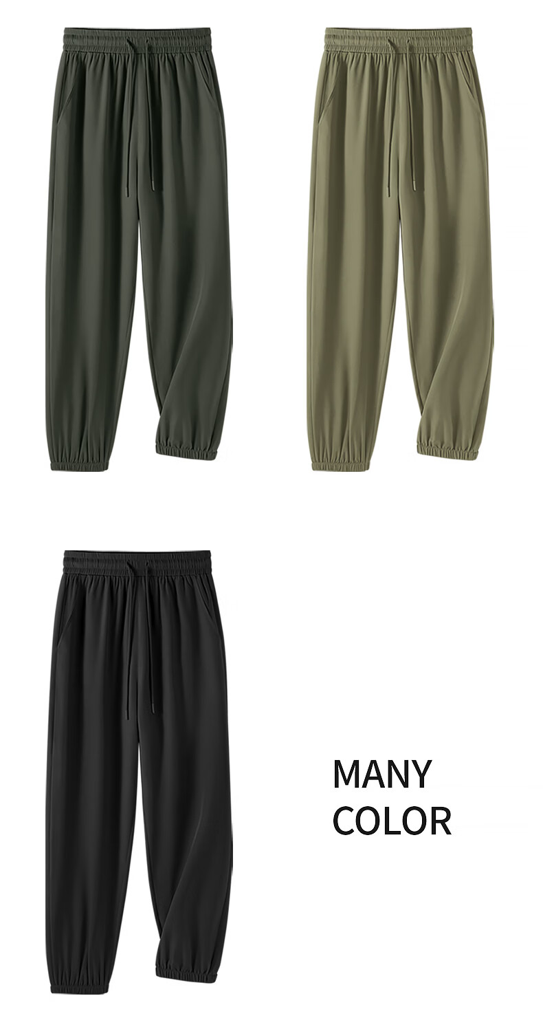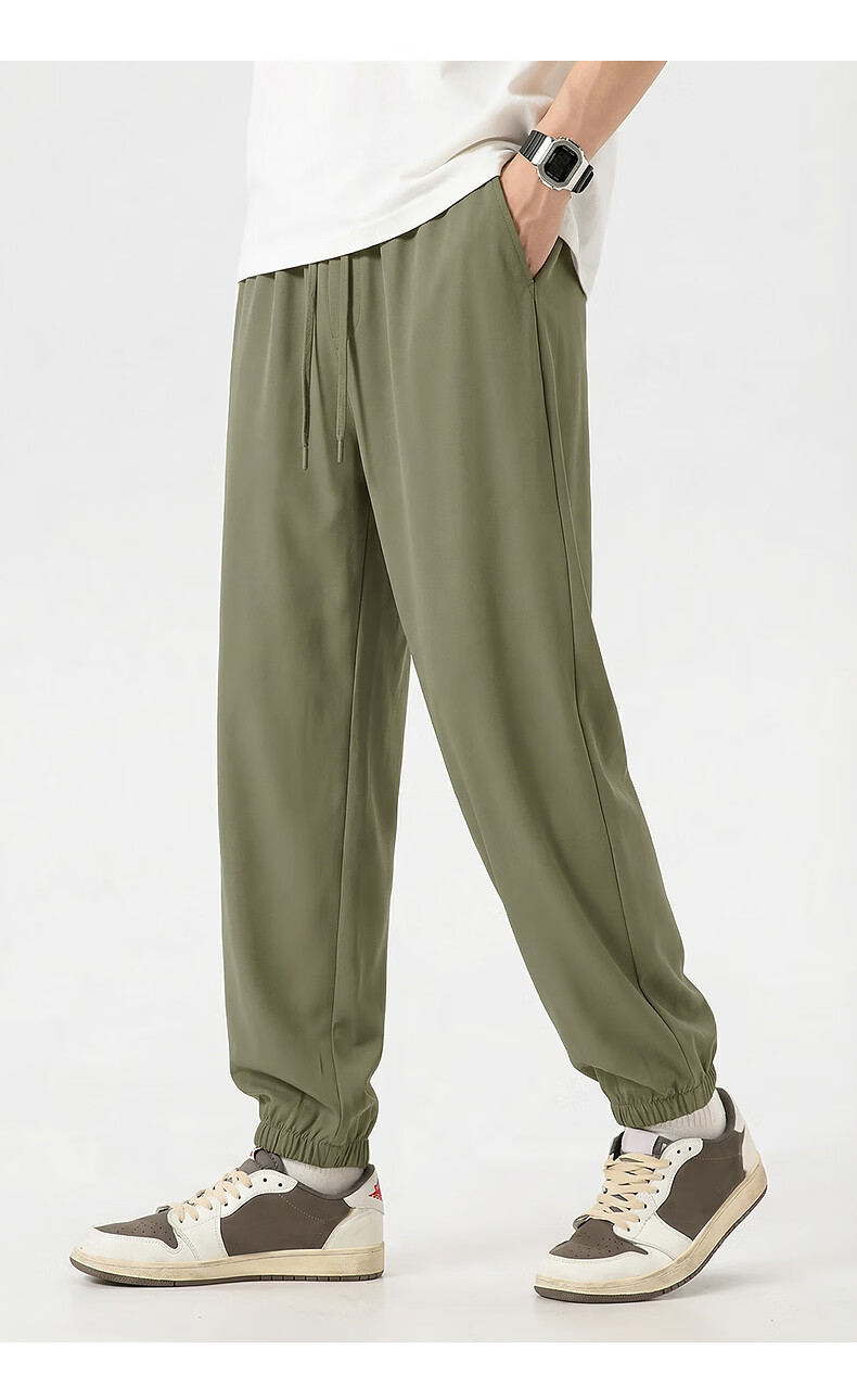 真维斯(Jeanswest)运动休闲长裤男士夏季2026新款冰丝速干裤青少年宽松百搭束脚卫裤 军绿 纯色 M