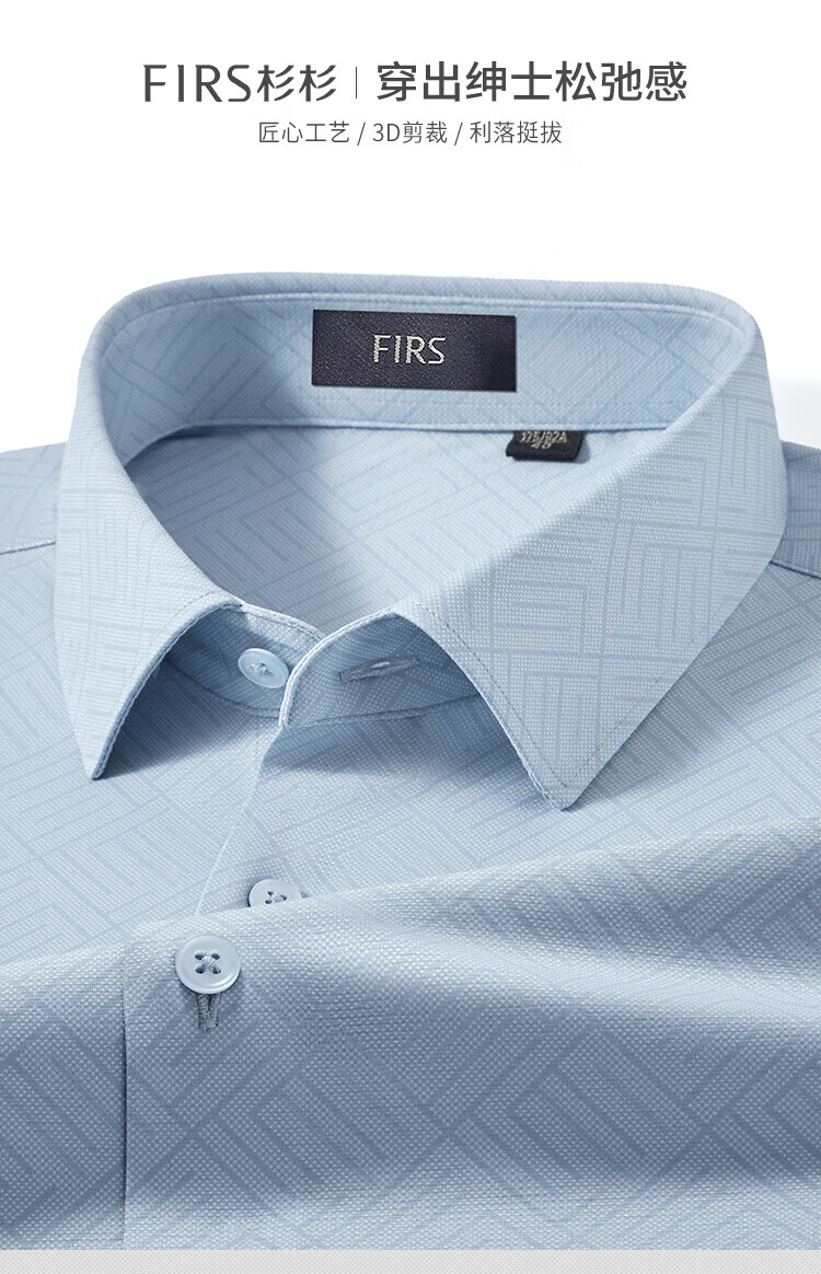 杉杉(FIRS)【醋酸桑蚕丝】衬衫男长袖春秋商务通勤柔顺亲肤挺括纯色内搭上衣 浅蓝 39 170/88A