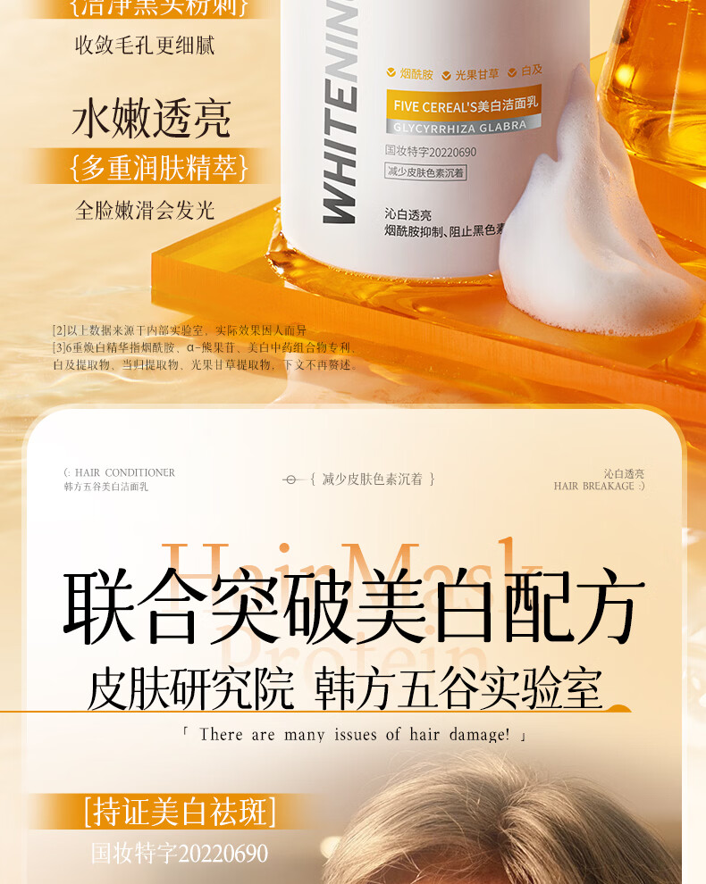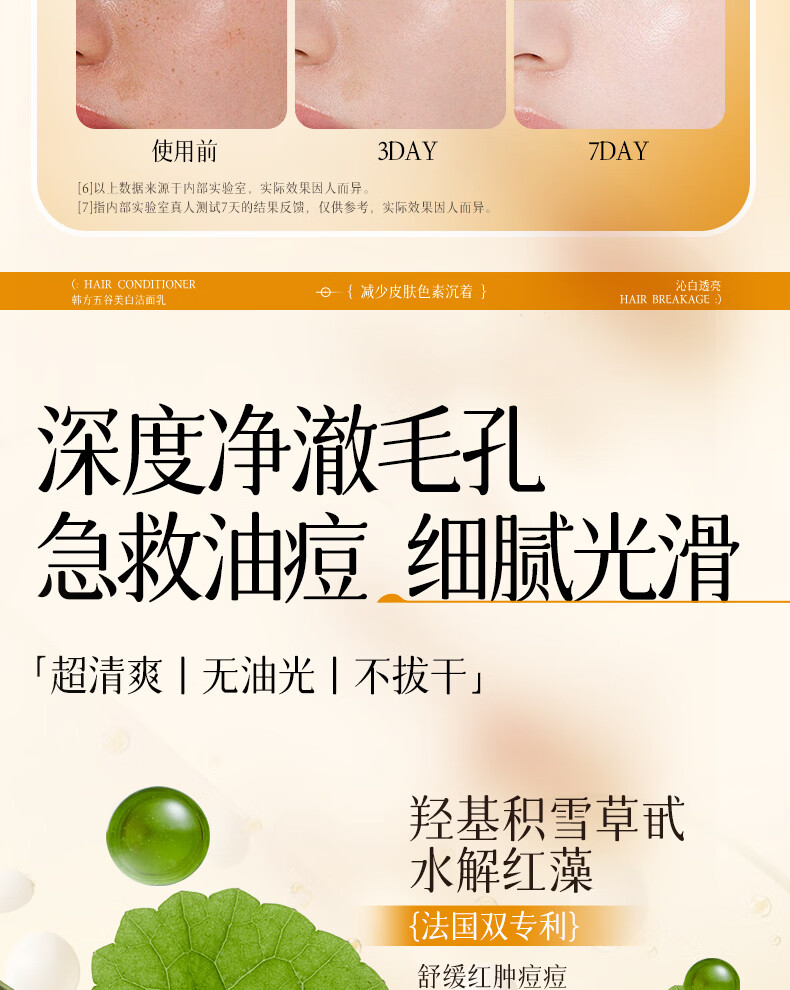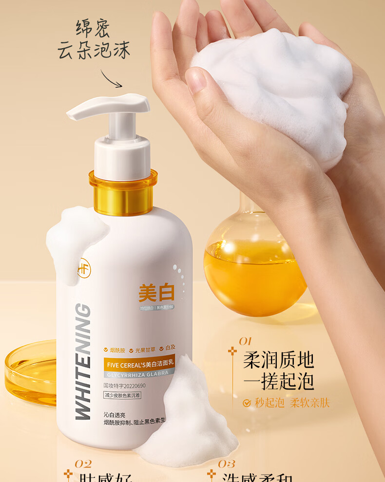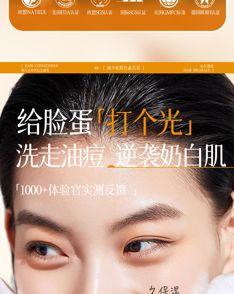 韩方五谷氨基酸美白洗面奶男女士美白淡斑提亮肤色深层清洁毛孔控油洁面乳