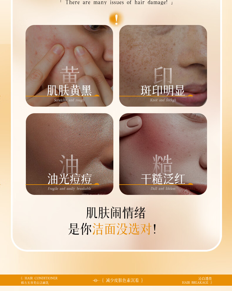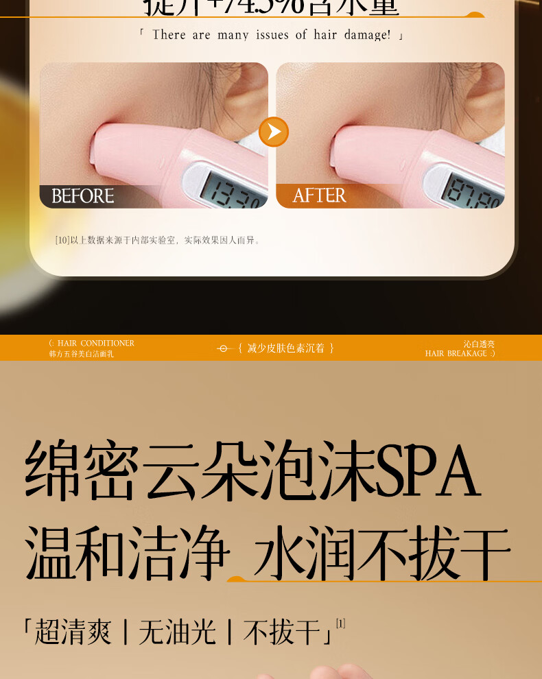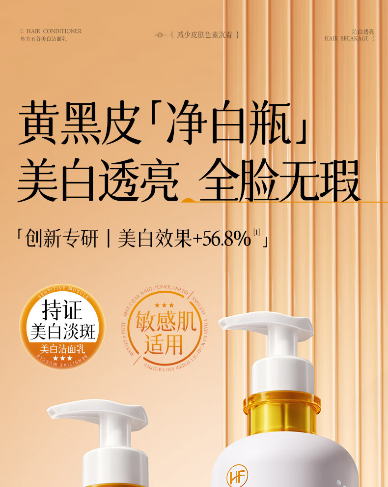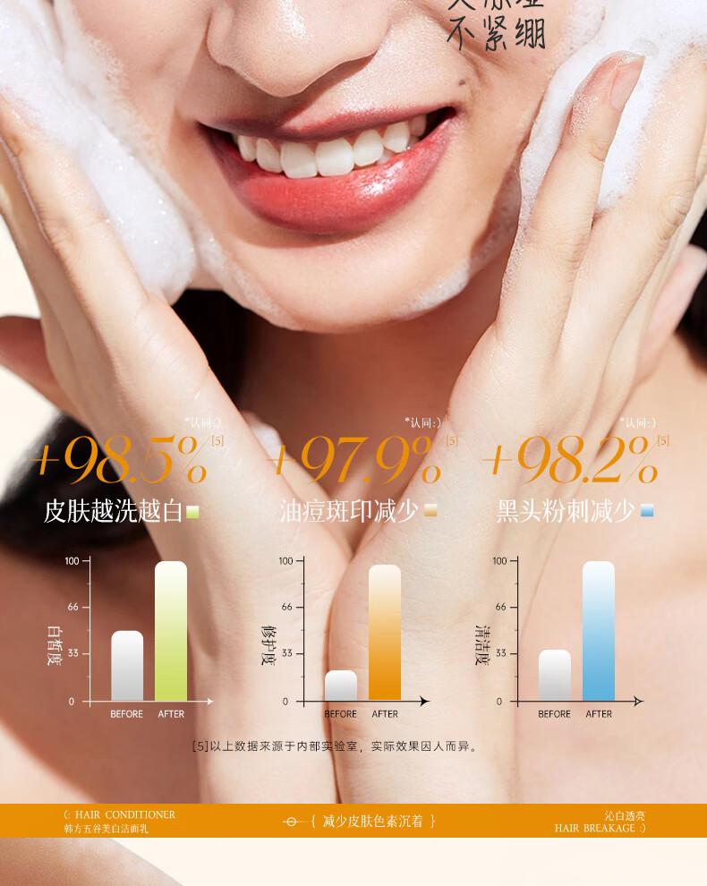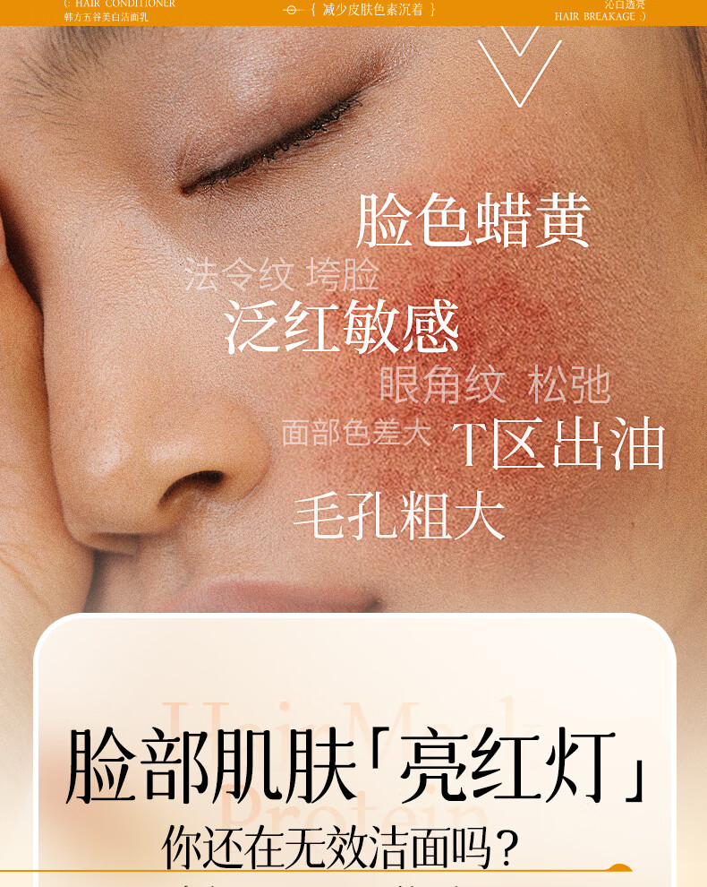 韩方五谷氨基酸美白洗面奶男女士美白淡斑提亮肤色深层清洁毛孔控油洁面乳