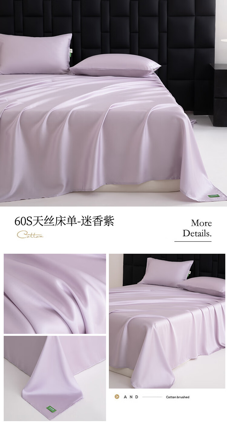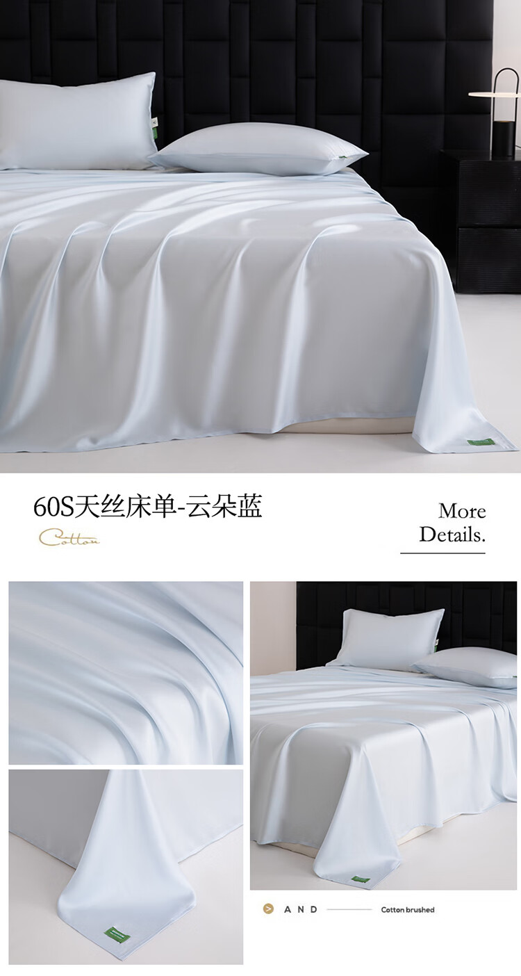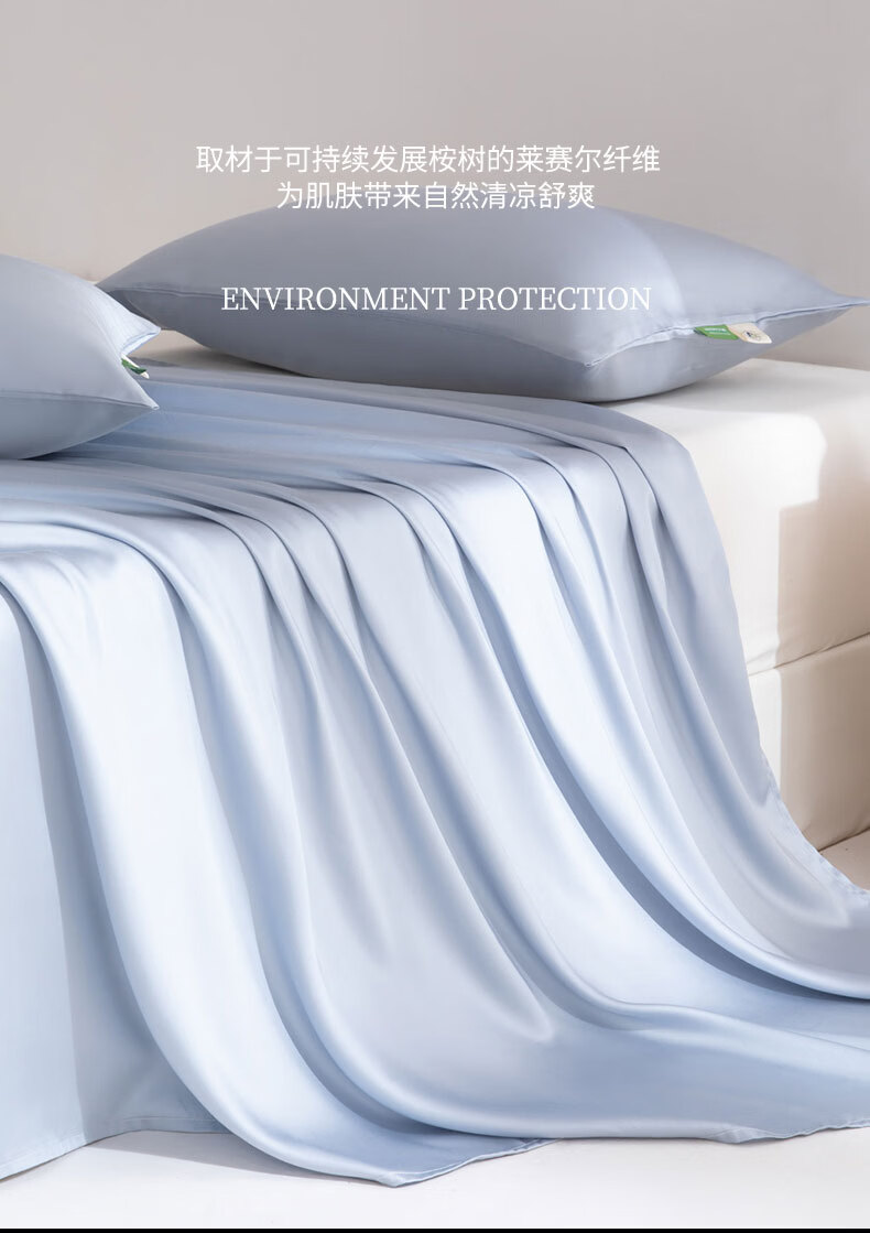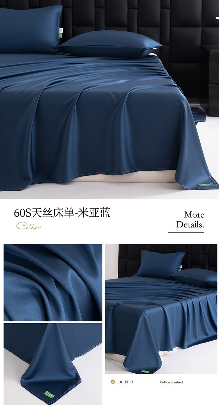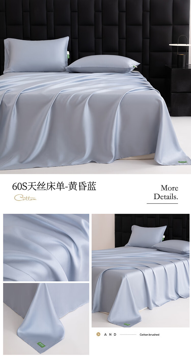 无印良品60支天丝床单200x230cm单人夏季凉感可裸睡被单单件宿舍家用3件套 60S天丝床单-黄昏蓝【凉感透气 清爽不闷】 120cm*230cm 单床单【适用0.9m床】