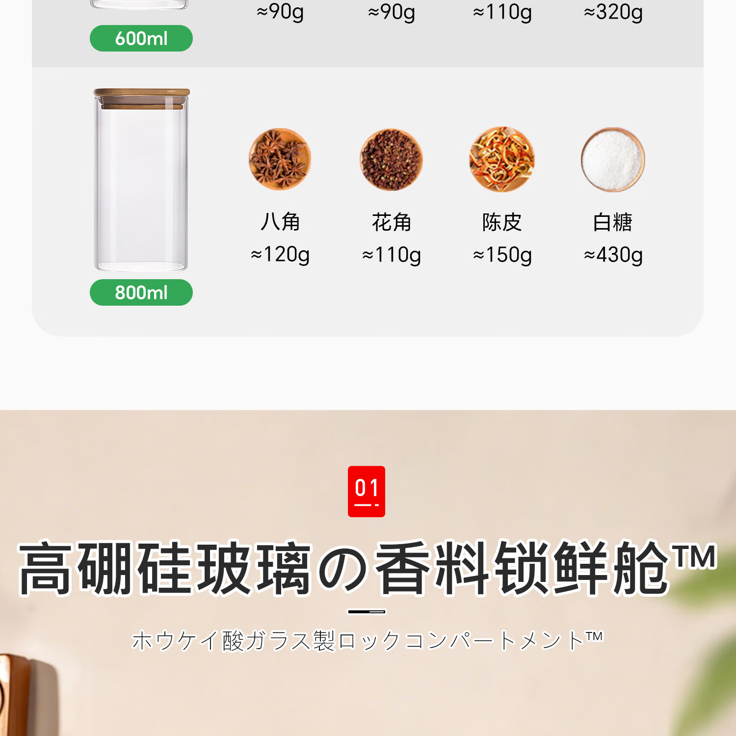 吱凡日本香料收纳盒厨房神器家用食品级花椒大料佐料干货调料盒密封罐 【家庭4件套】400ml-2个装+600ml-2个装 【高硼硅玻璃】【密封升级丨调料不潮】