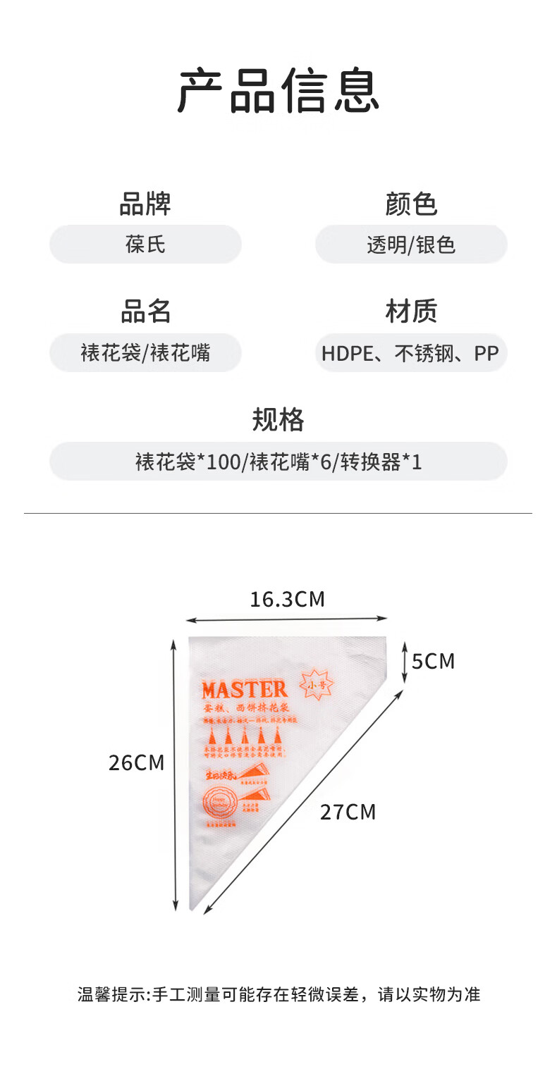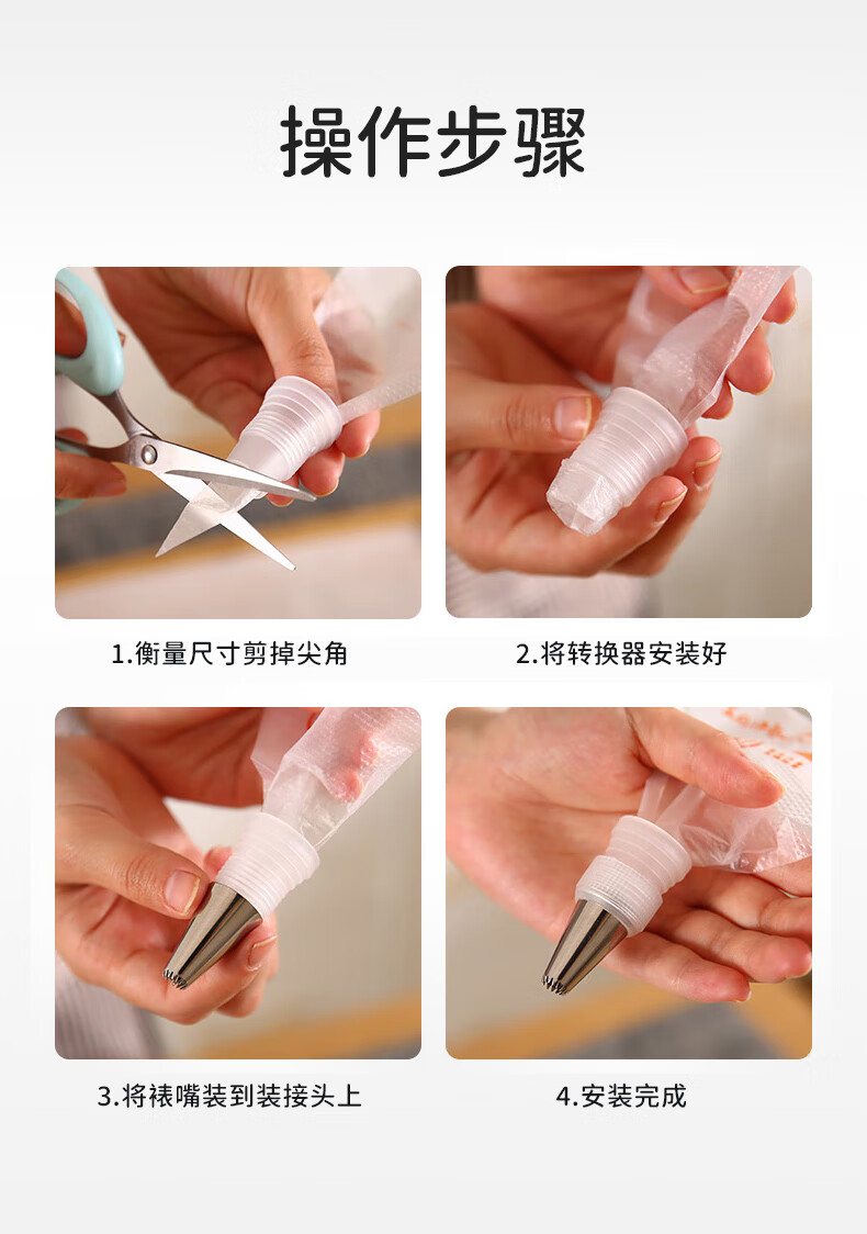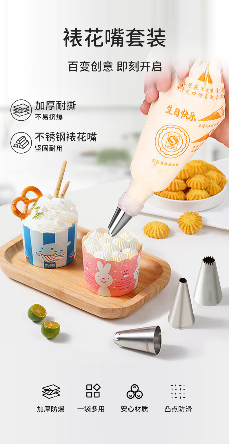 葆氏婴儿辅食模具蛋糕烘焙工具加厚一次性裱花袋100只+转换器*1+6个嘴
