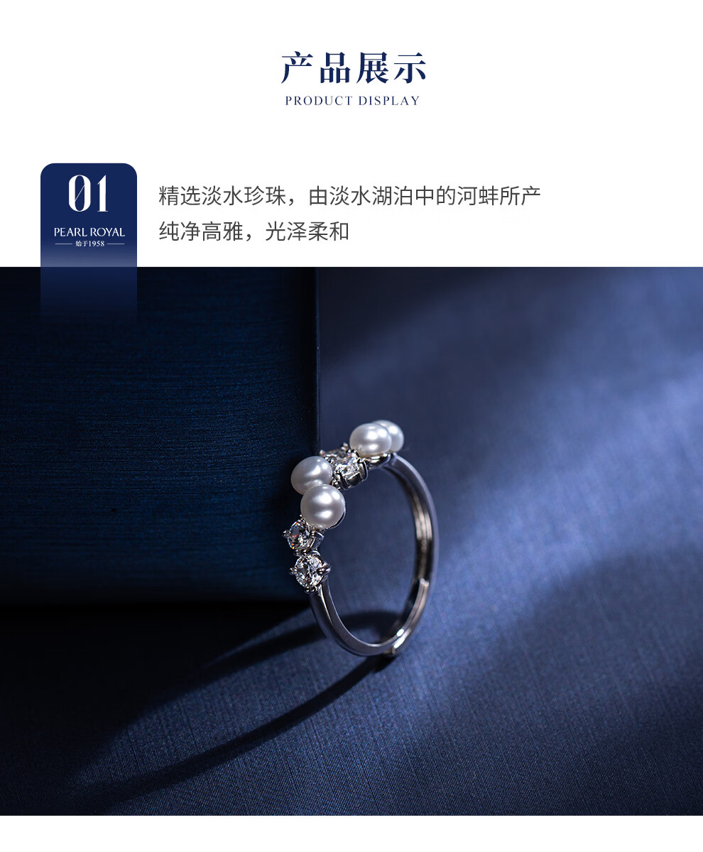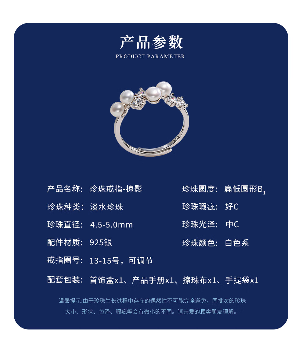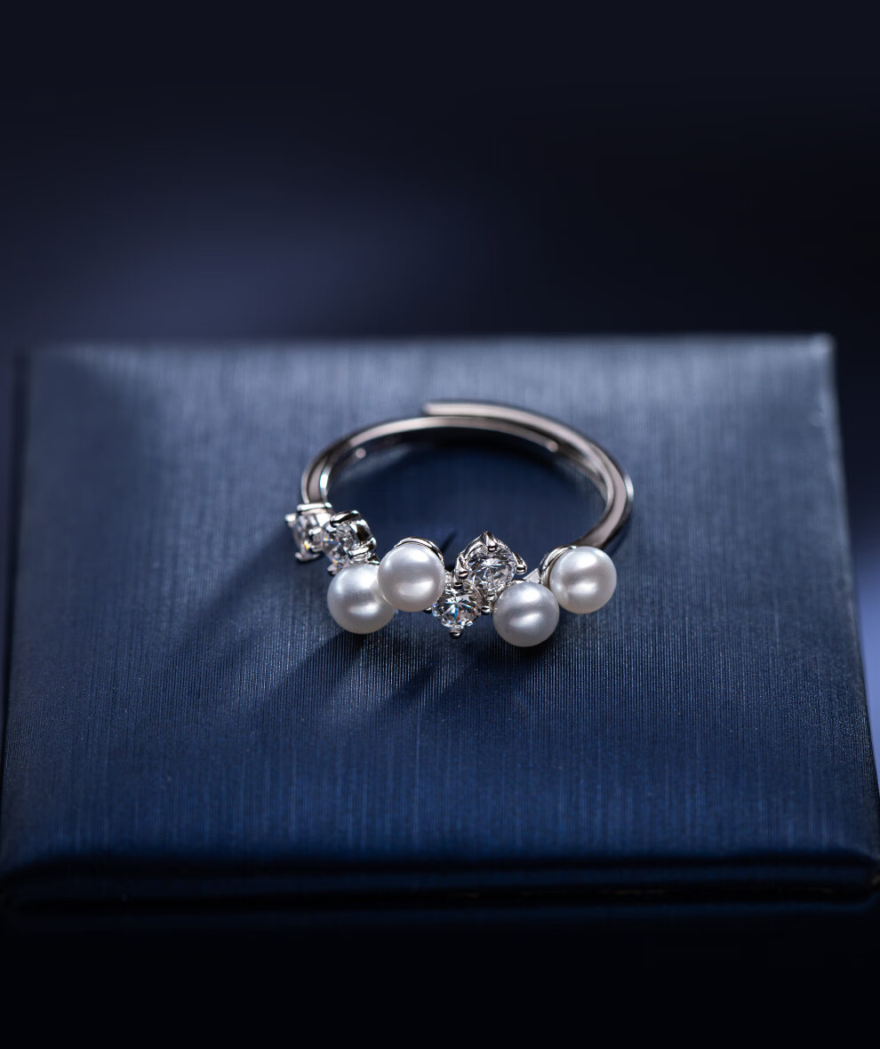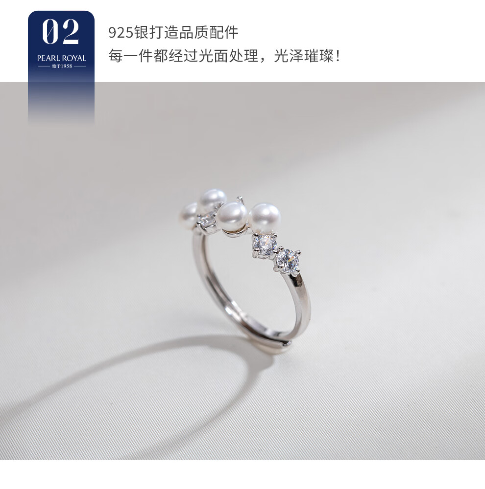 南珠宫掠影925银淡水珍珠戒指精致优雅高级感生日礼物送女友 4.0-5.0mm 13-15号【可调节】