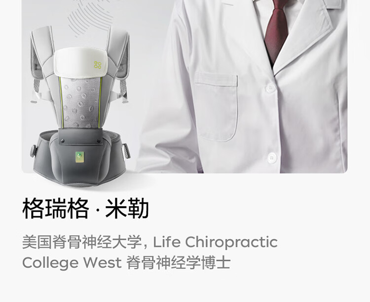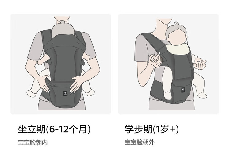 babycare婴儿背带腰凳透气轻便 宝宝外出抱娃神器四季通用 陨光灰