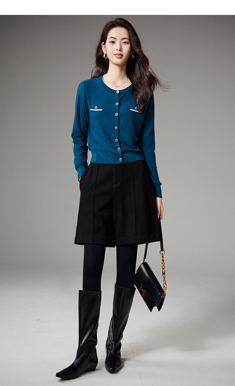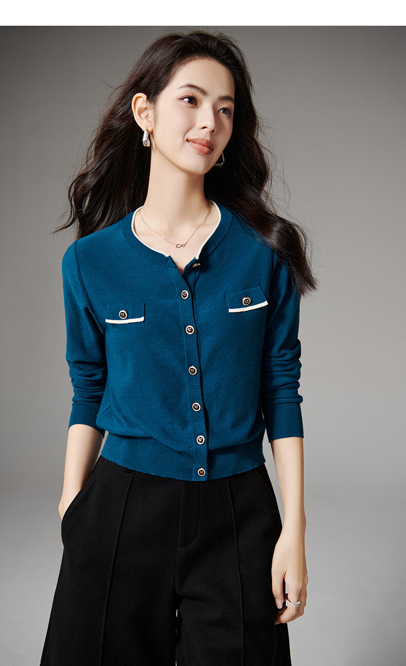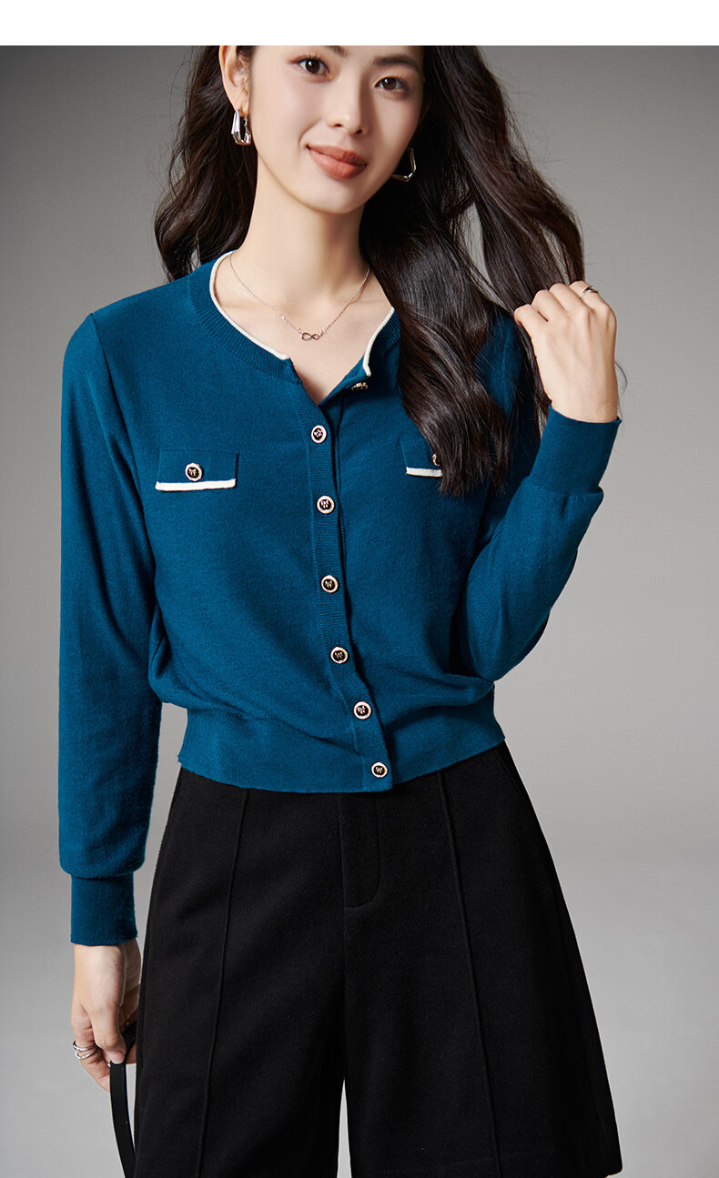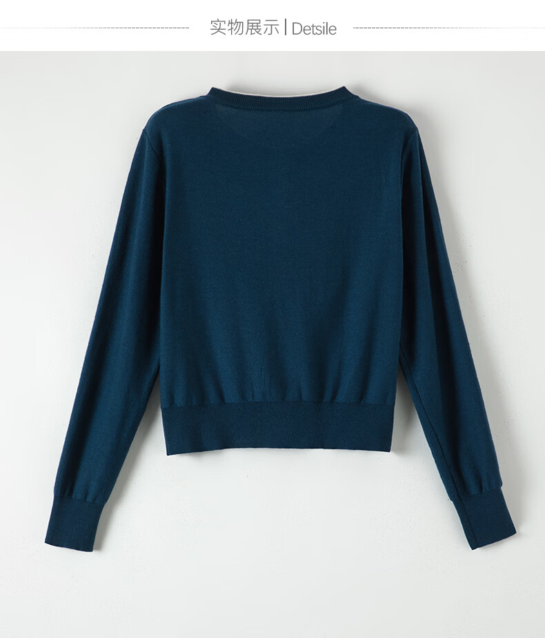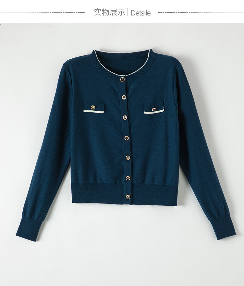 晚白【断码清仓】气质含绵羊毛上衣经典百搭利落修身短针织开衫女 深蓝色 S