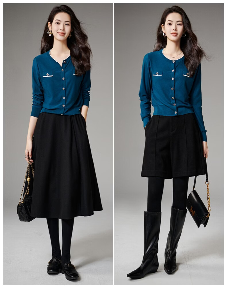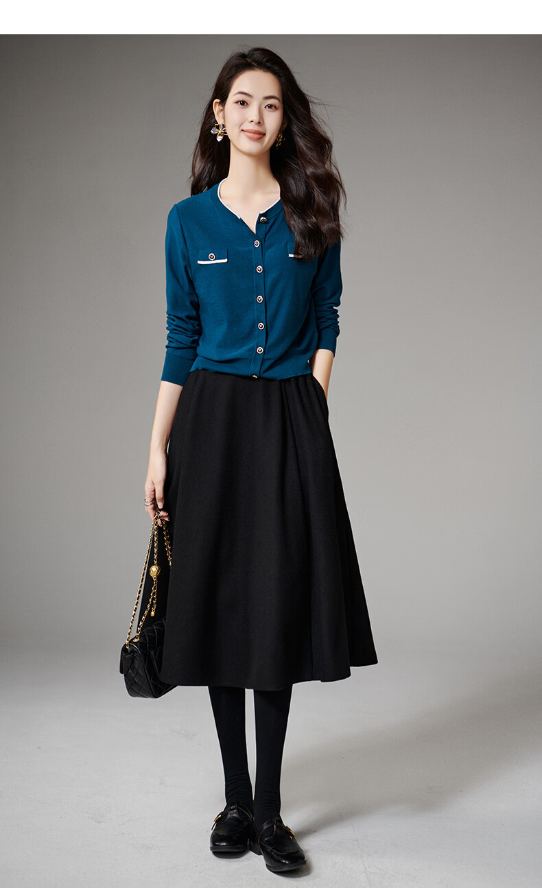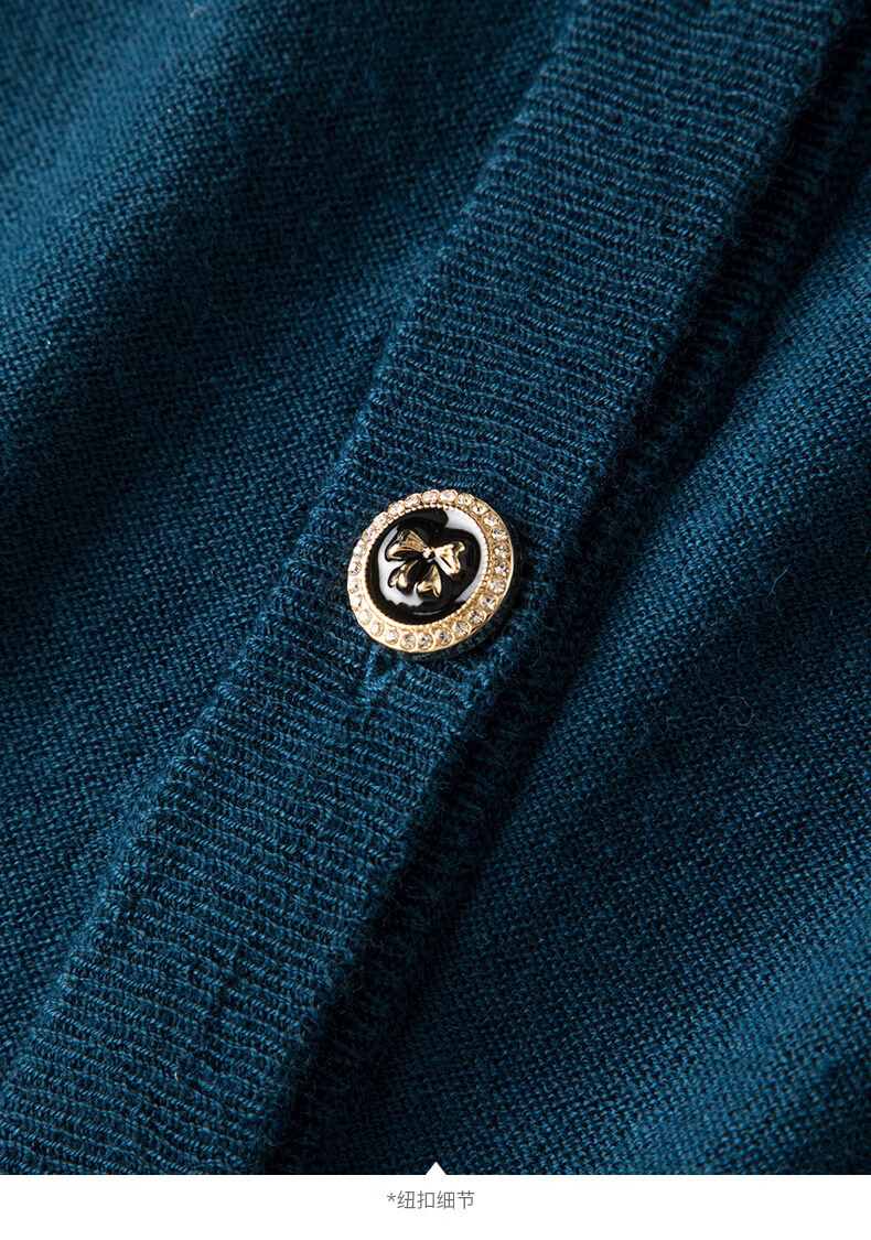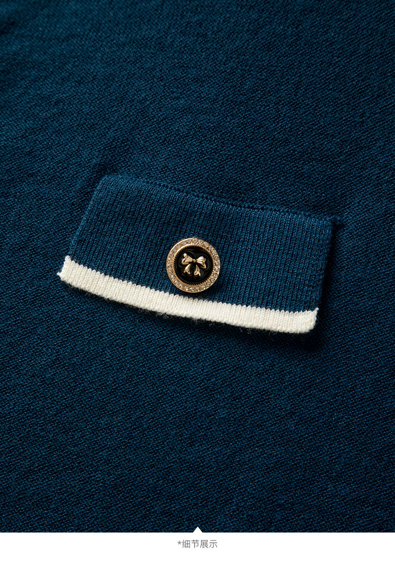 晚白【断码清仓】气质含绵羊毛上衣经典百搭利落修身短针织开衫女 深蓝色 S