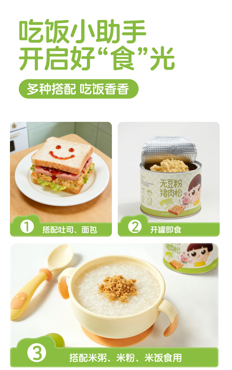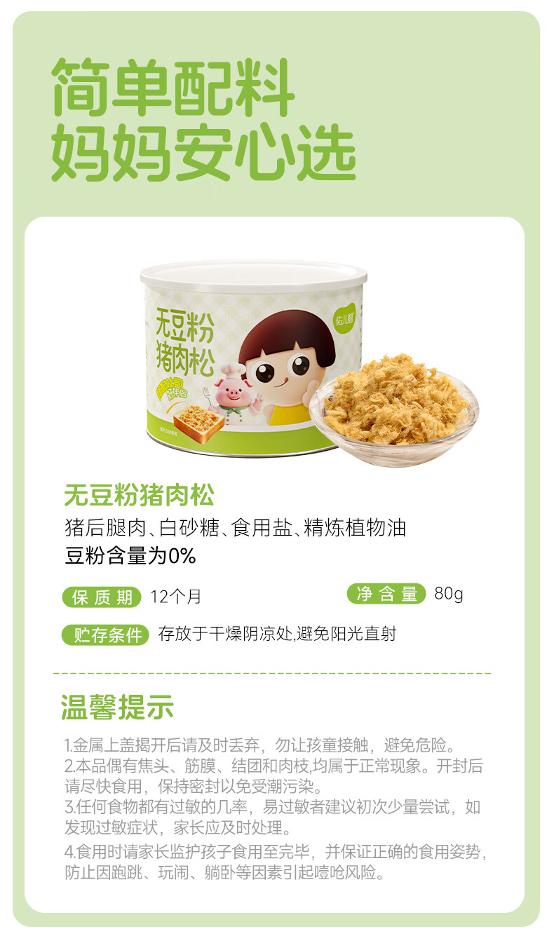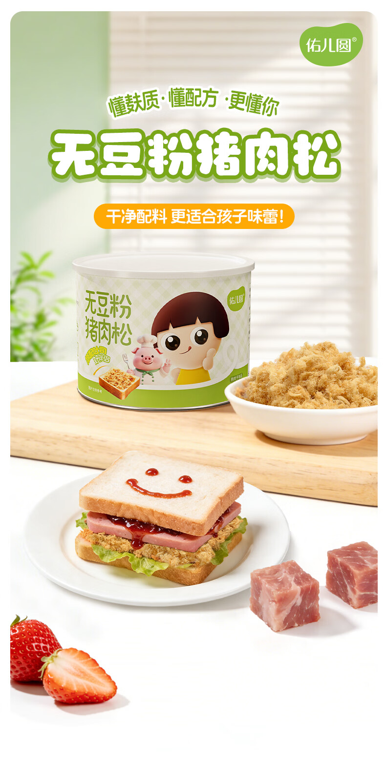 佑儿圆无豆粉猪肉松80g调味拌饭料开罐即食儿童早餐搭配吐司米粥 无豆粉猪肉松