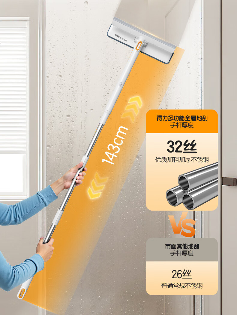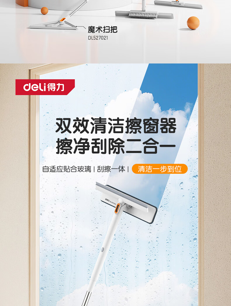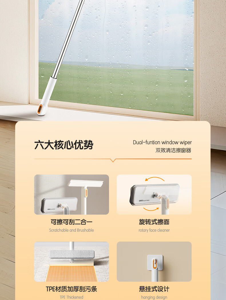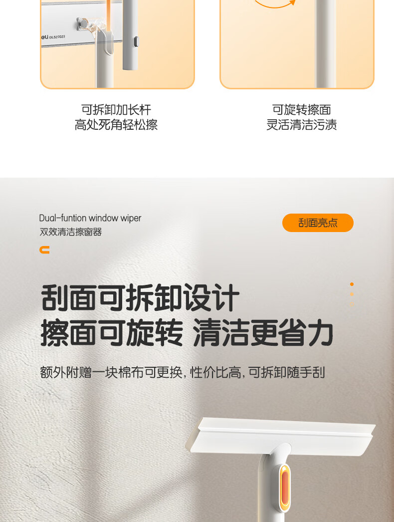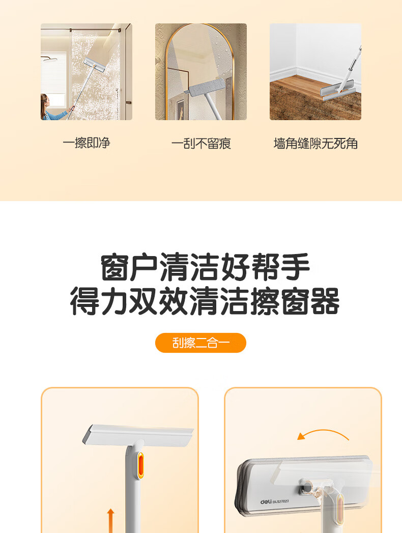 得力(deli)软硅胶玻璃窗刮 带2布可拆卸刮擦两用窗户清洁擦玻璃神器卫浴水刮