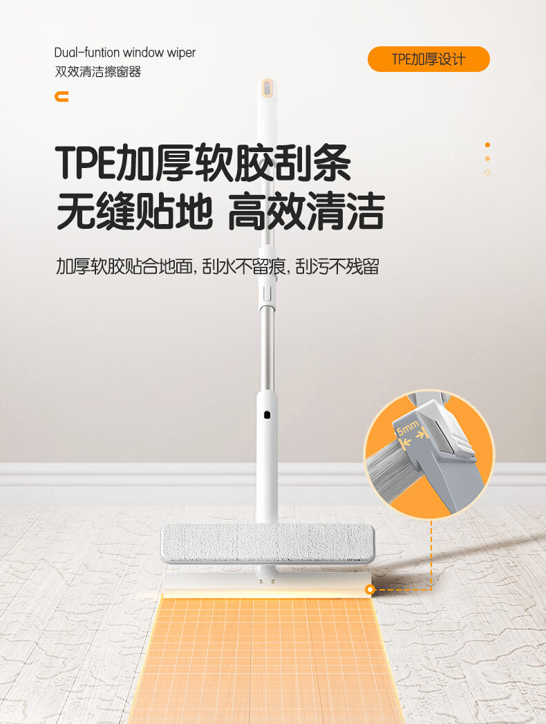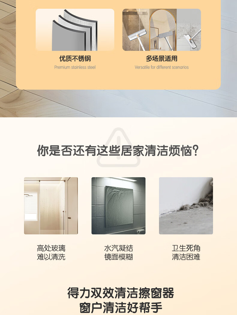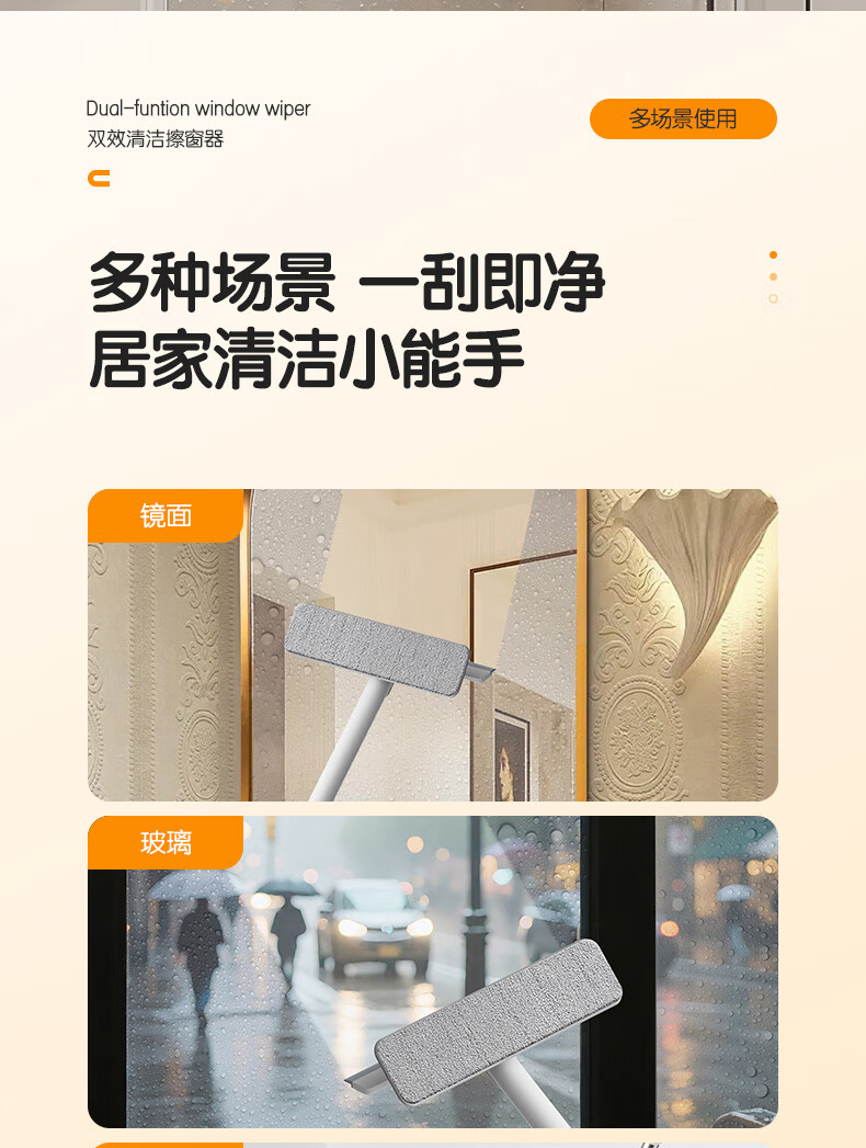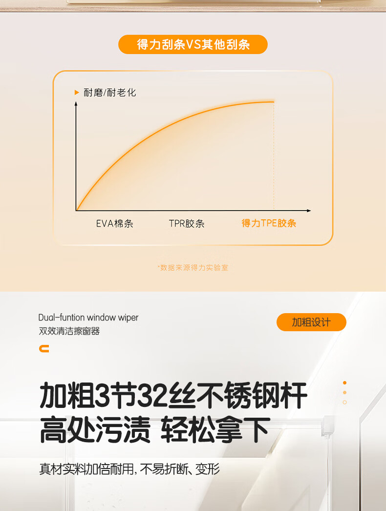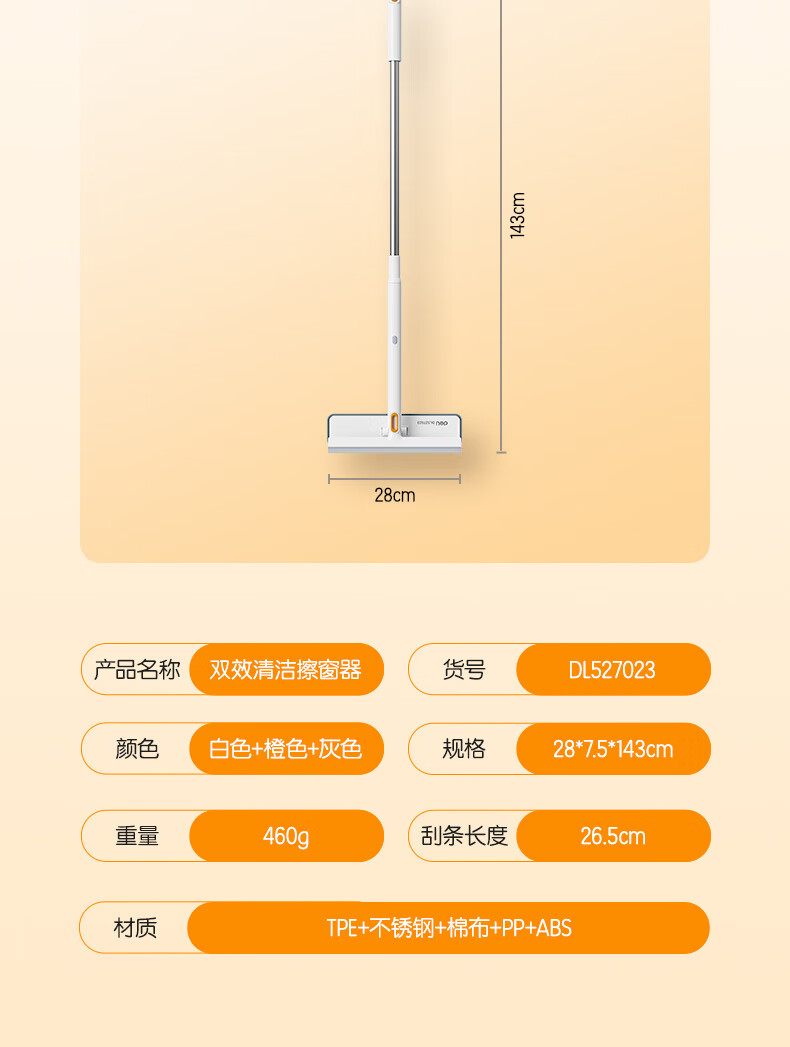 得力(deli)软硅胶玻璃窗刮 带2布可拆卸刮擦两用窗户清洁擦玻璃神器卫浴水刮