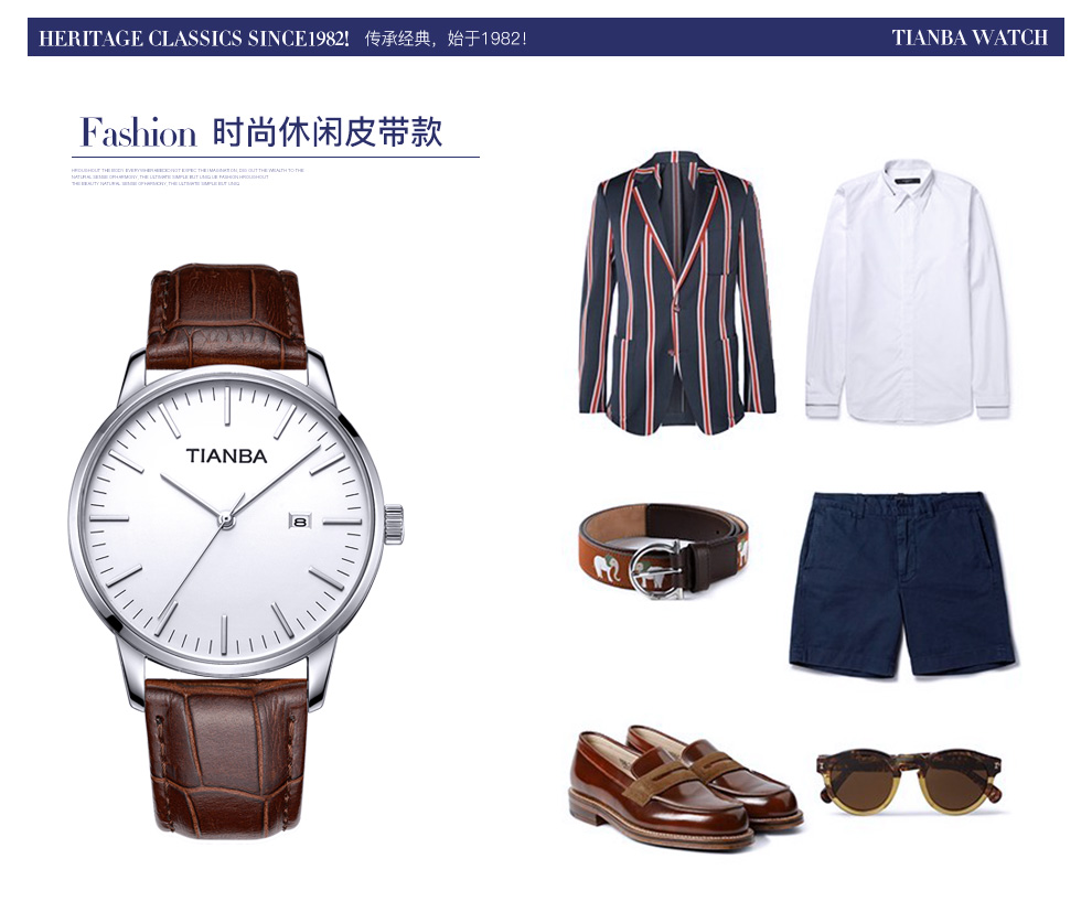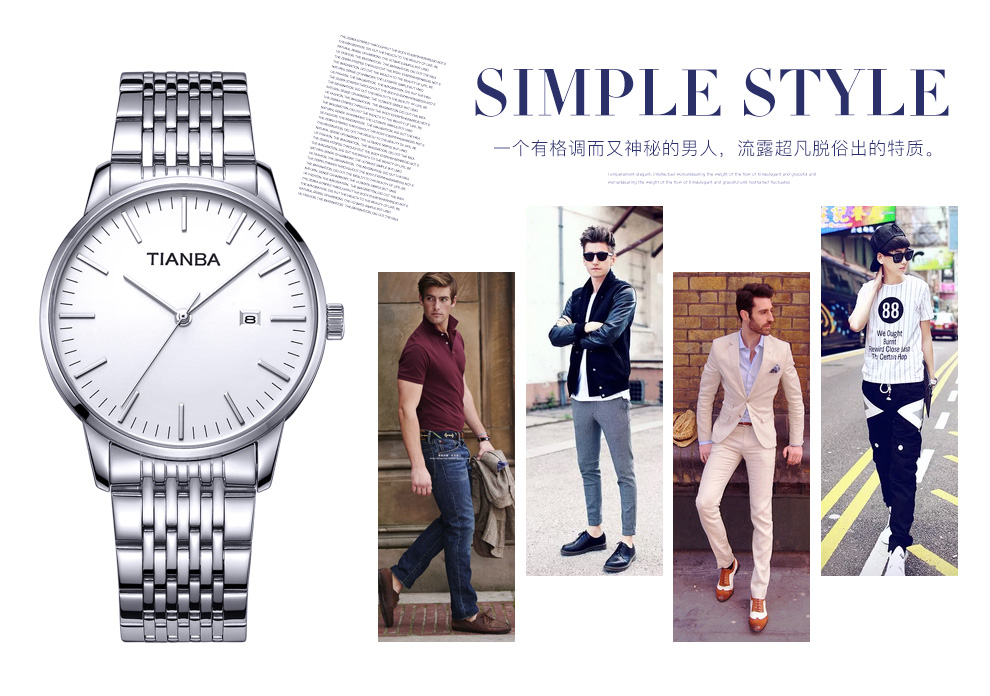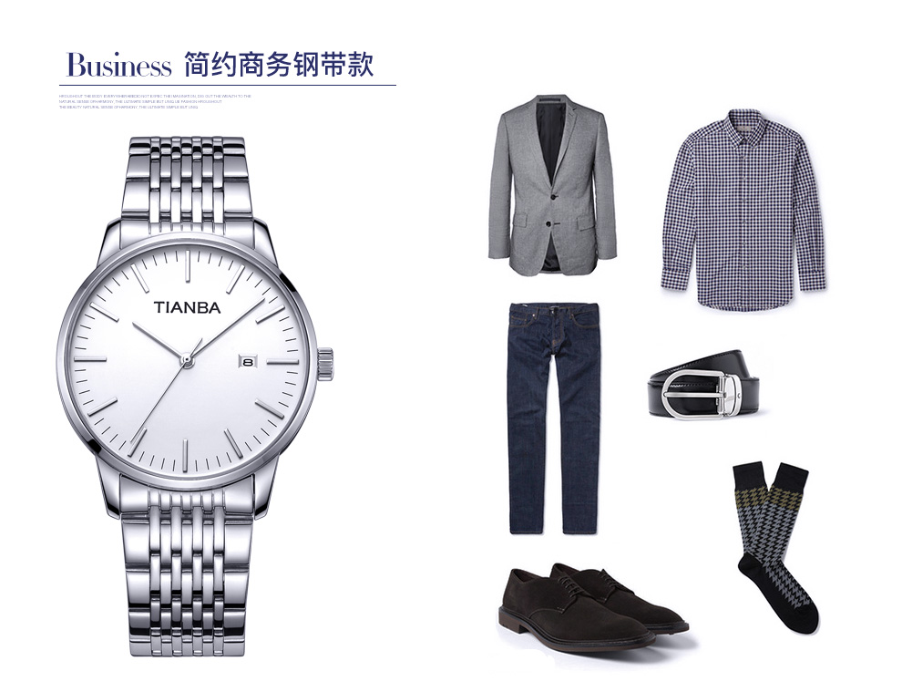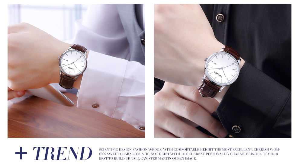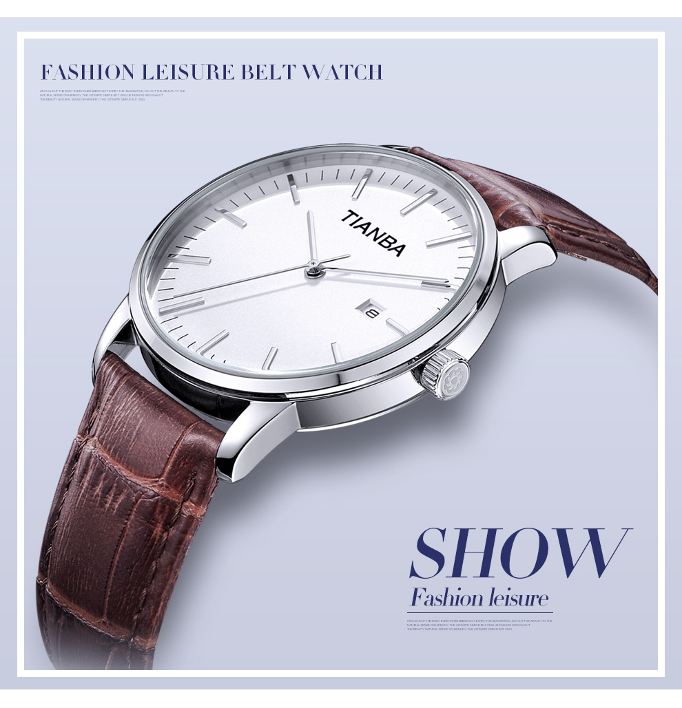 天霸手表男简约商务超薄男表钢带皮带石英表日历情侣手表3037 白盘钢带(男款)