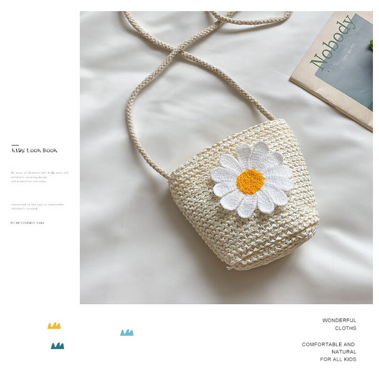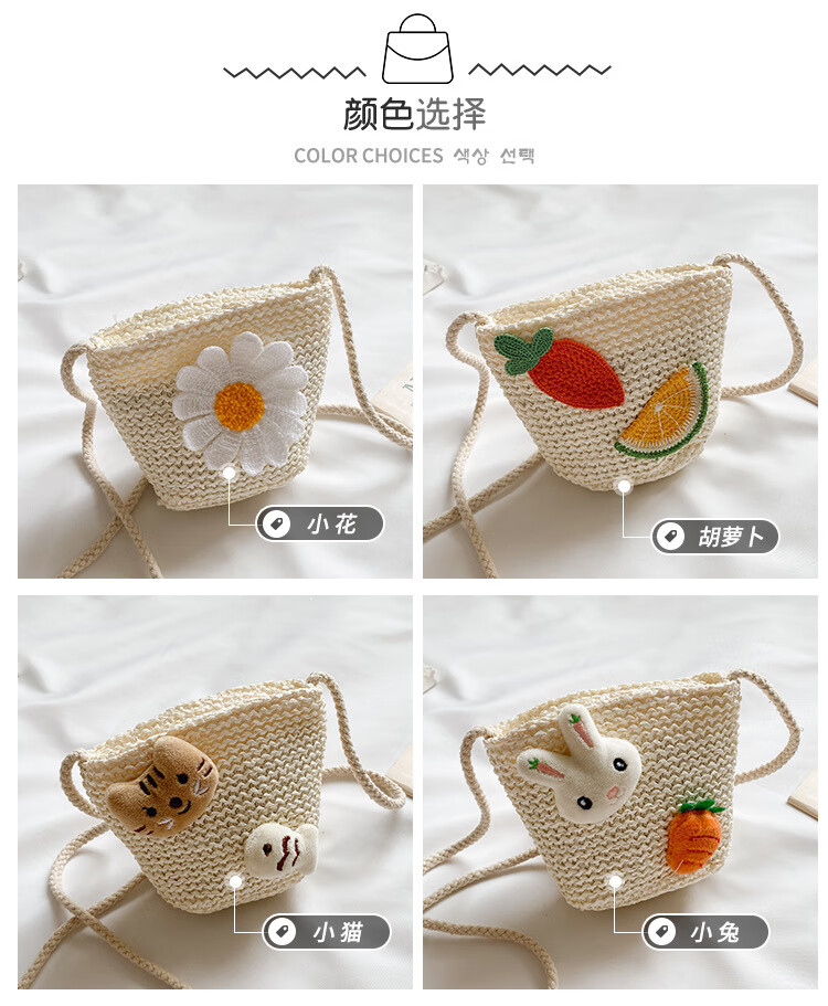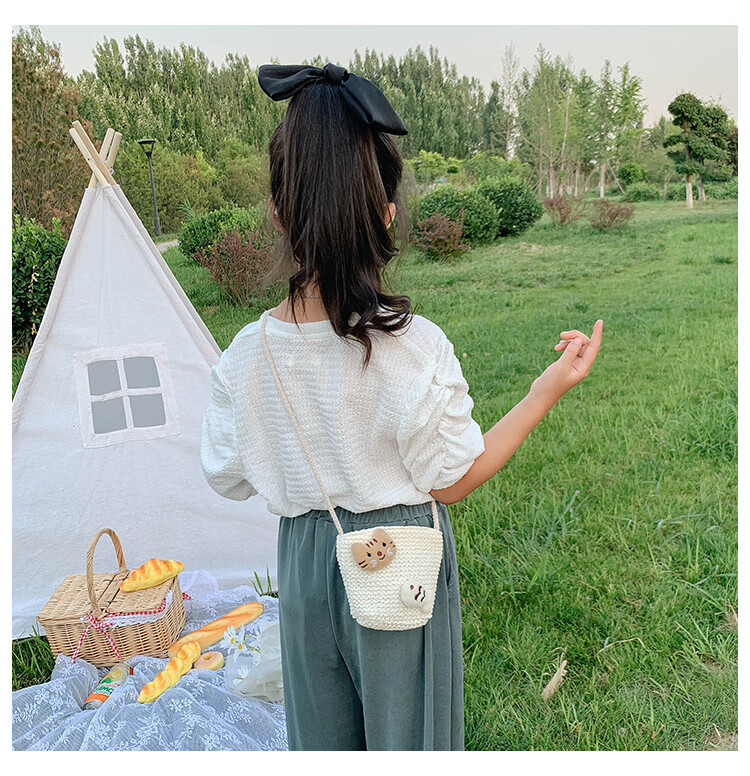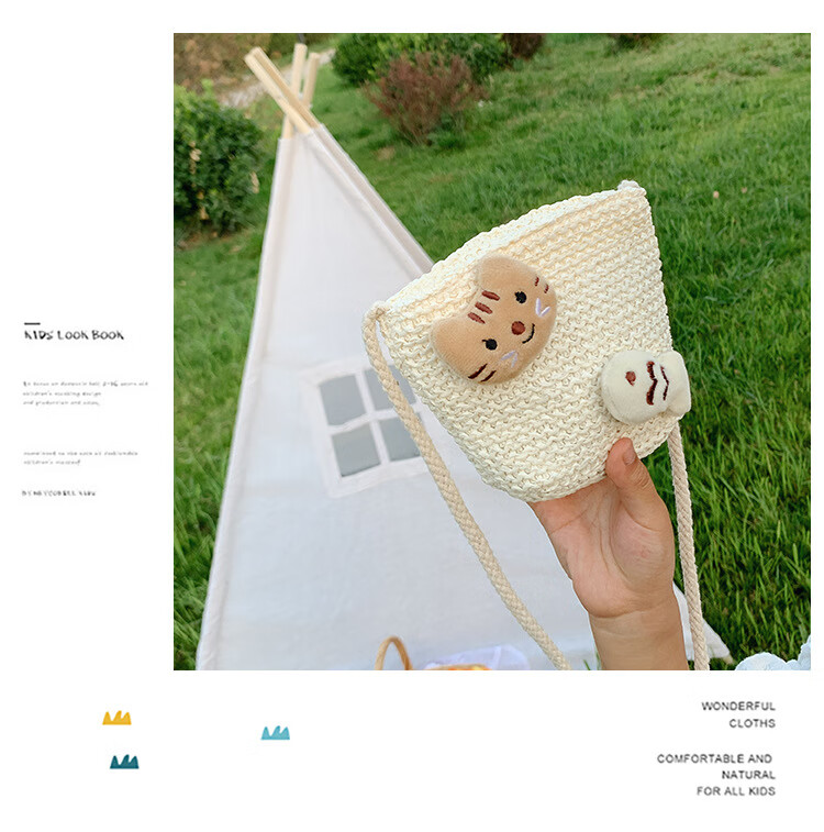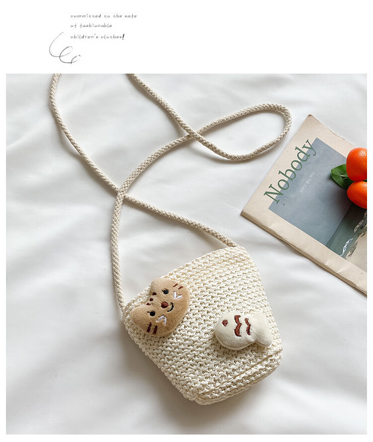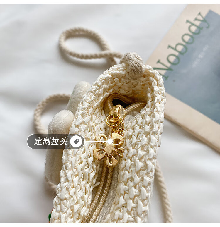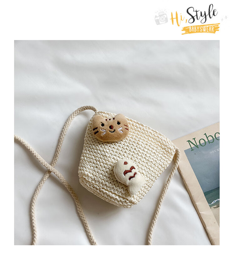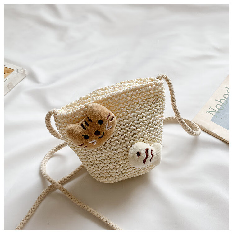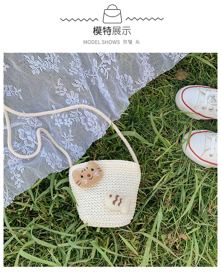 【现货现发】儿童包包草编包花朵度假包女童海边沙滩时尚潮斜挎包 小猫