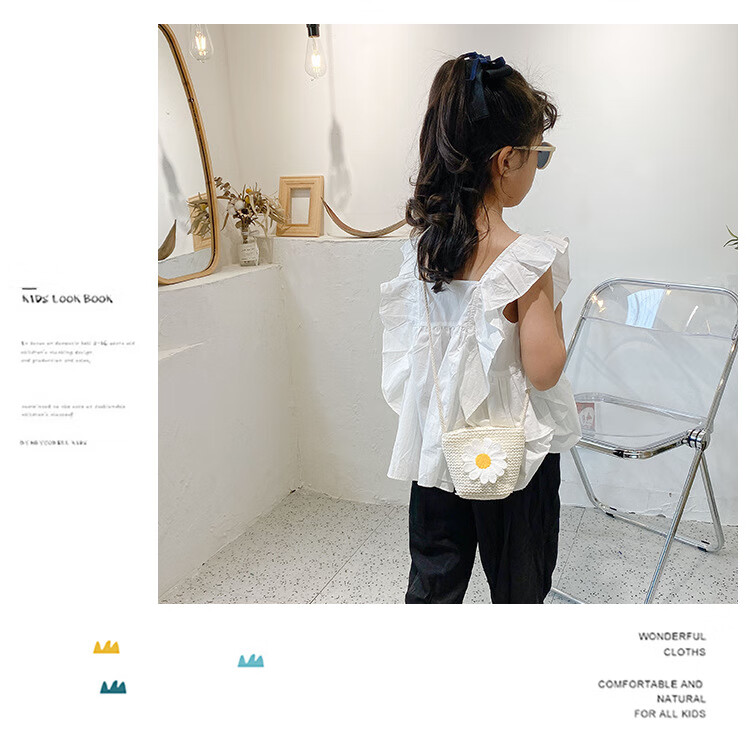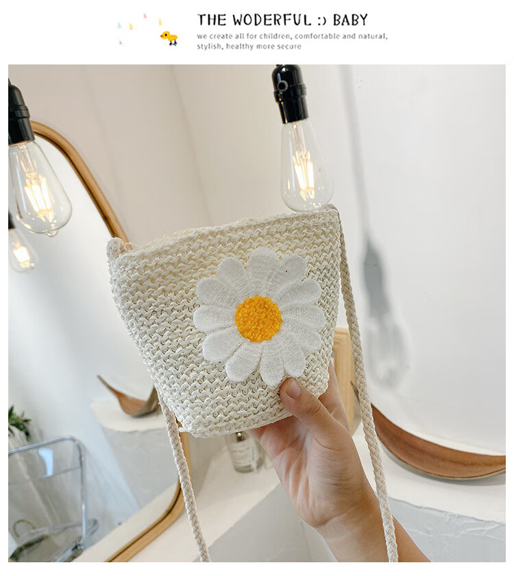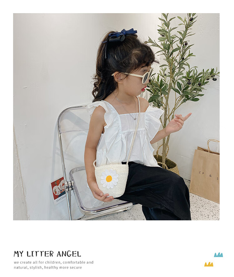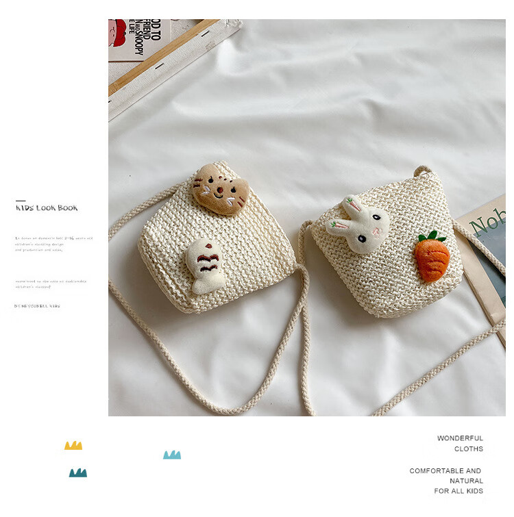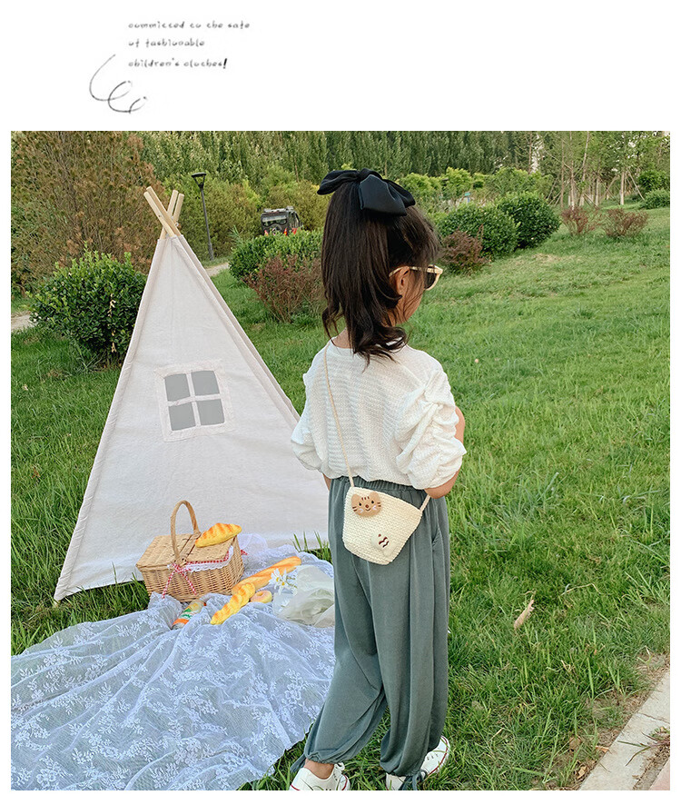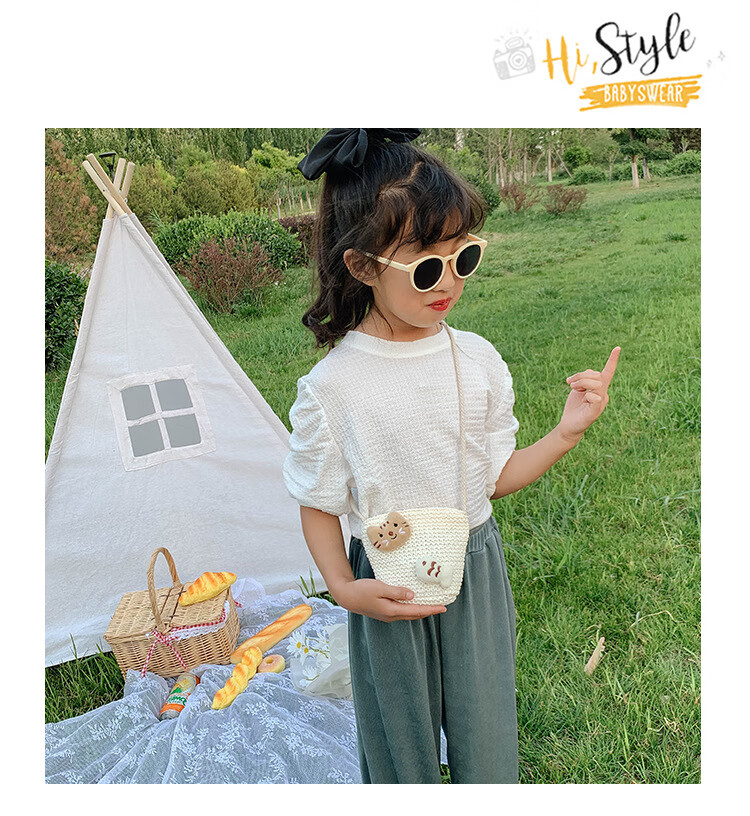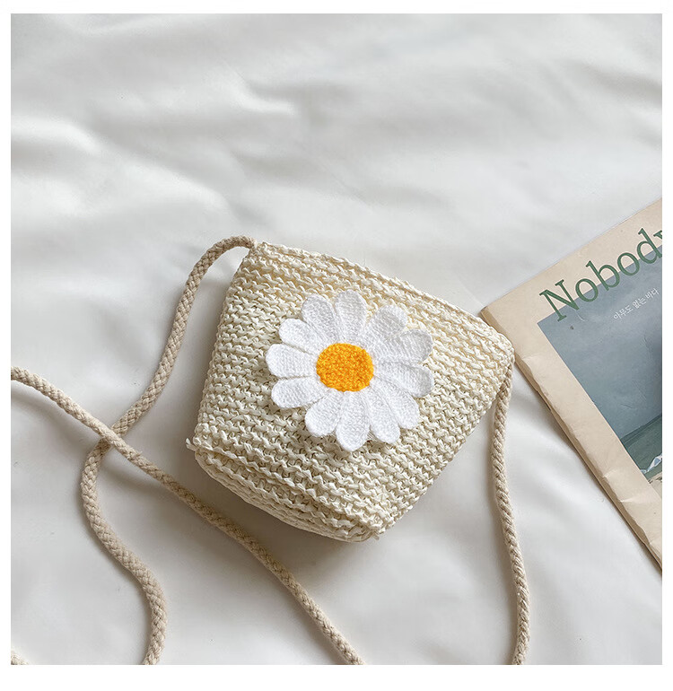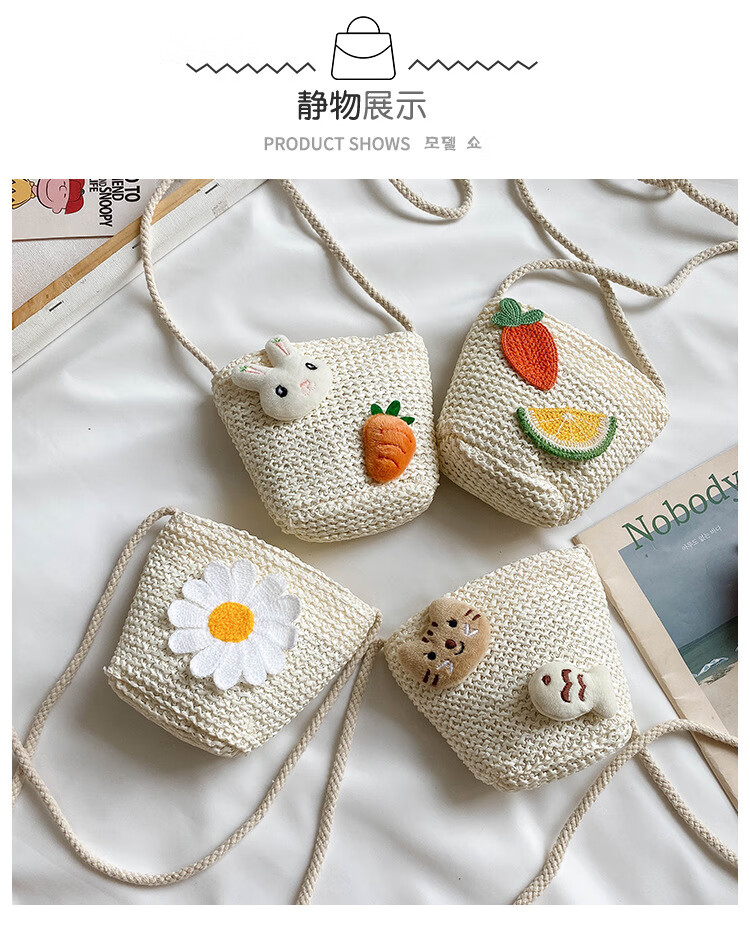 【现货现发】儿童包包草编包花朵度假包女童海边沙滩时尚潮斜挎包 小猫