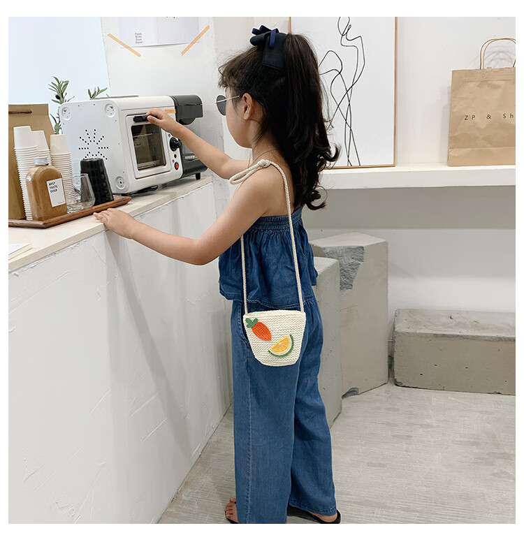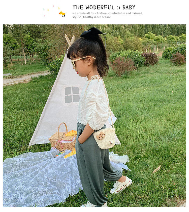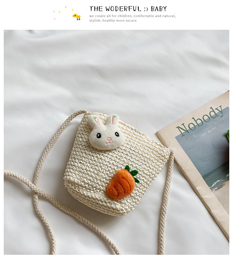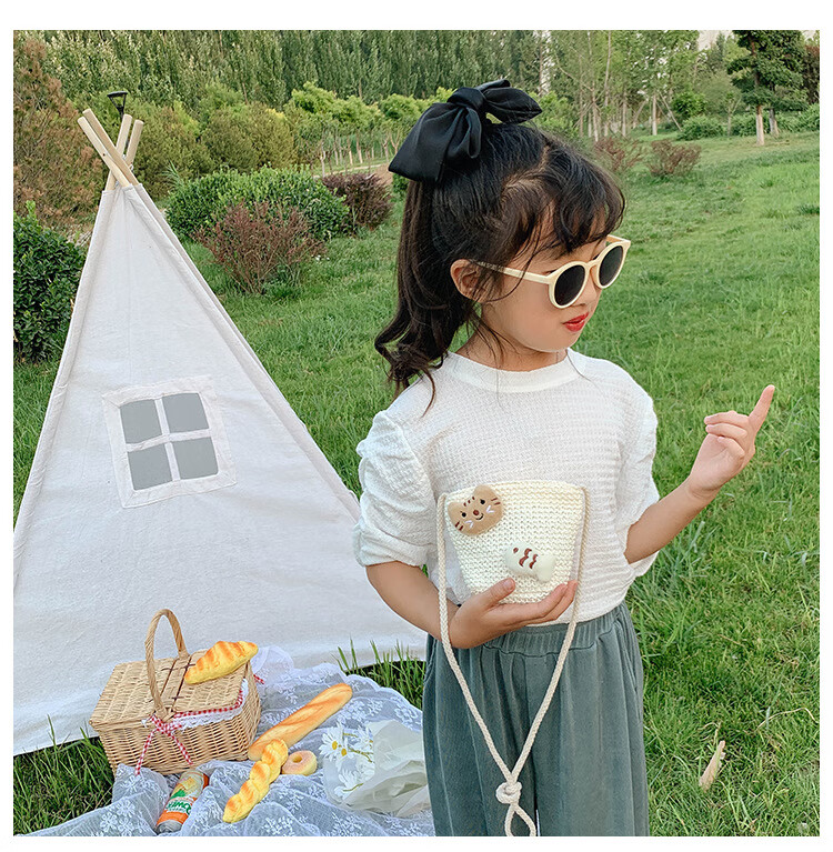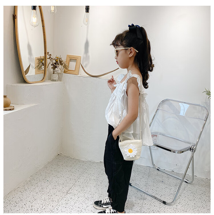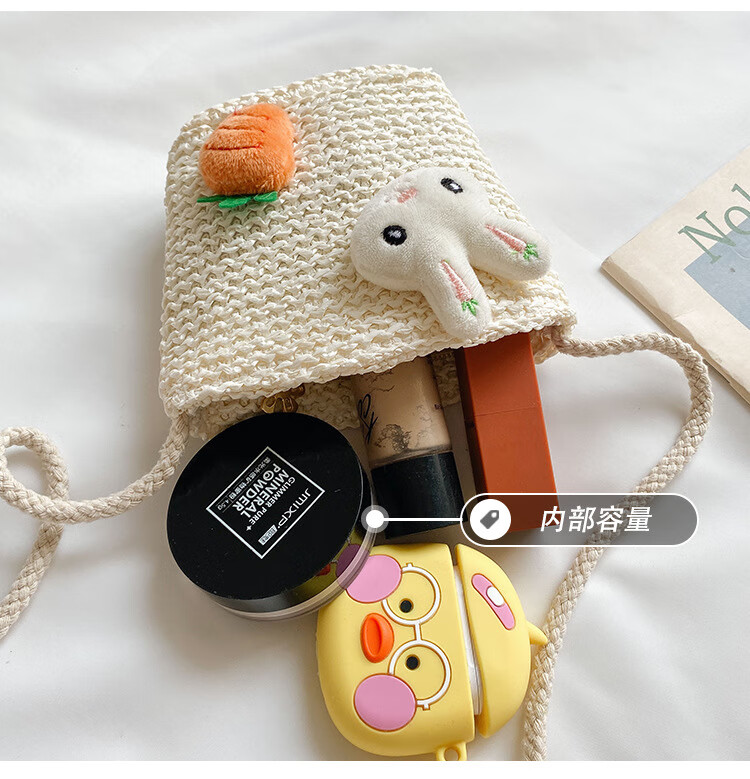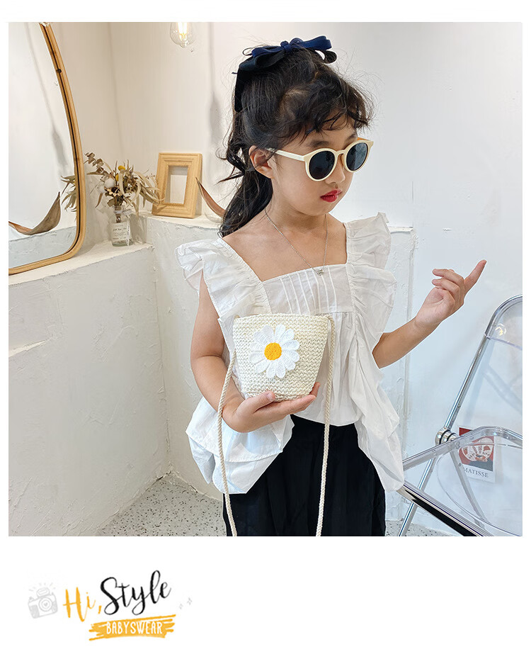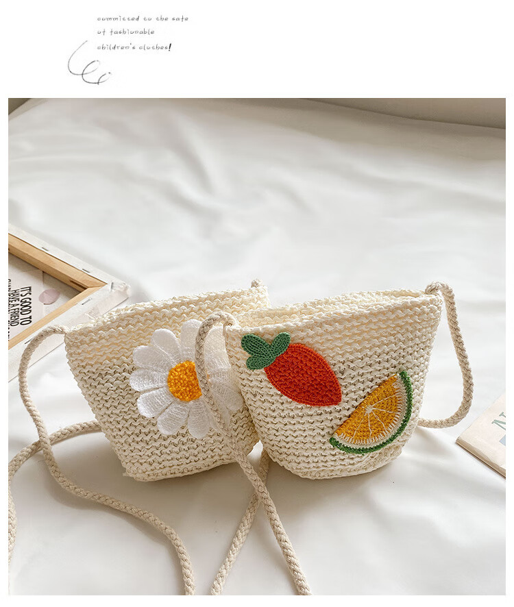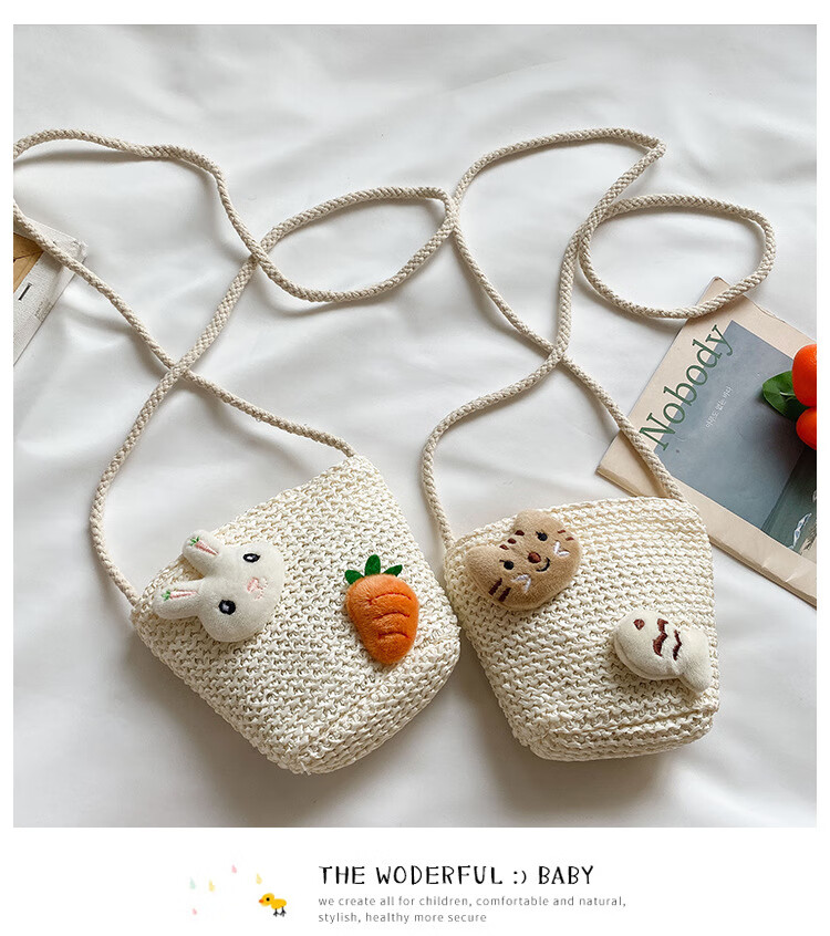 【现货现发】儿童包包草编包花朵度假包女童海边沙滩时尚潮斜挎包 小猫