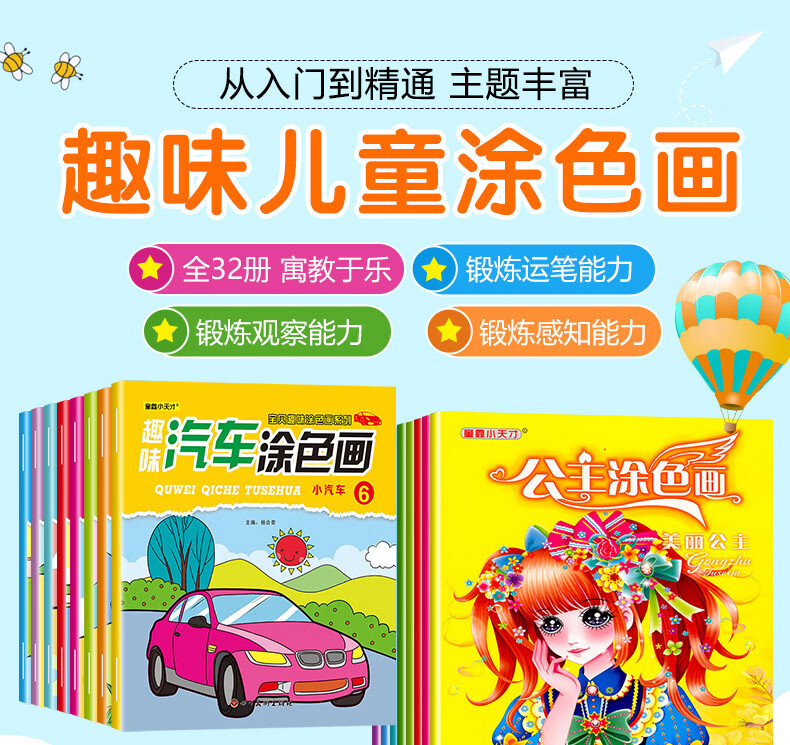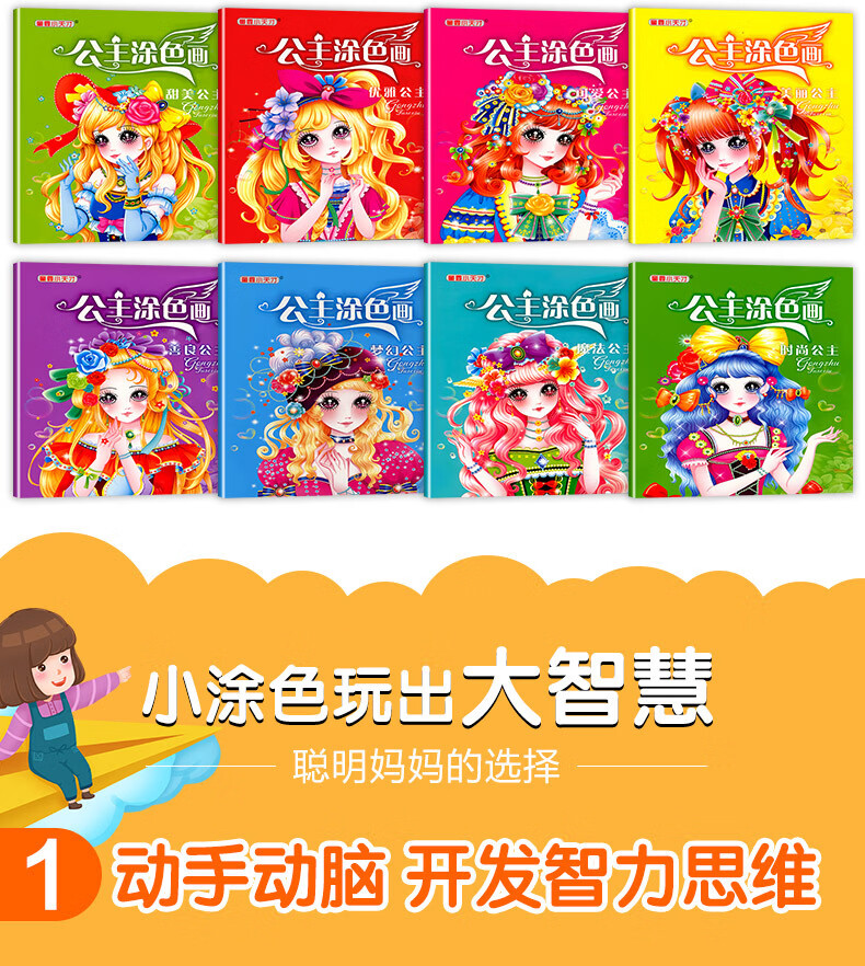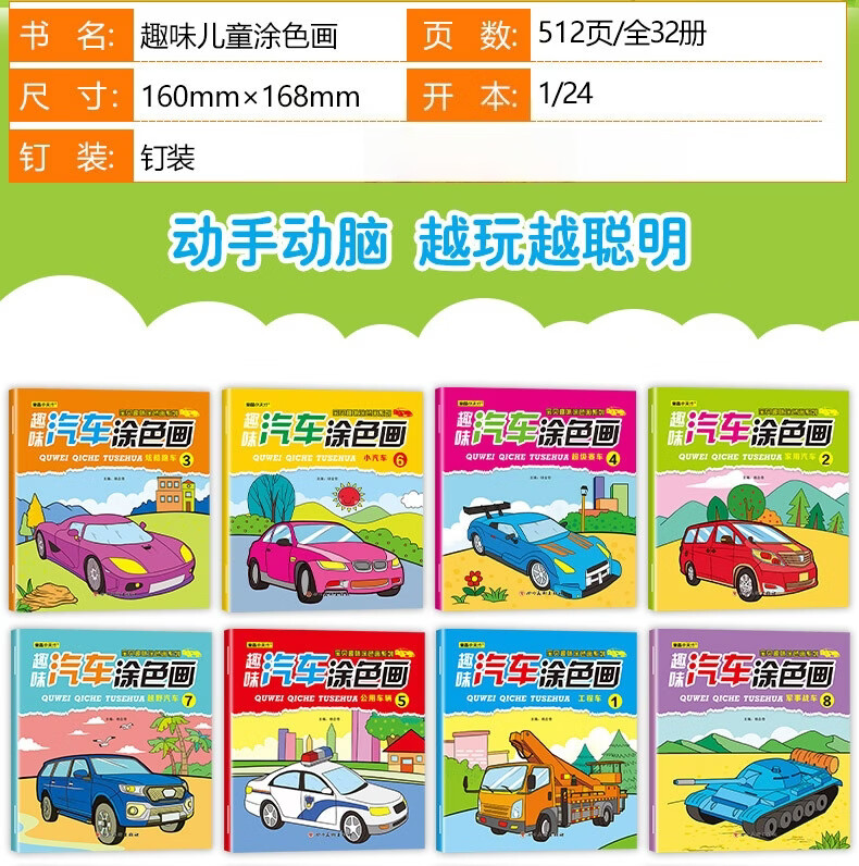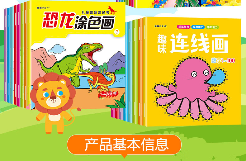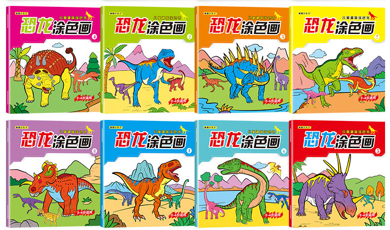 涂色画本汽车公主恐龙趣味连线儿童绘画填色绘本幼儿园宝宝专用小孩启蒙涂鸦画画套装画画本 8本恐龙涂色画(16页/本)