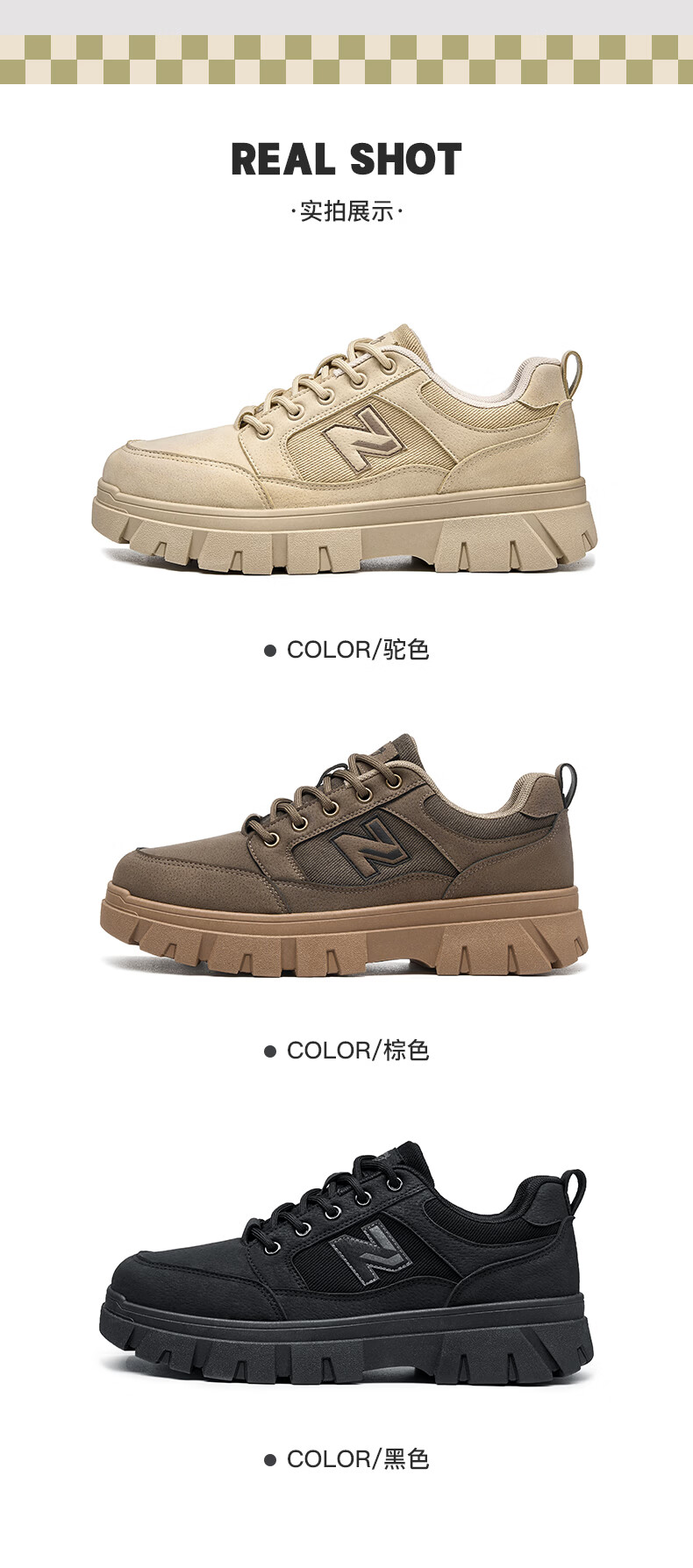 纽巴仑男鞋登山鞋春秋低帮户外鞋徒步登山防滑减震耐磨复古工装潮鞋 驼色 37