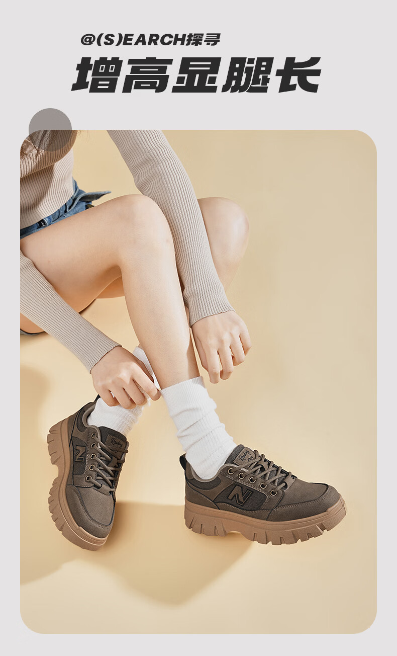 星期六加绒厚底板鞋女鞋2025新款冬季增高小白休闲鞋保暖运动鞋女 香槟色 【加绒保暖】 36
