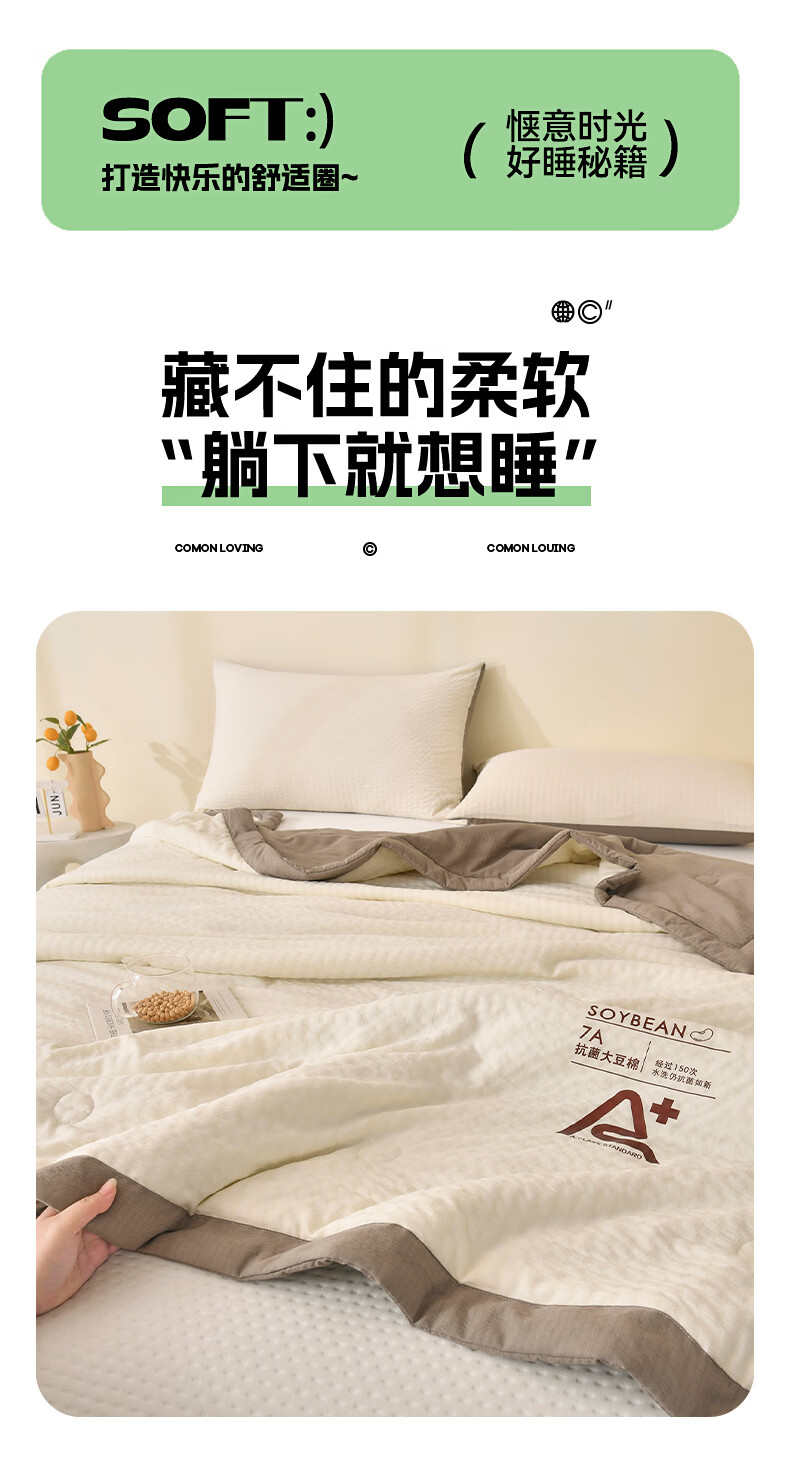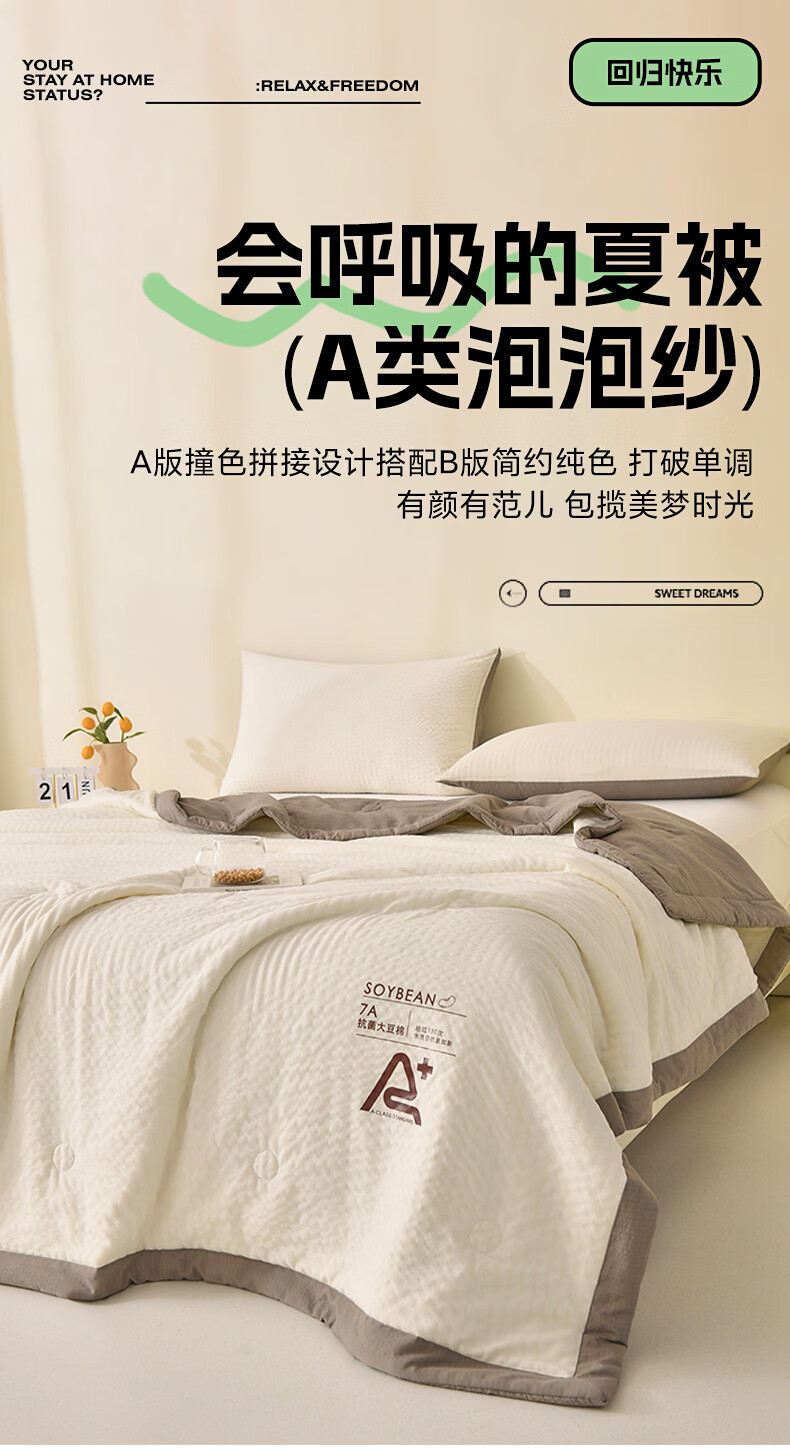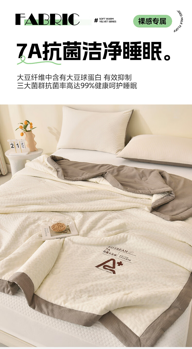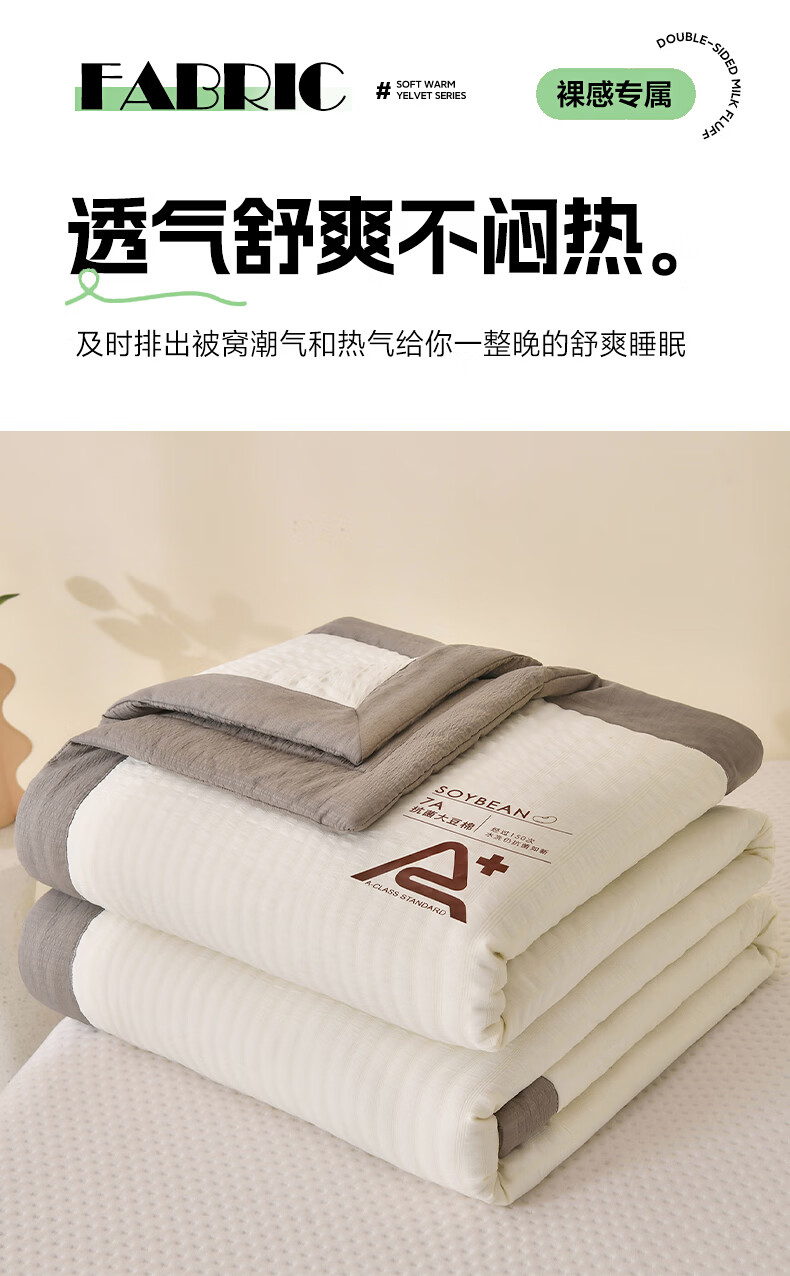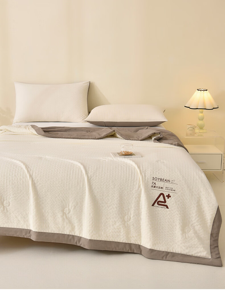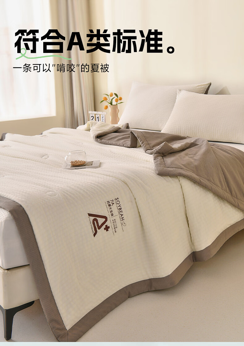 恒源祥空调被 夏季A类大豆纤维夏凉被学生宿舍可机洗透气柔软薄被子 大豆夏被【米黄+水绿】 100*150cm 【夏被单件】