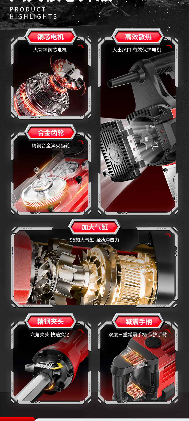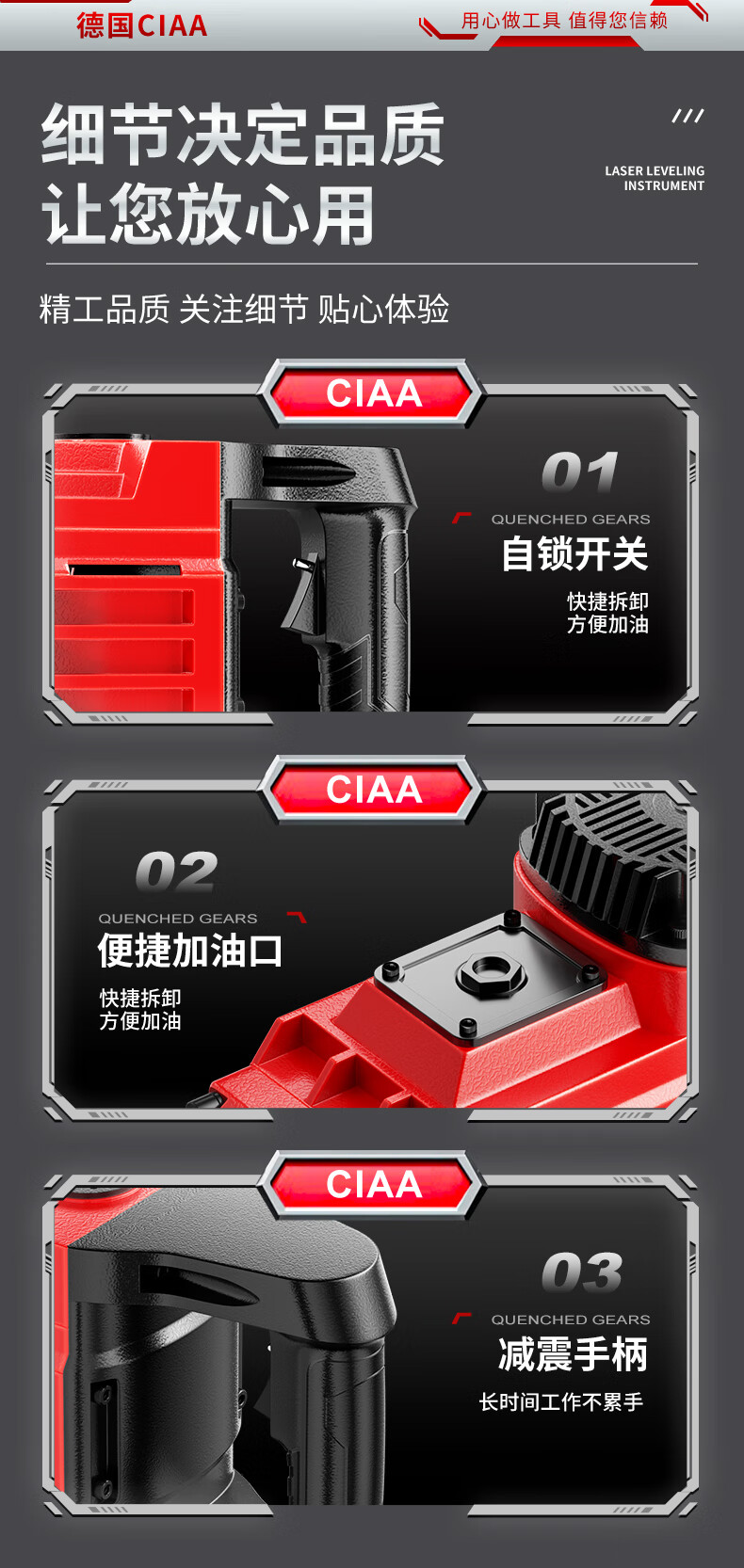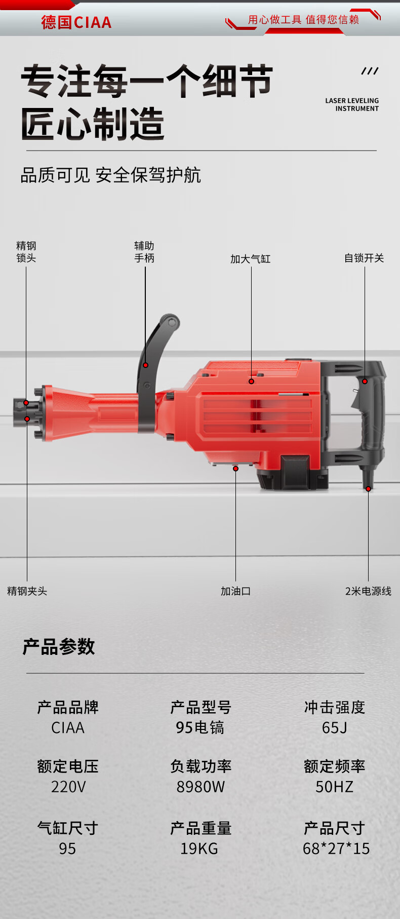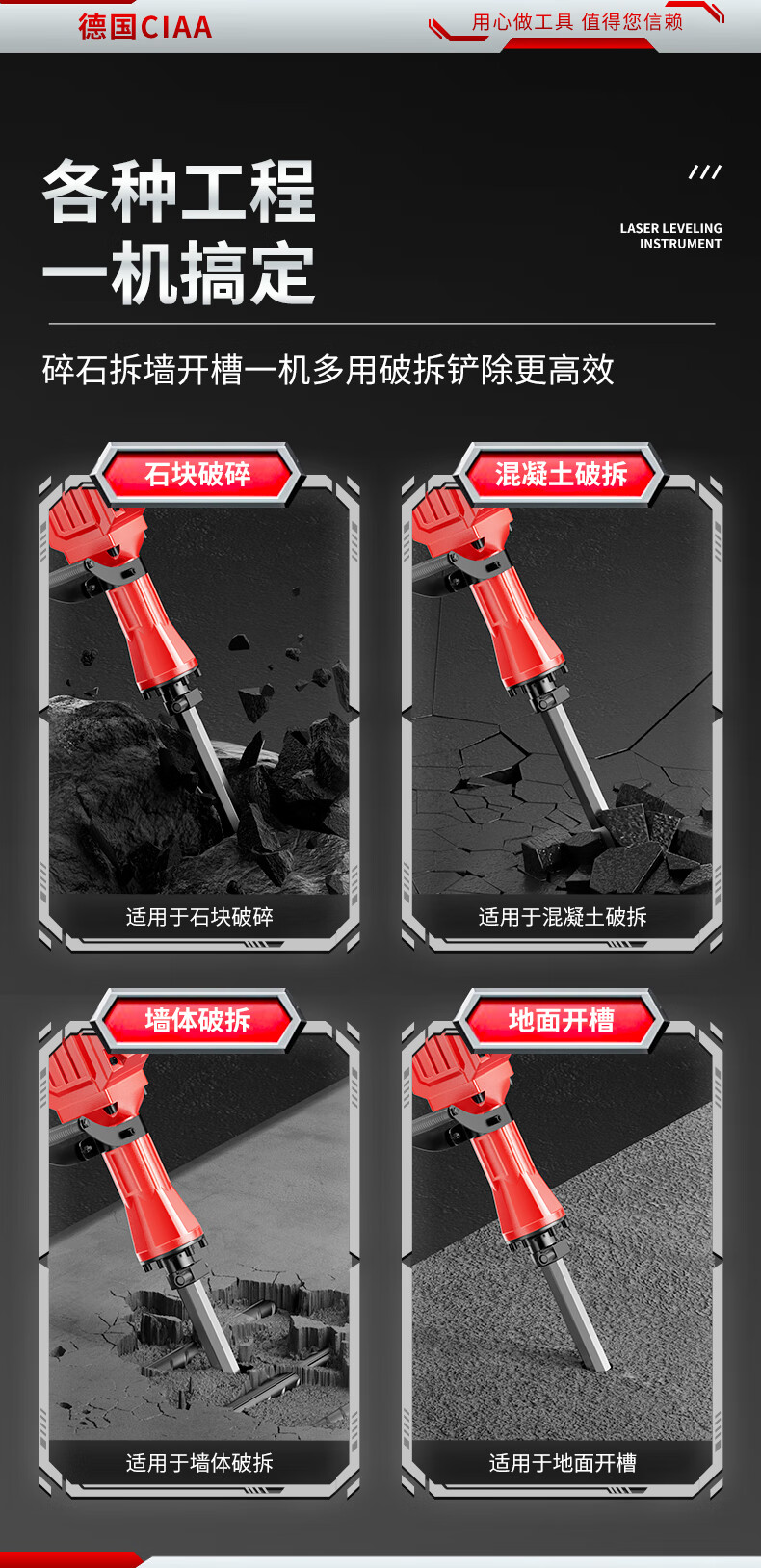 CIAA德国电镐大功率重型工具专业级冲击钻95工程拆墙工业级重型混凝土 重载95型电镐【负载4600W】 超大负载8980W