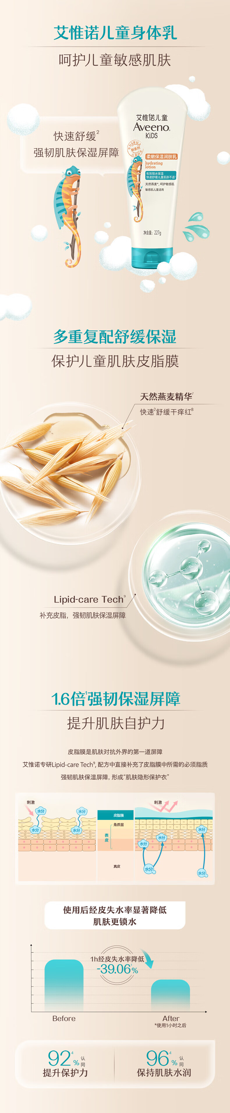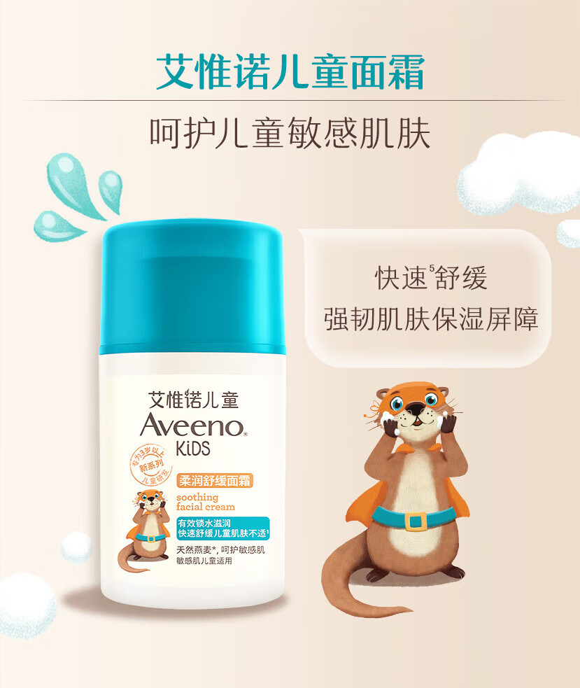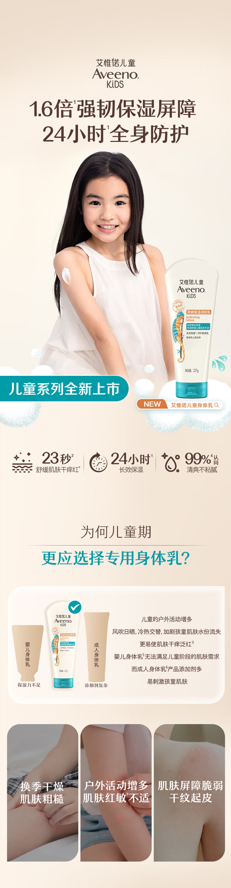 艾惟诺儿童面霜 儿童润肤乳 青少年燕麦滋润补水保湿身体乳 舒缓干痒 儿童润肤乳227g
