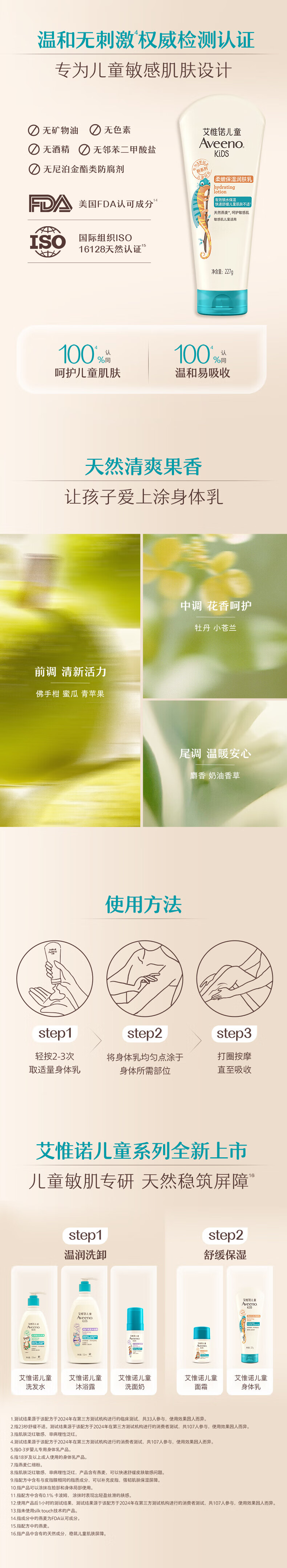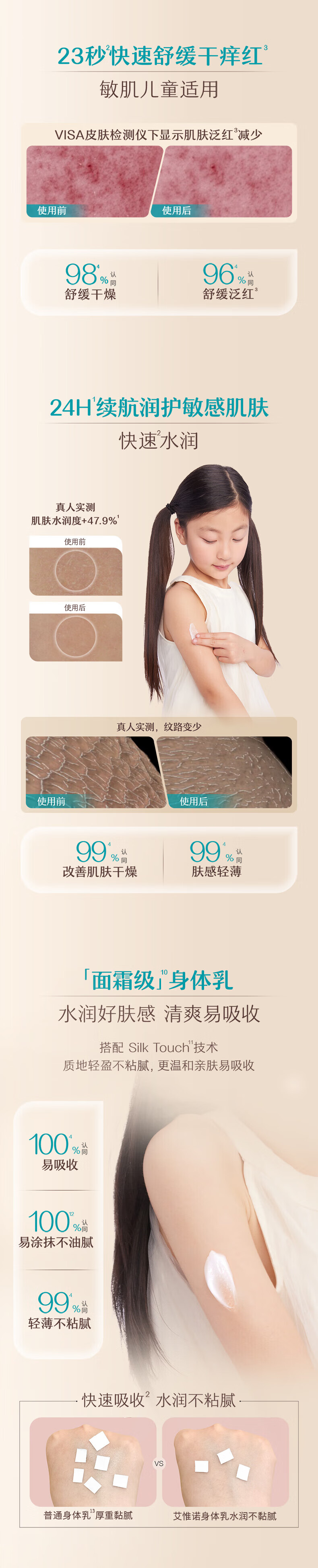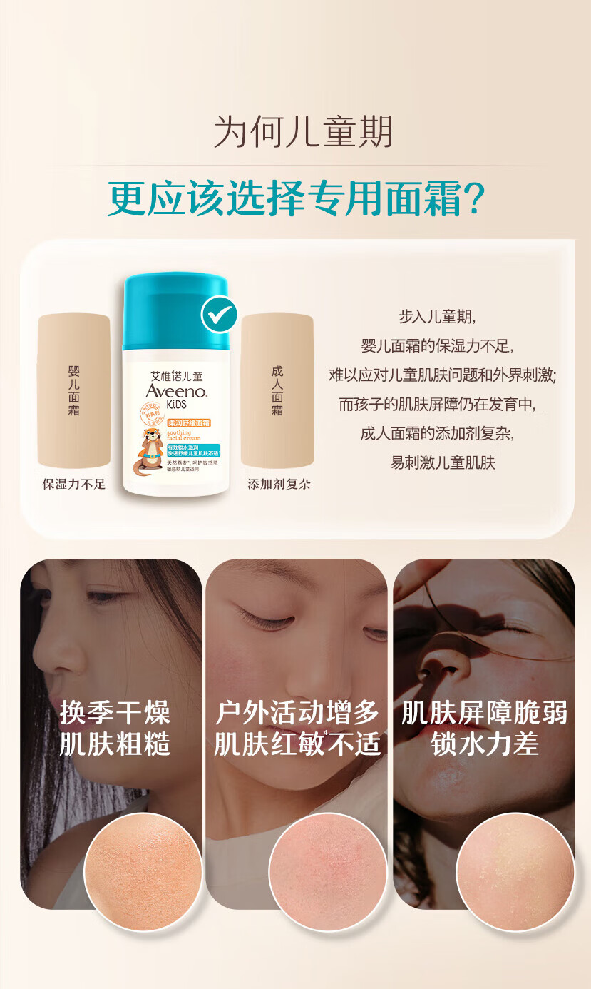 艾惟诺儿童面霜 儿童润肤乳 青少年燕麦滋润补水保湿身体乳 舒缓干痒 儿童润肤乳227g