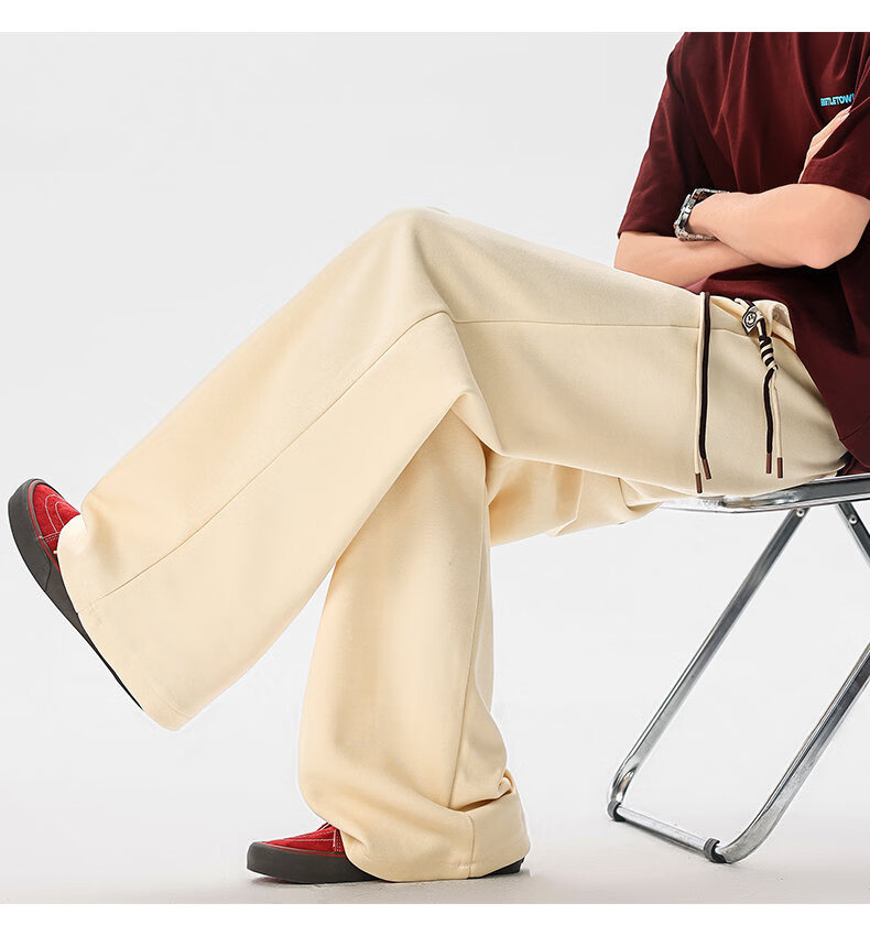 NEW OR MODE美式cleanfit白色抽绳休闲裤男潮牌新款宽松垂感百搭运动直筒长裤 白色【高品质】 M 【建议90-110斤】