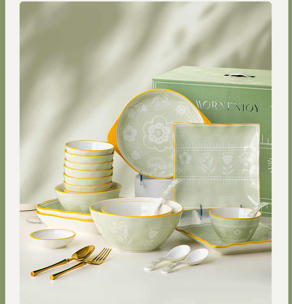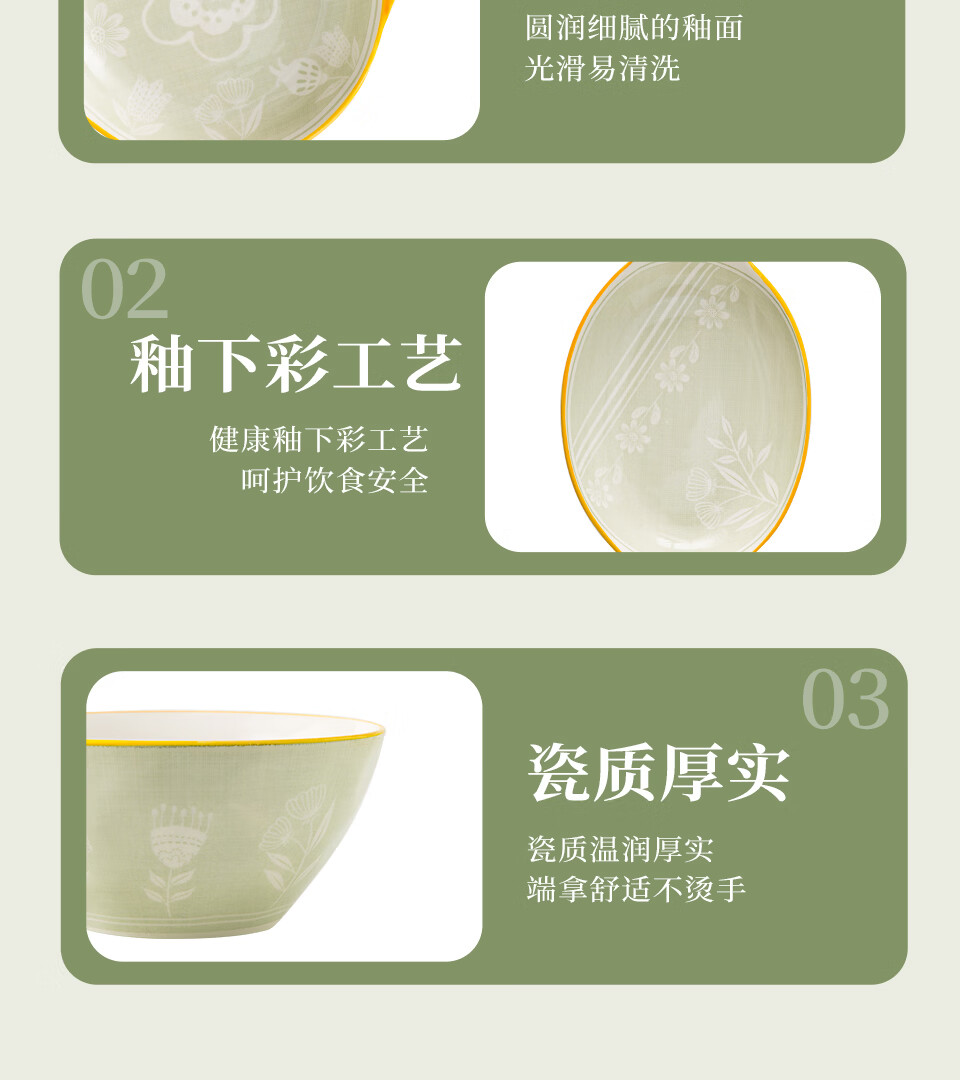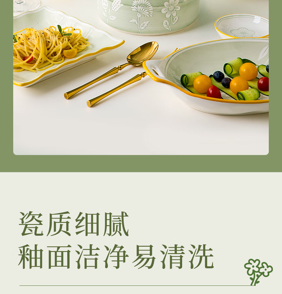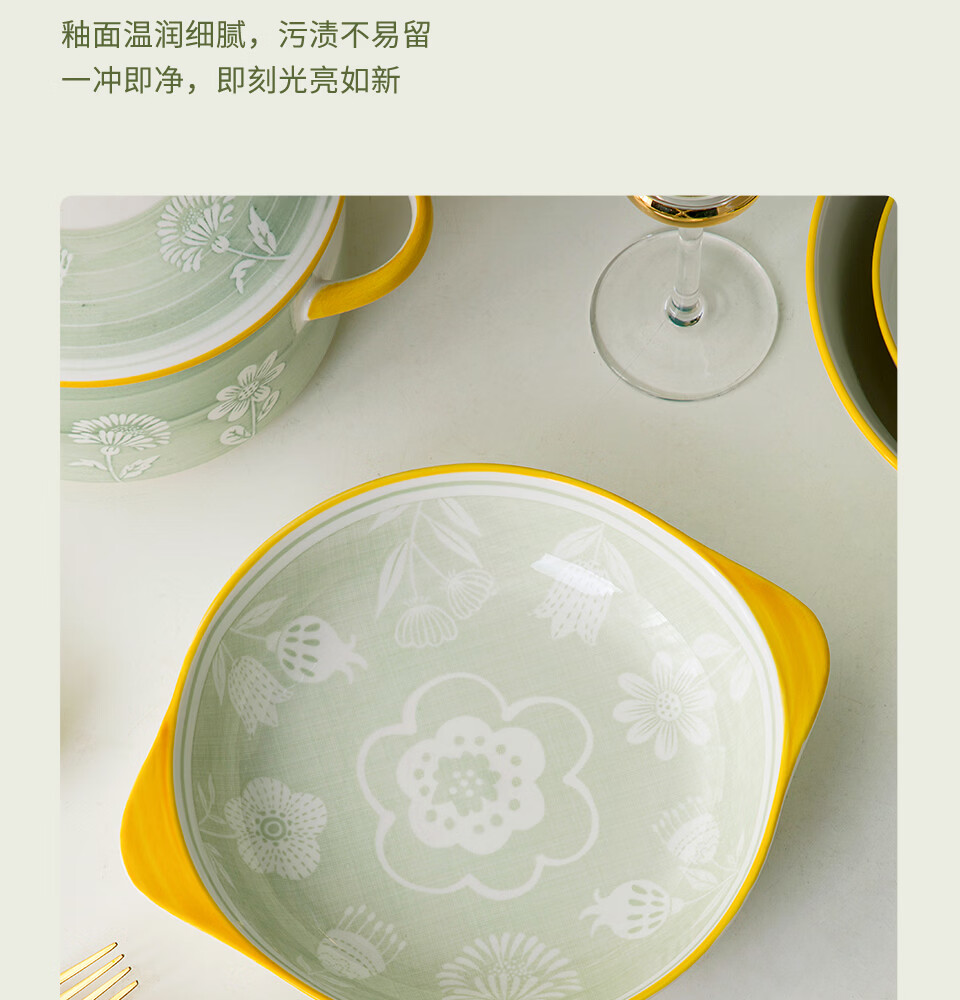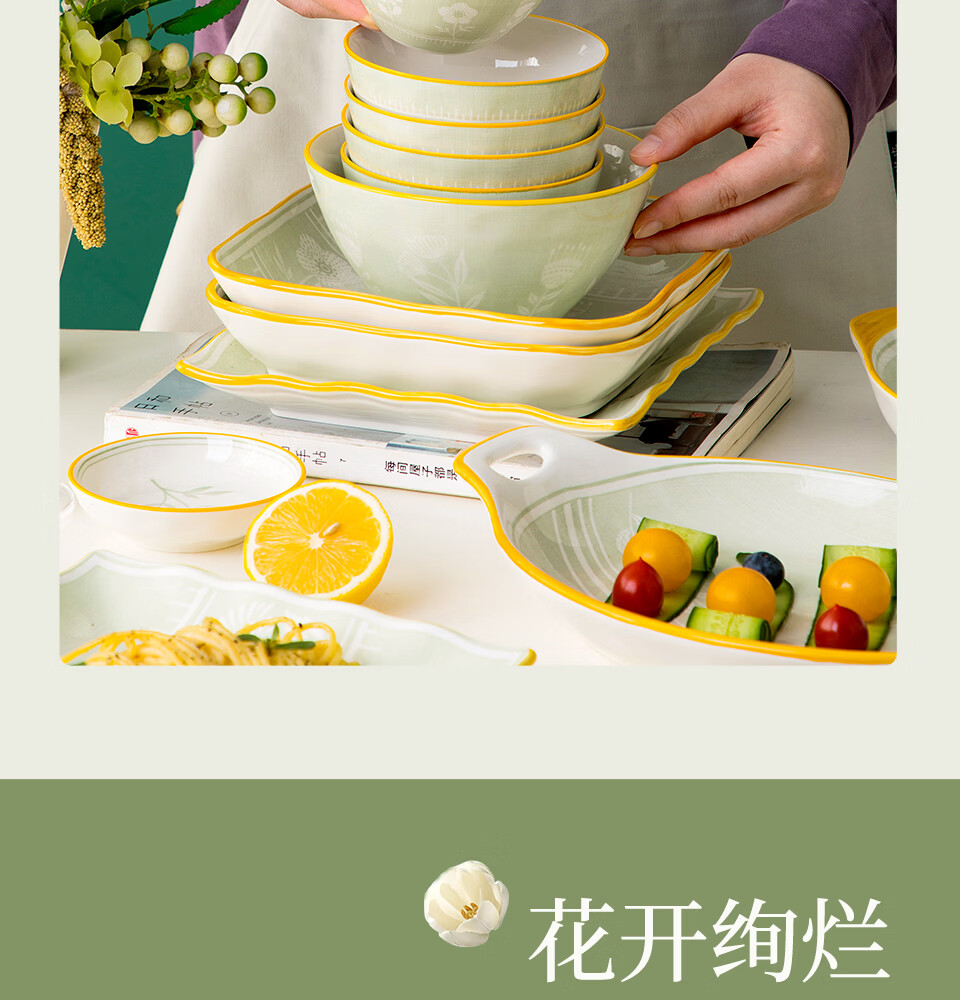 精缔陶瓷JINGDI2026新款釉下彩碗碟套装家用陶瓷高颜值简约碗碟套装乔迁礼物餐具 高温釉下彩】6人食配大汤碗47件套