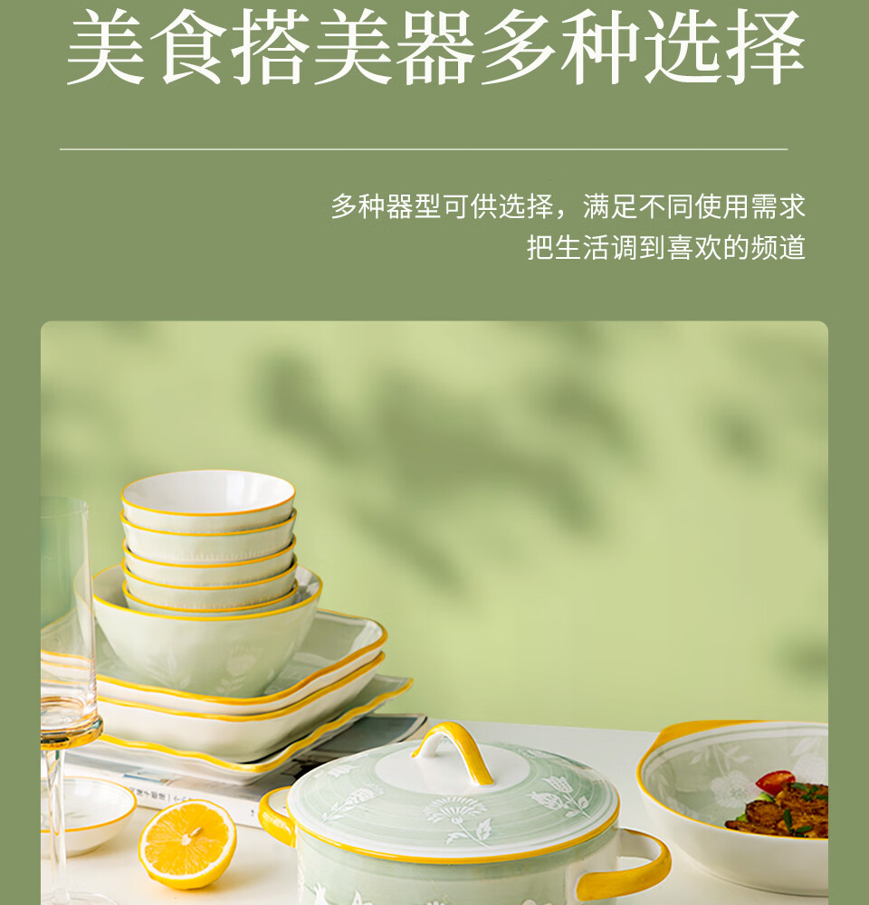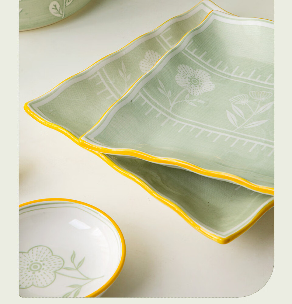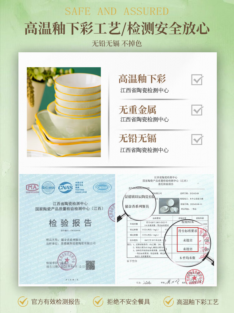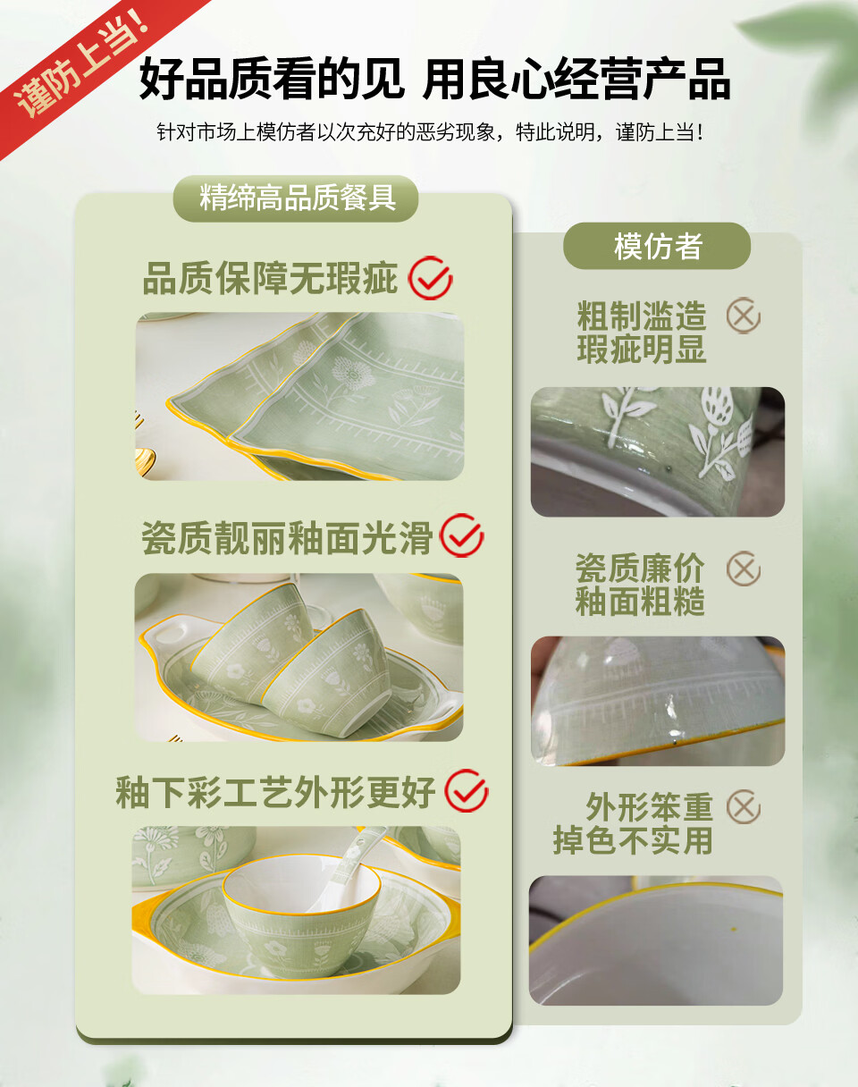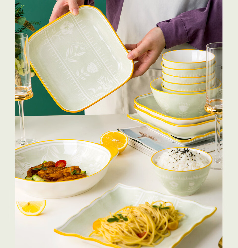 精缔陶瓷JINGDI2026新款釉下彩碗碟套装家用陶瓷高颜值简约碗碟套装乔迁礼物餐具 高温釉下彩】6人食配大汤碗47件套