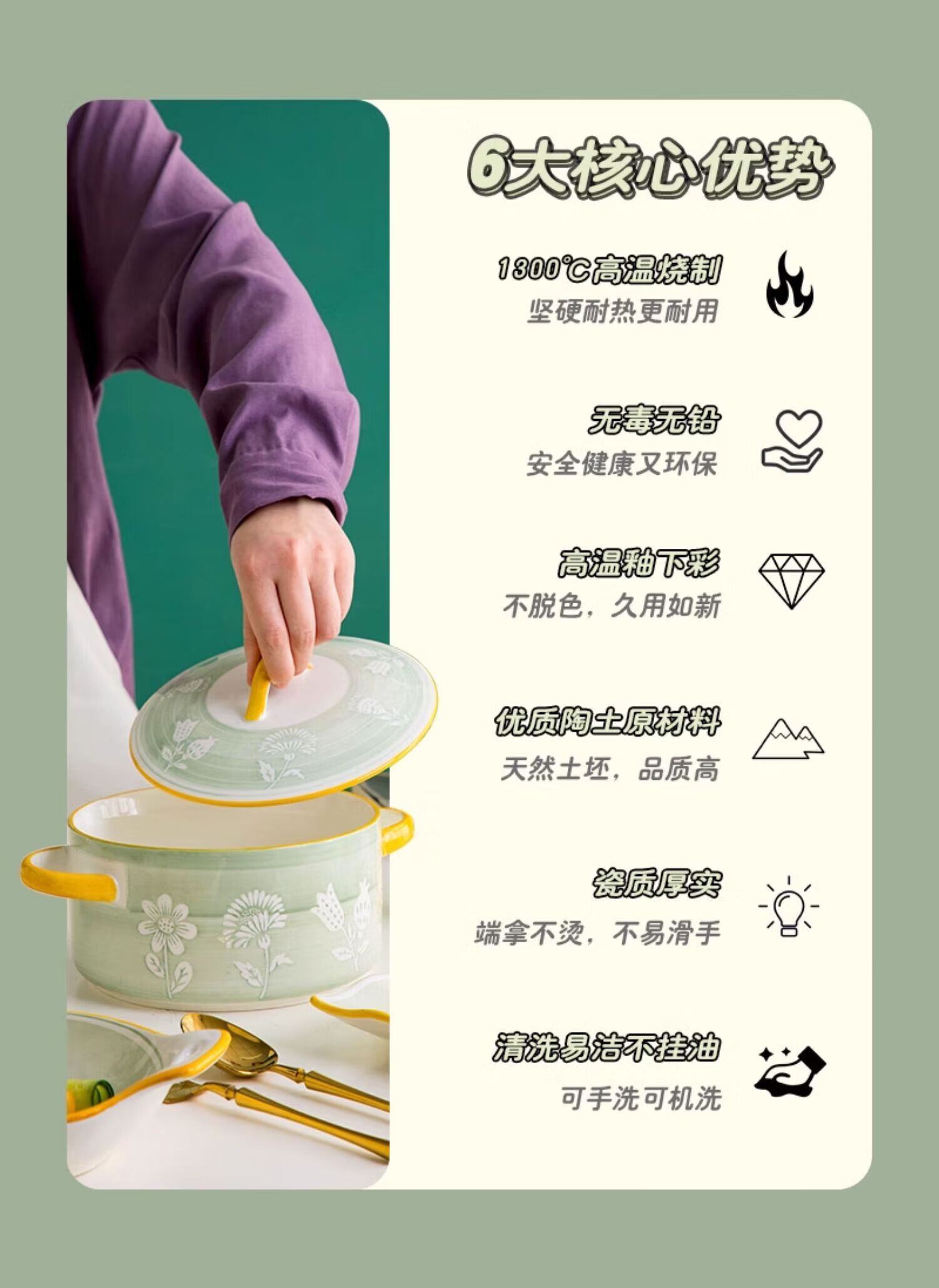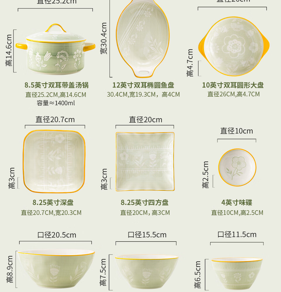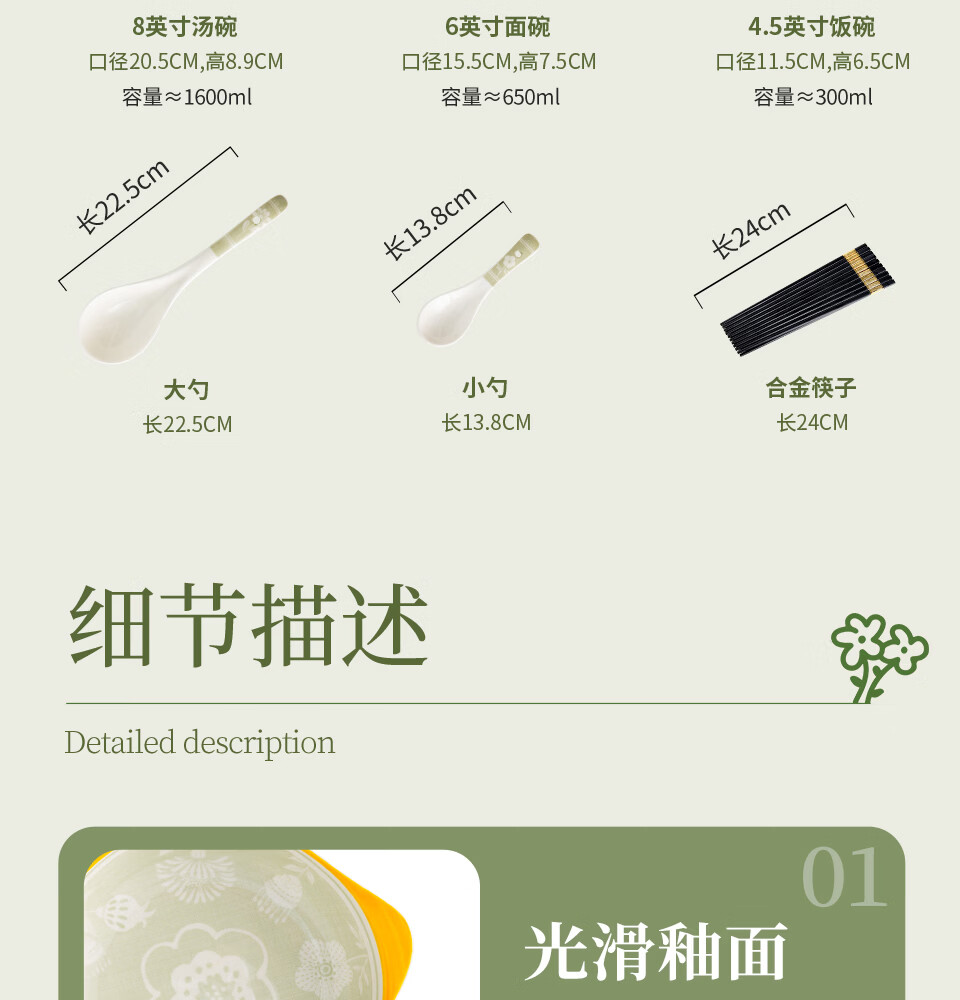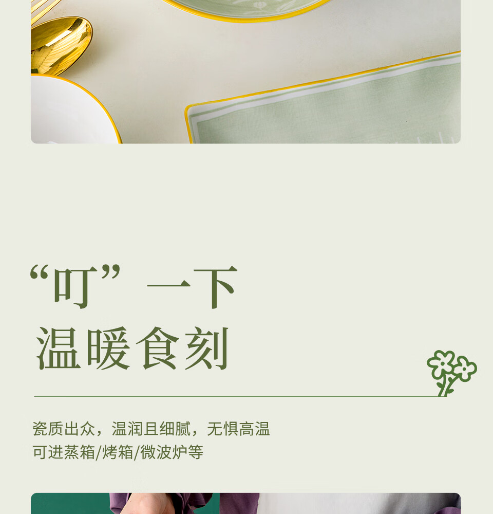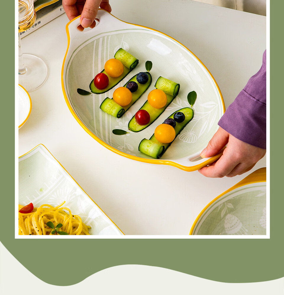 精缔陶瓷JINGDI2026新款釉下彩碗碟套装家用陶瓷高颜值简约碗碟套装乔迁礼物餐具 高温釉下彩】6人食配大汤碗47件套